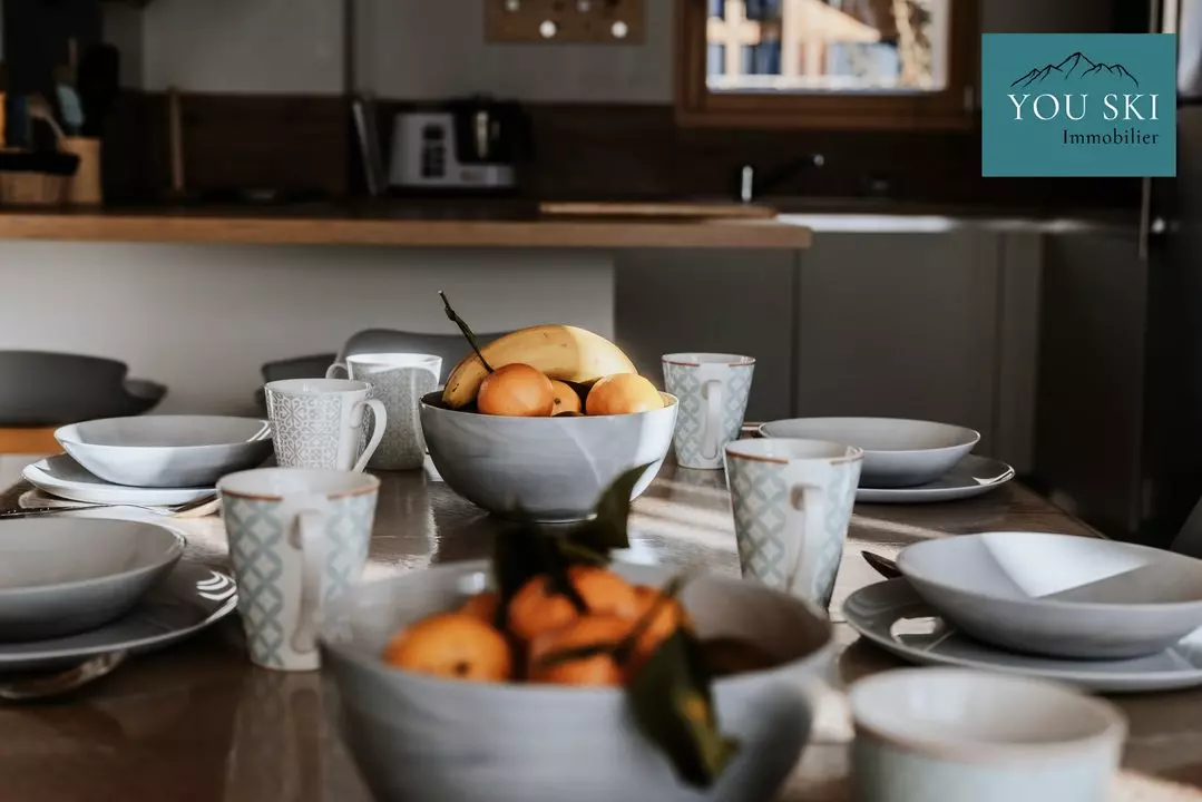 The accommodation is modern and equipped with electric shoe dryers at the entrance, a washing machine and a dryer, a dishwasher, a large fridge, an oven, an electric filter coffee maker and another with pods (KRUPS), a kettle, a toaster, a raclette and fondue set, a Monsieur Cuisine appliance, and all the crockery for 8 people!