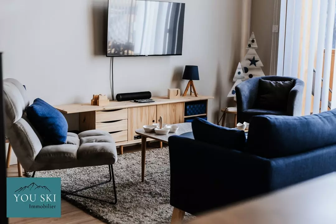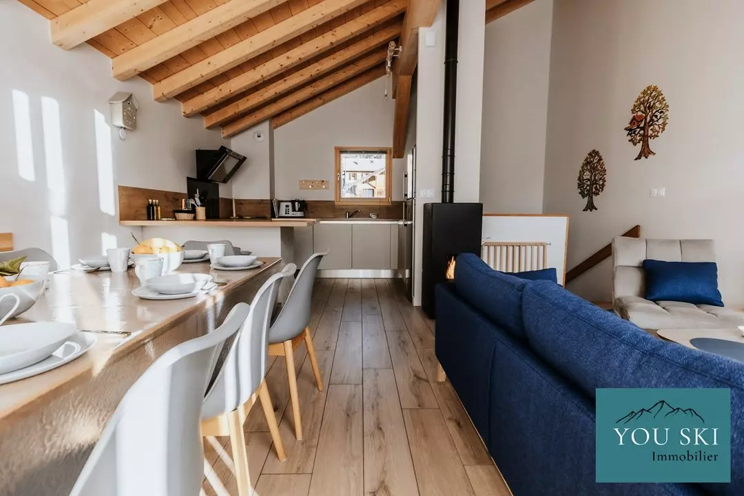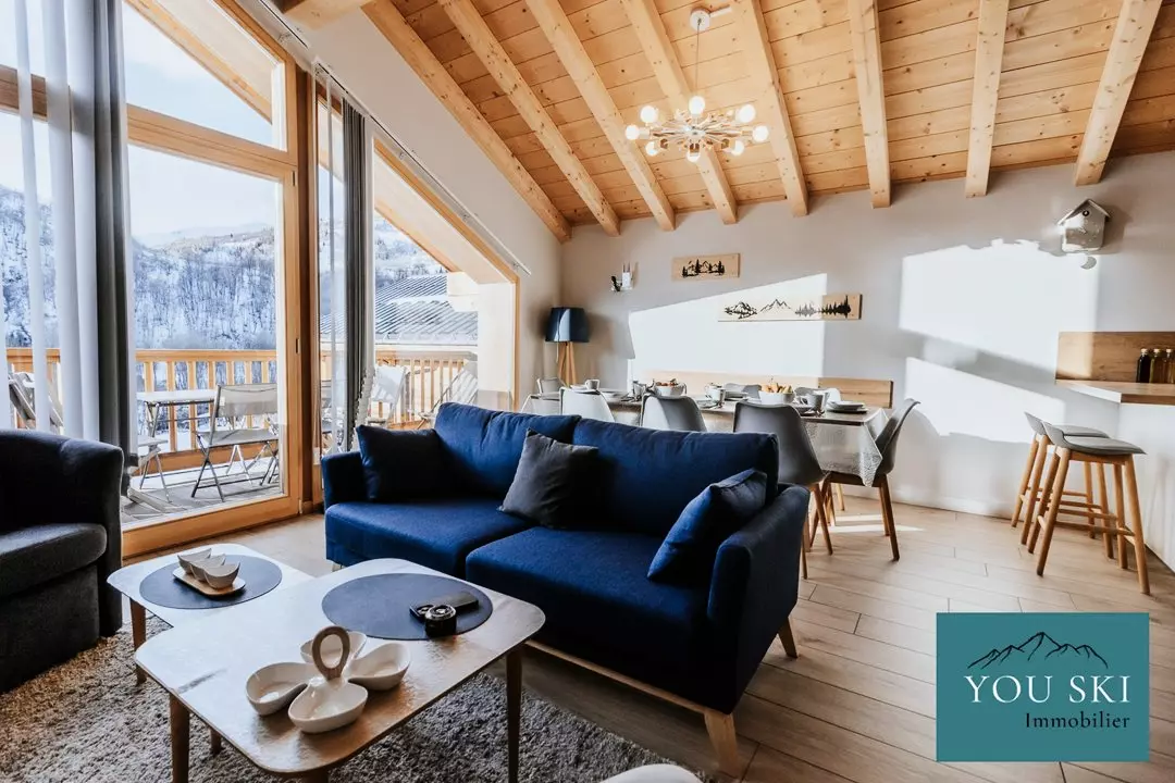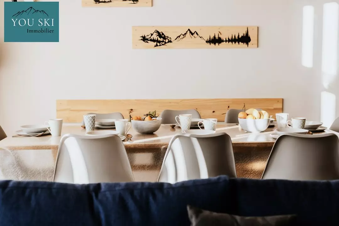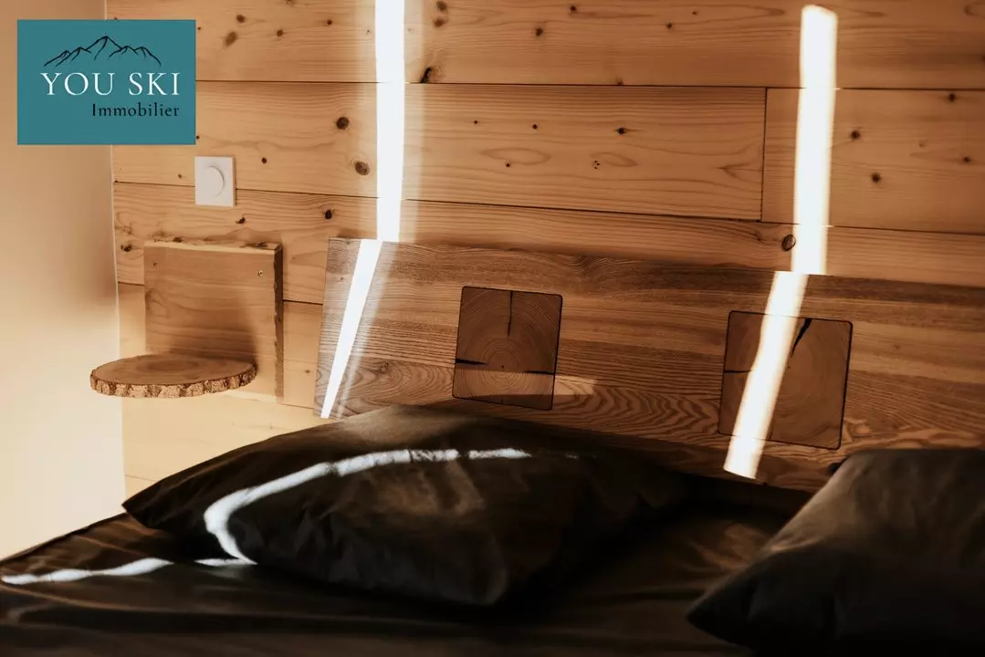 This luxury accommodation is nestled in a recent residence and in a unique setting close to the slopes and the village but quiet from noise and prying eyes.