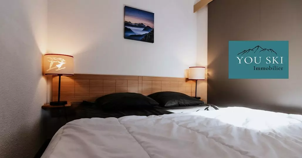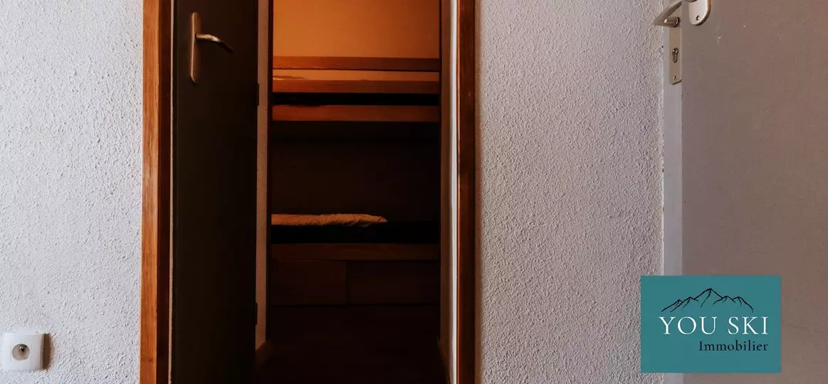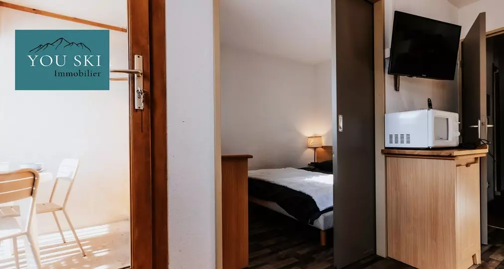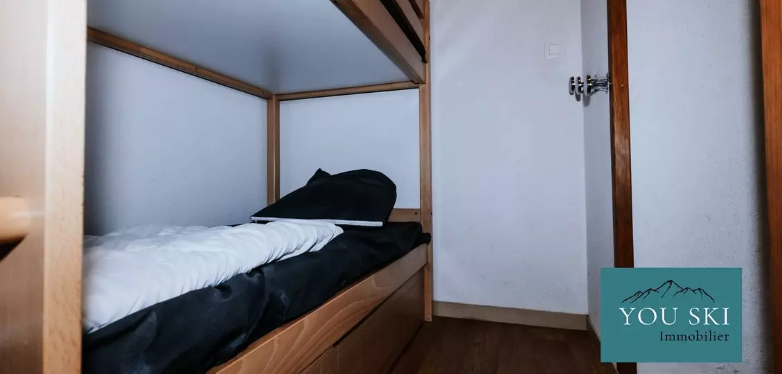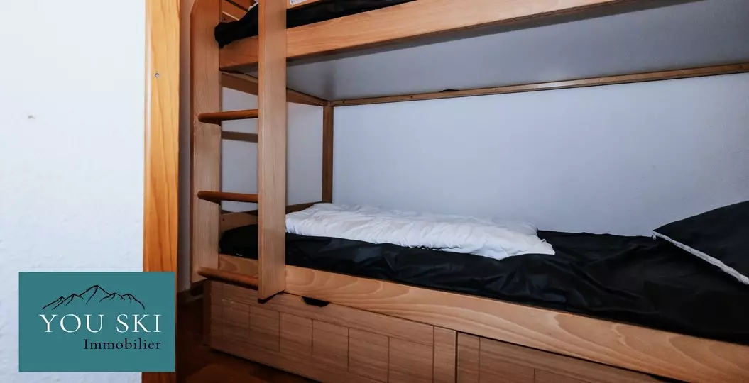 This accommodation is fully equipped for 6 people and consists of an entrance hall, a bathroom, a toilet, a mountain corner with a bunk bed measuring 90*190cm (sleeps 2), a bedroom with a double bed measuring 140*190cm, a living room with kitchen, a lounge with sofa bed, a balcony.