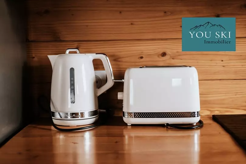 The accommodation is modern and equipped with a washing machine, a dishwasher, a large fridge, an oven, an electric filter coffee maker, a kettle, a raclette machine, a toaster, and all the crockery for 7 people!