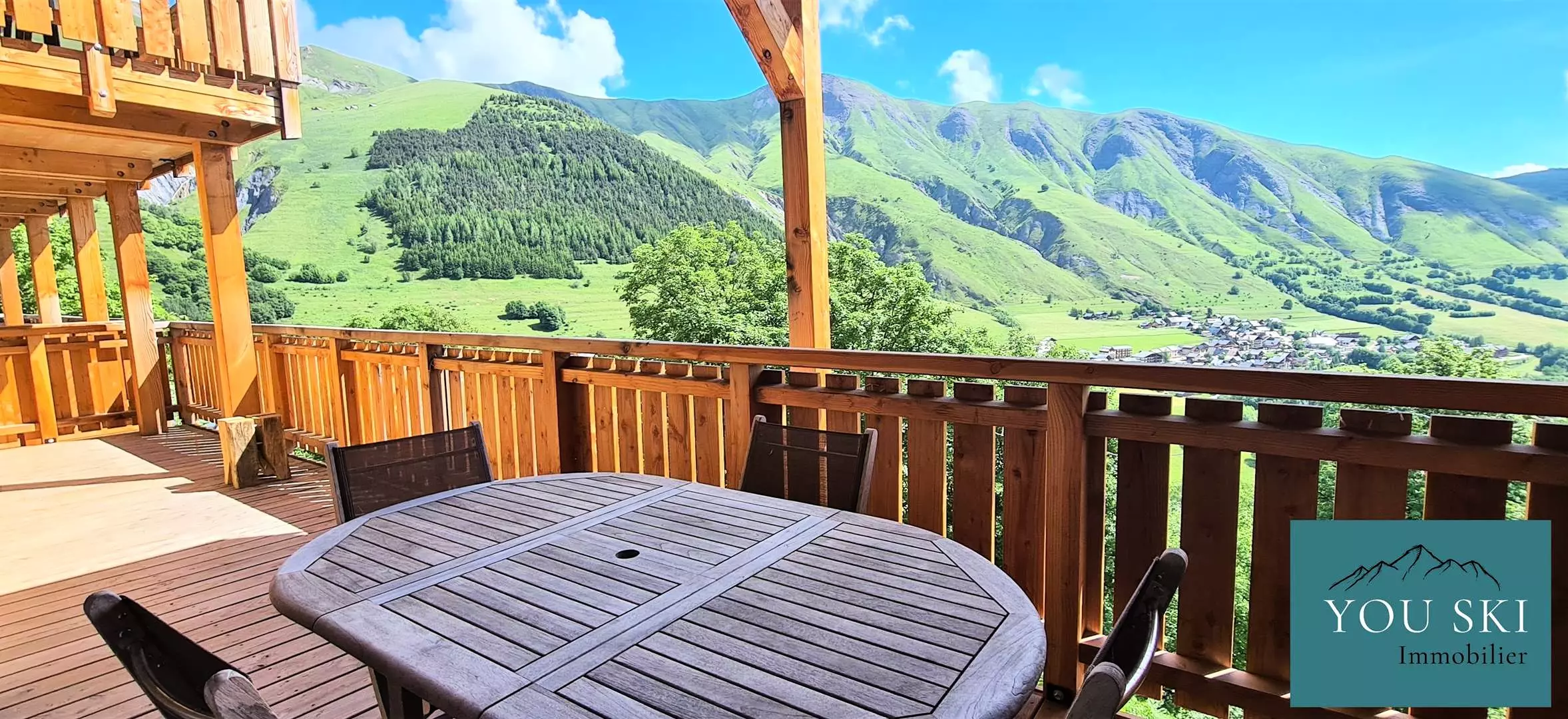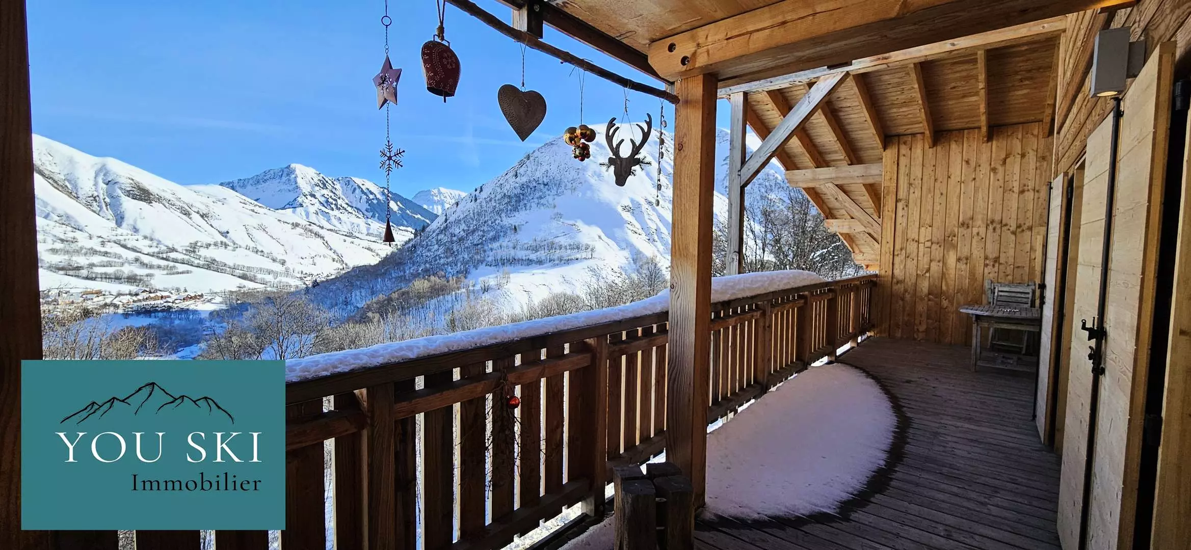 On the third floor with elevator, you will find an entrance hall, a living room with fully equipped kitchen, a lounge with TV and wifi, a very large balcony high up with unobstructed views of the slopes, the mountains and the village.