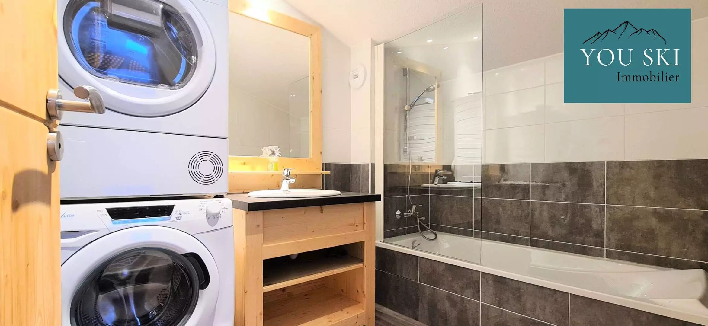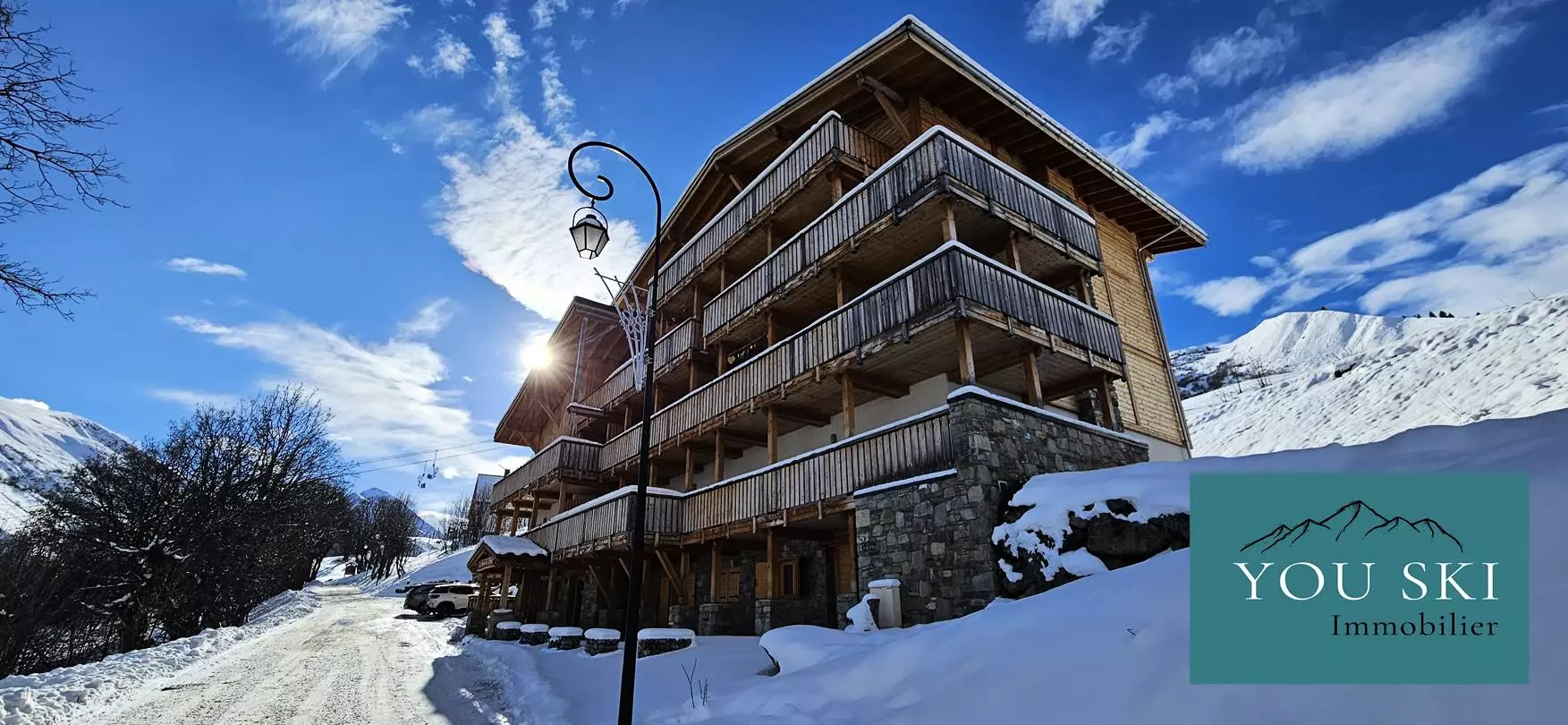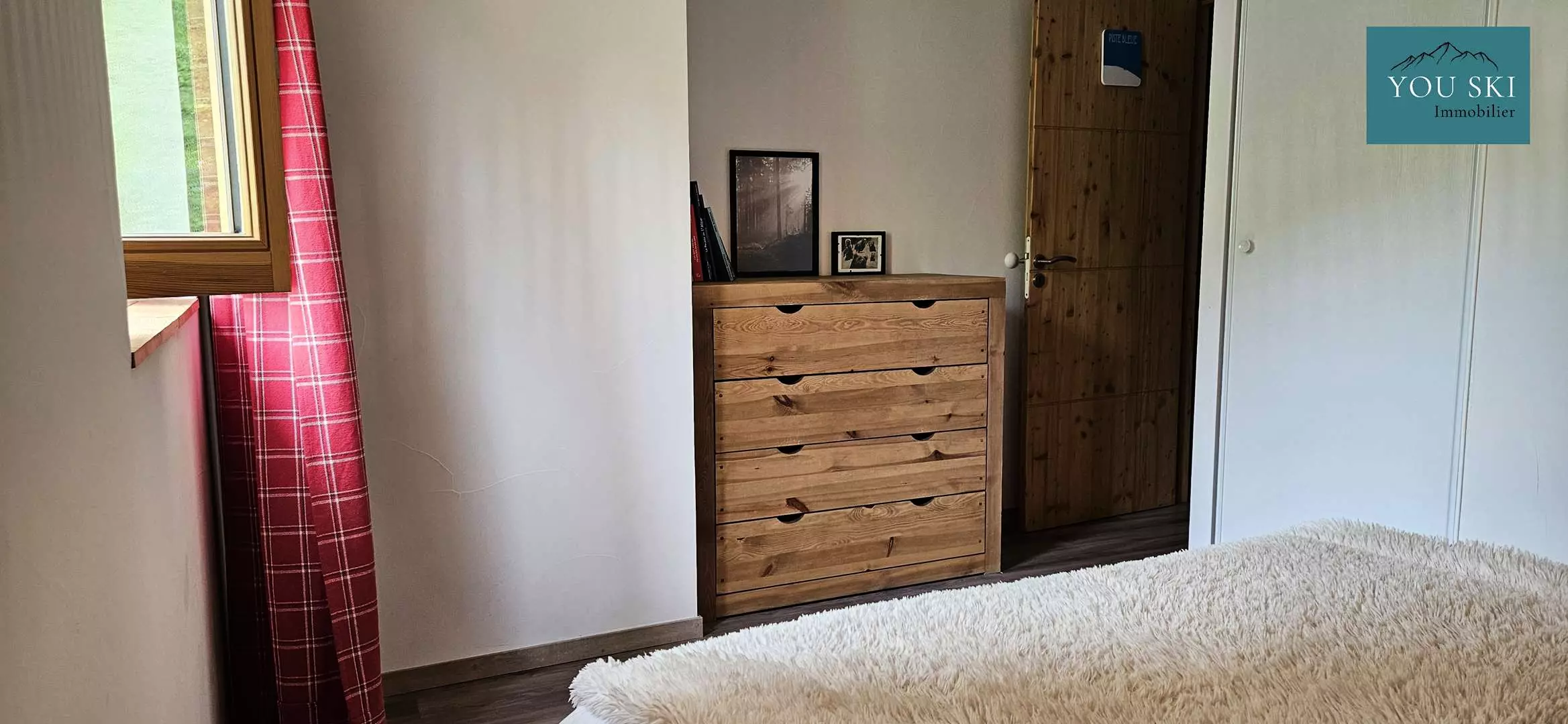 The apartment is nestled in a recent residence and in a unique setting close to the slopes and the village but quiet from noise and prying eyes.