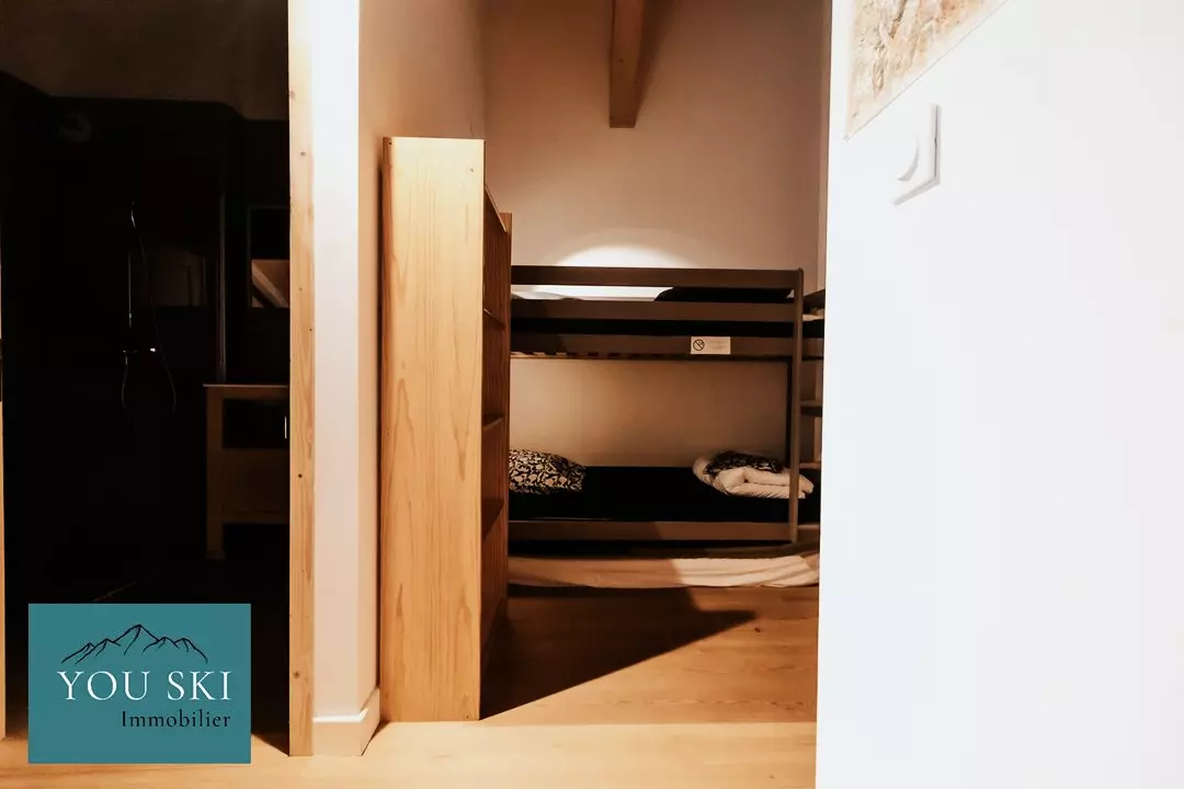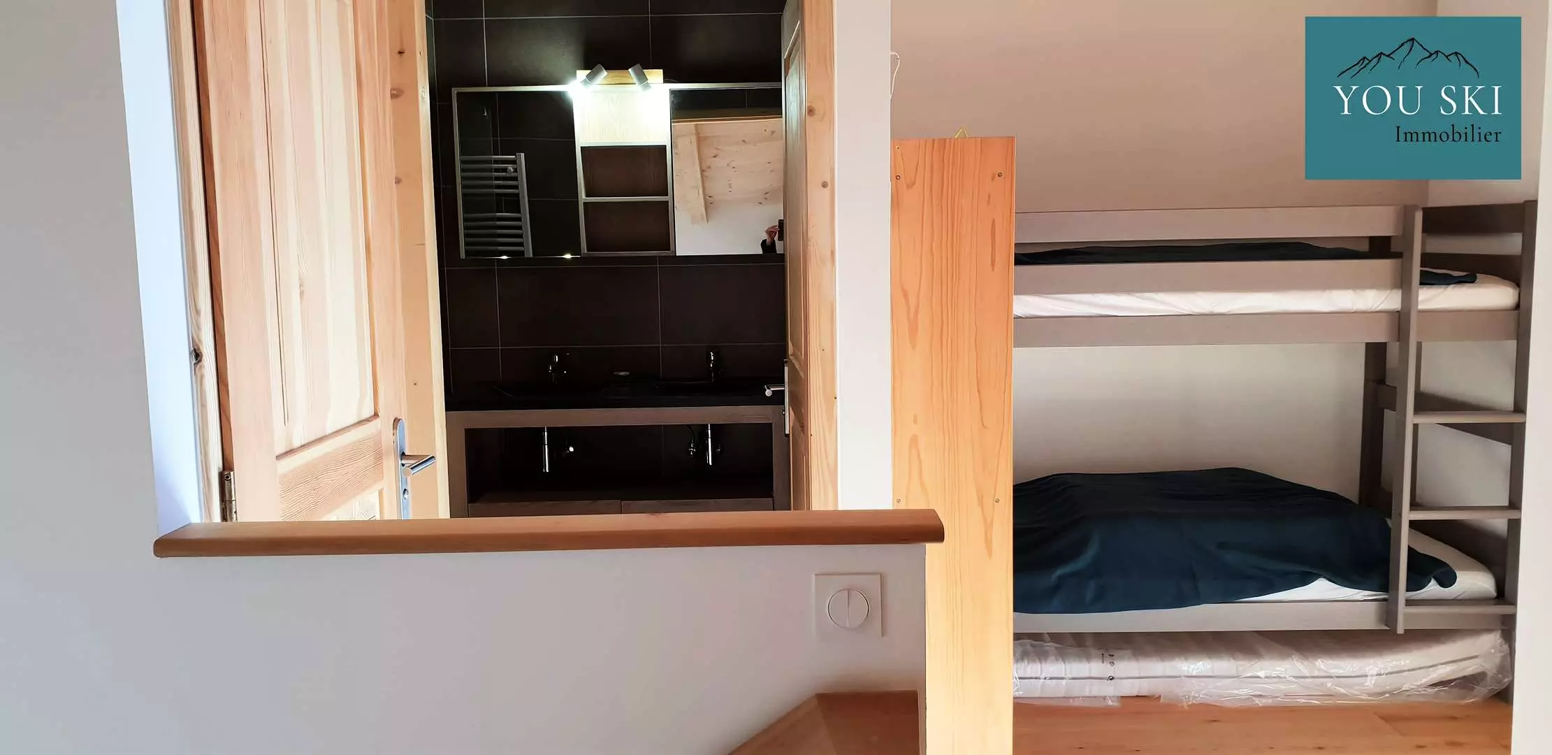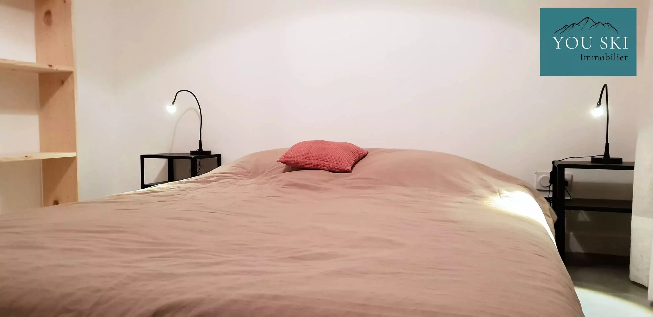 At the entrance, you can leave your skis, then you will find a bedroom with a double bed measuring 160*200cm, a shower room with WC and washing machine.
