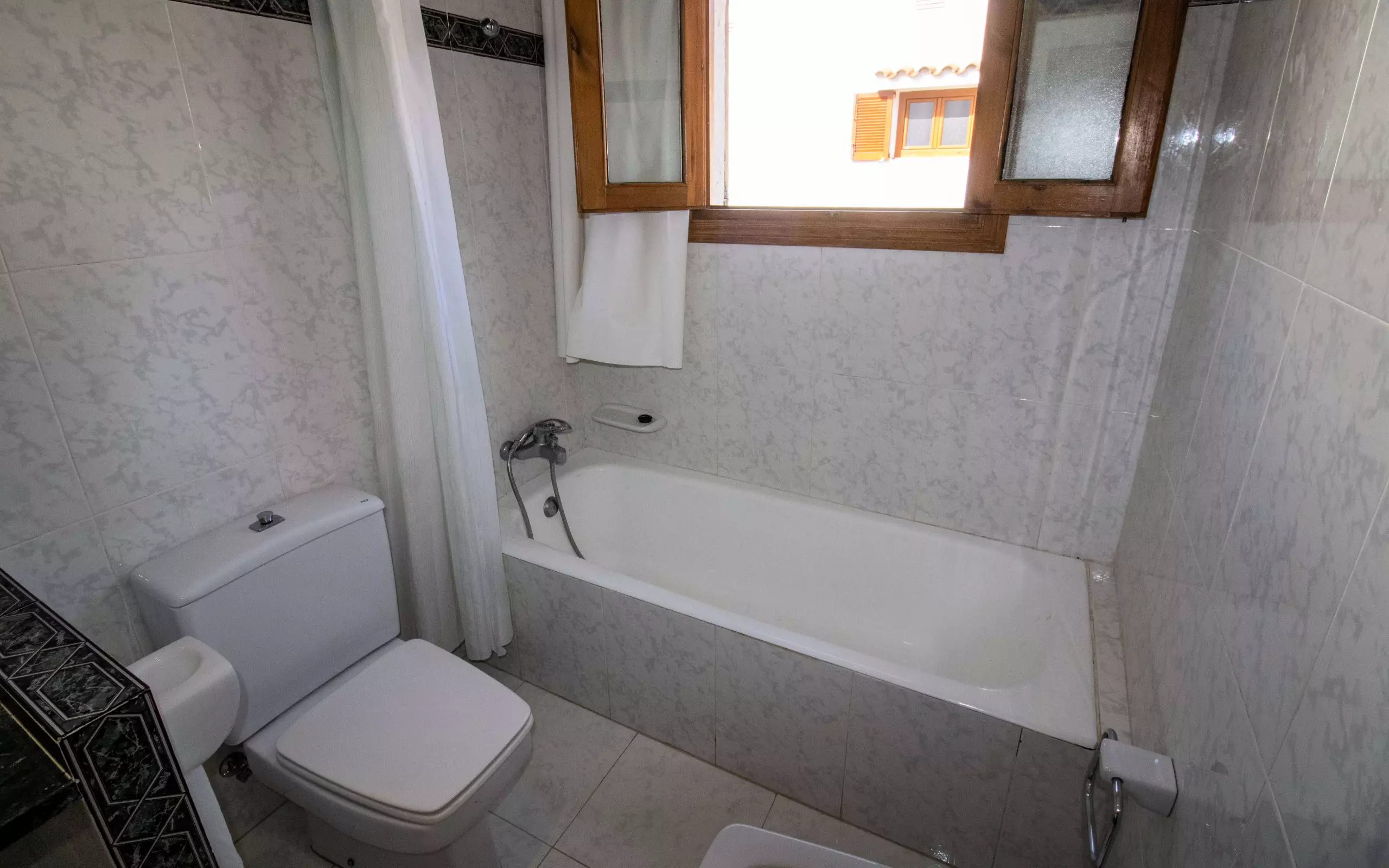 The master bedroom, en suite, with a double bed, has its own bathroom with bathtub, as well as a small private terrace.