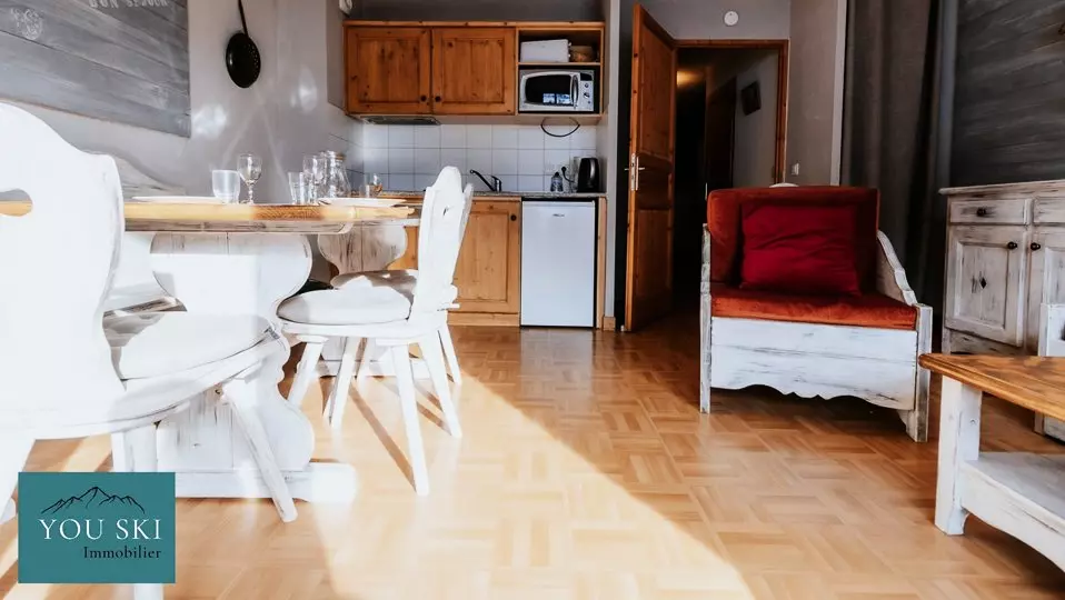 This charming little apartment of approximately 35 m² is ideal for comfortably accommodating 4 people in a calm and relaxing setting at the foot of the mountains.