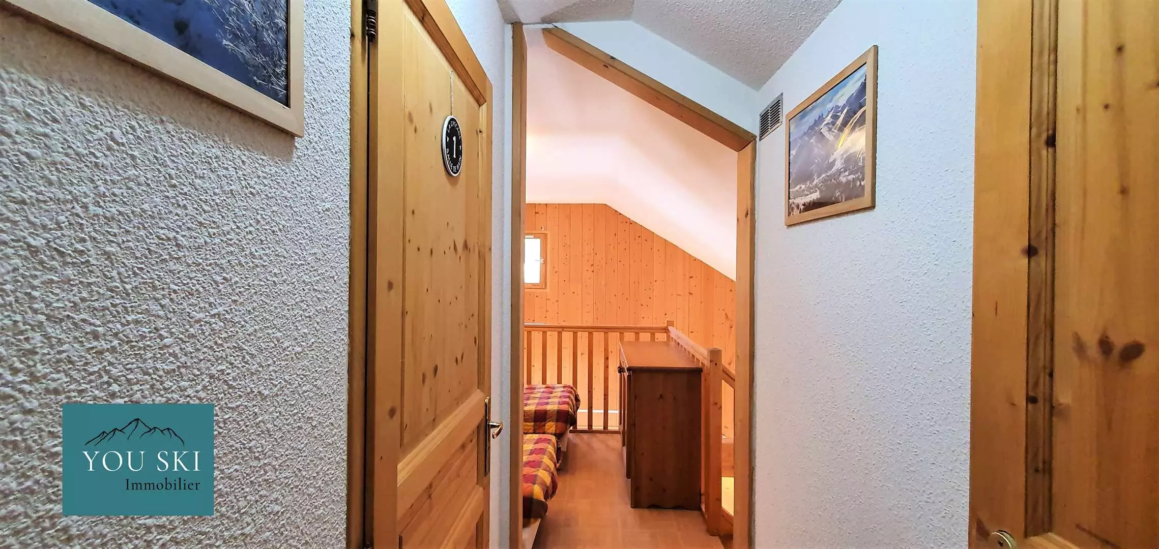 Upstairs there is a mezzanine with a double bed of 140*190cm and a single bed of 80*190cm, a bathroom with WC and a bedroom, sleeping 3, with a single bed of 80*190cm and a bunk bed of 80 * 190cm.