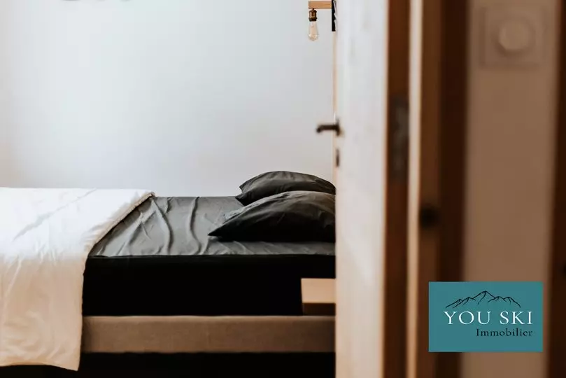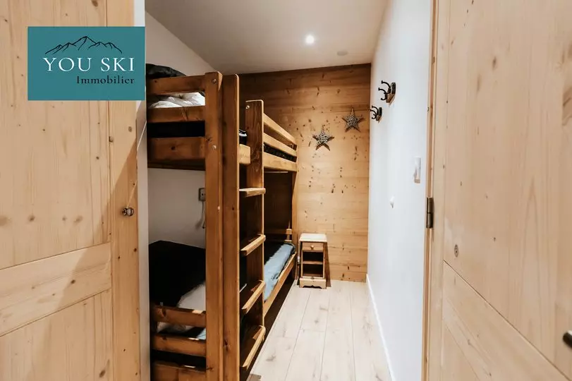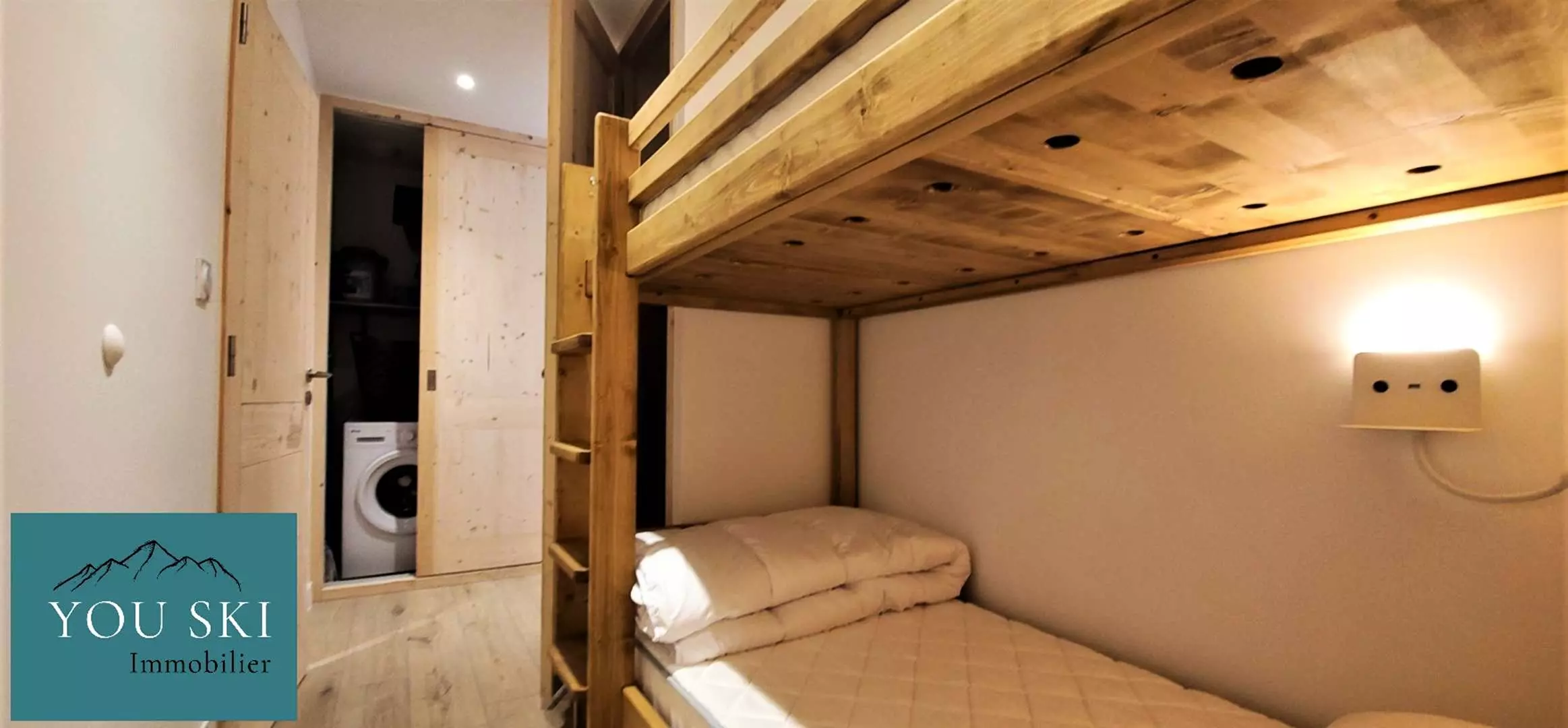 At the entrance, you can leave your skis, then you will find a sleeping area with bunk beds and closet, a toilet, a bedroom with a double bed measuring 160*200cm, a shower room and washing machine.