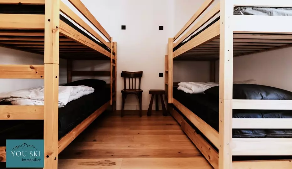 On the 2nd floor, you will find a sleeping area with a total of 5 bedrooms including 3 bedrooms with a 160x200cm double bed and storage, a family bedroom with a 160x200cm double bed + 4 90x190cm single bunk beds and finally a mezzanine with two 80x200cm single beds.