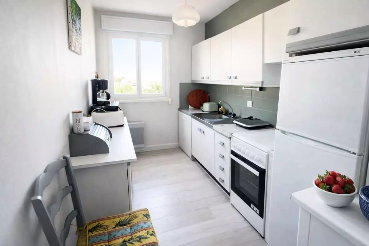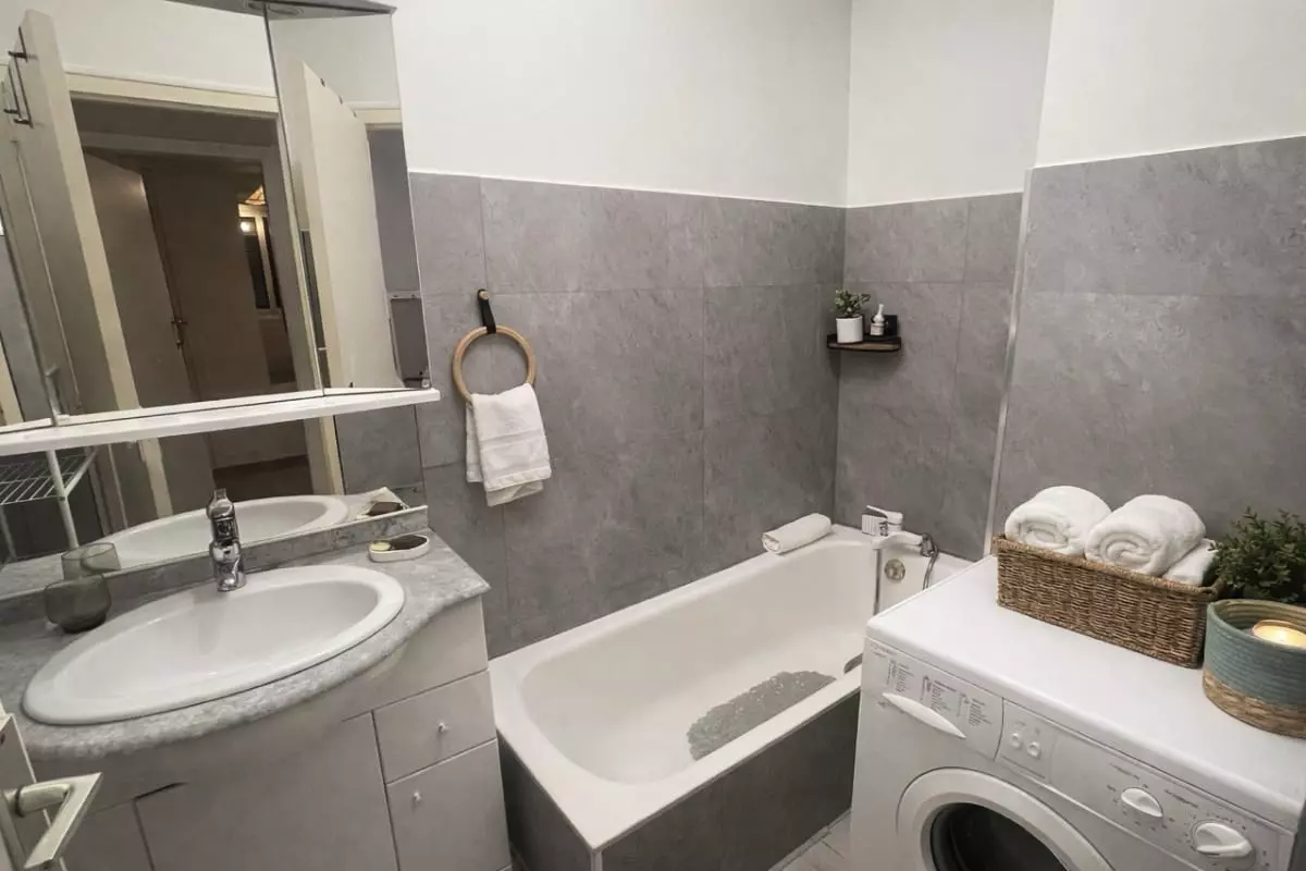 The kitchen is fully equipped with an oven, microwave, dishwasher, and even a raclette grill for cozy evenings with family or friends. To make your stay easier, you'll also find a washing machine, hairdryer, and iron. There's an elevator in the building for easy access to the apartment.