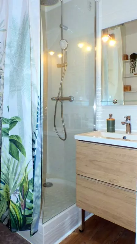 - a bathroom with shower;