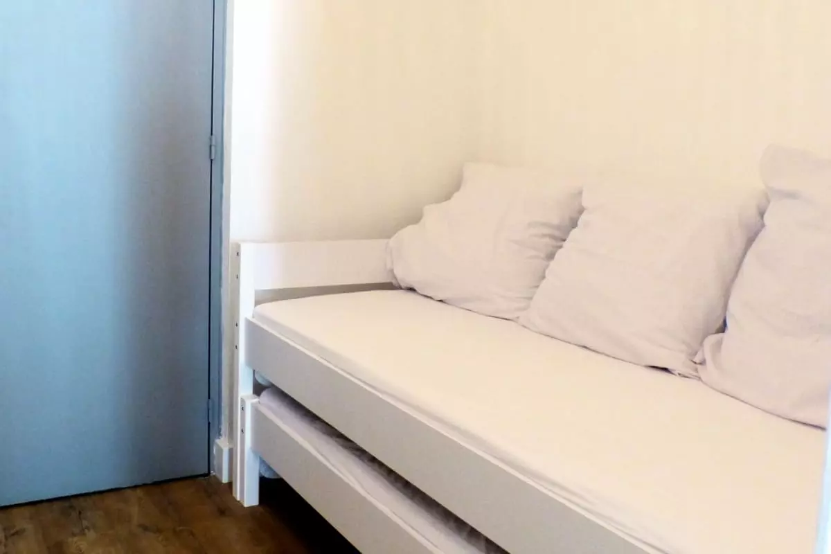- a separate sleeping area with an 80 x 180 bed (only for one person weighing less than 80 kg);