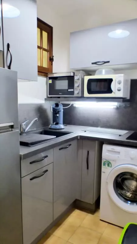 The studio is fully equipped to make you feel at home. You'll find a television for your relaxation moments, as well as a coffee machine to start your day off right. The kitchen is equipped with an oven, microwave, and washing machine for a self-catering stay. A fan is also available to ensure optimal comfort during warmer days. You can also enjoy a private balcony for your outdoor relaxation moments.