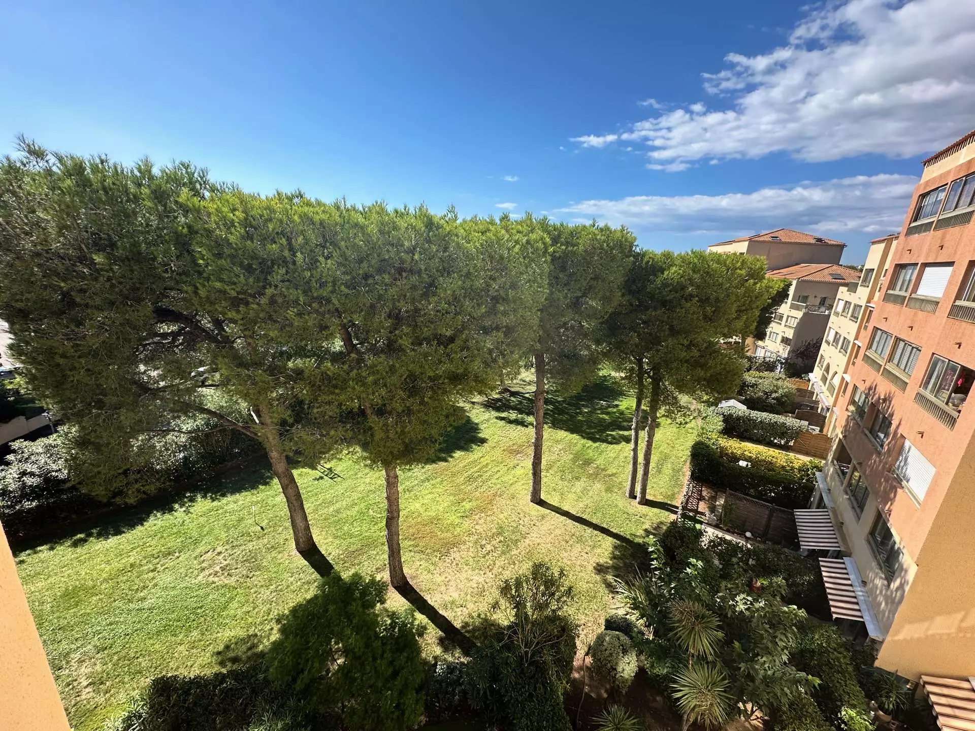 Boost your seaside vacation with this beautiful two-bedroom apartment in a tree-lined residence in Six-Fours-les-Plages.