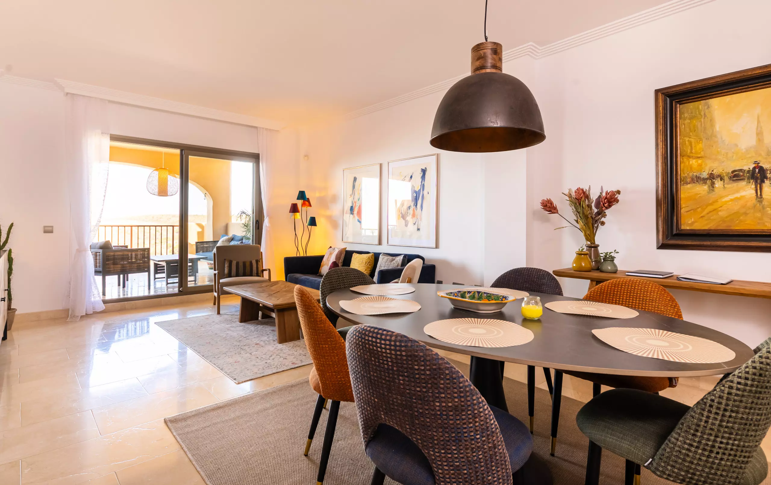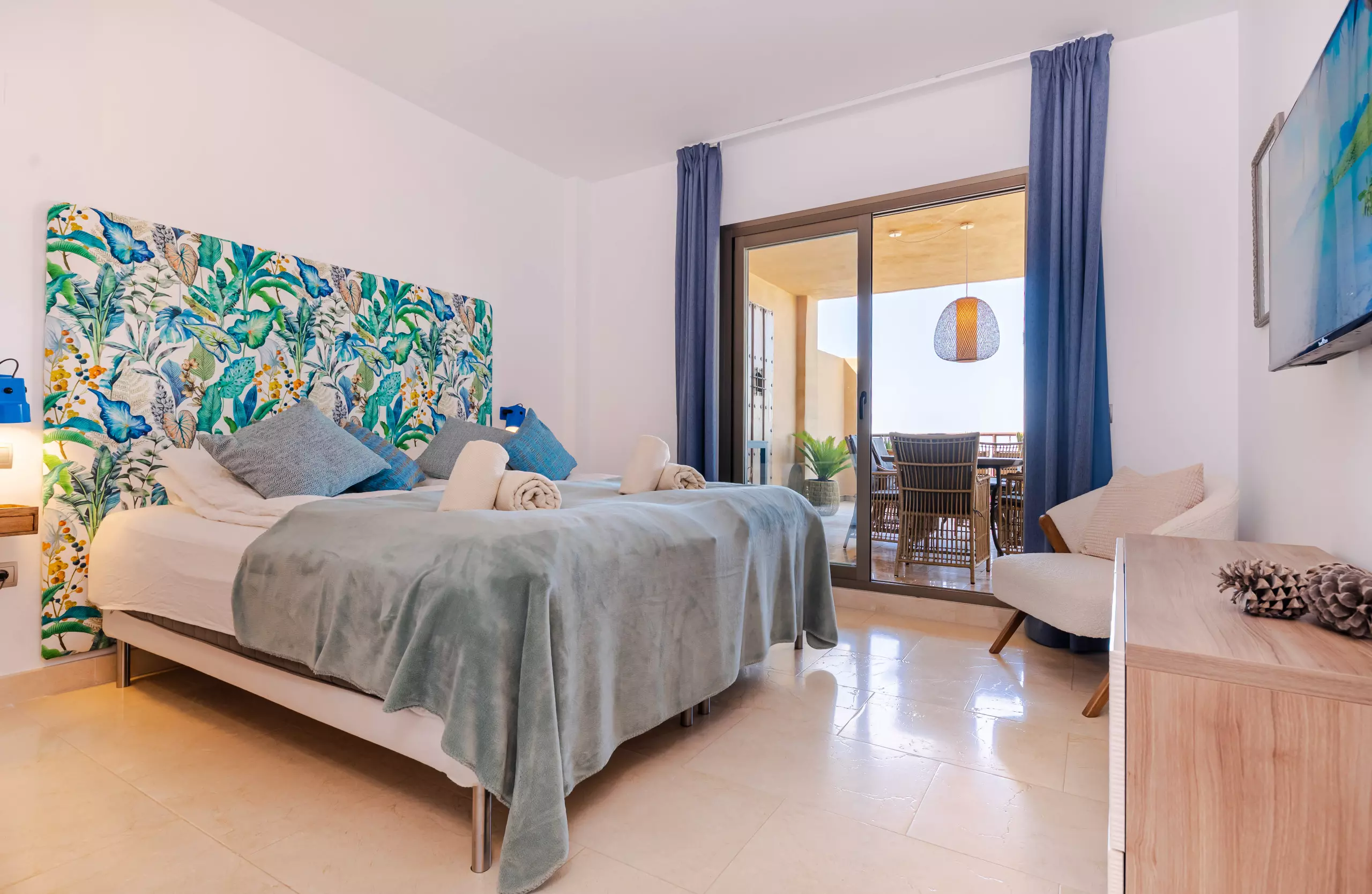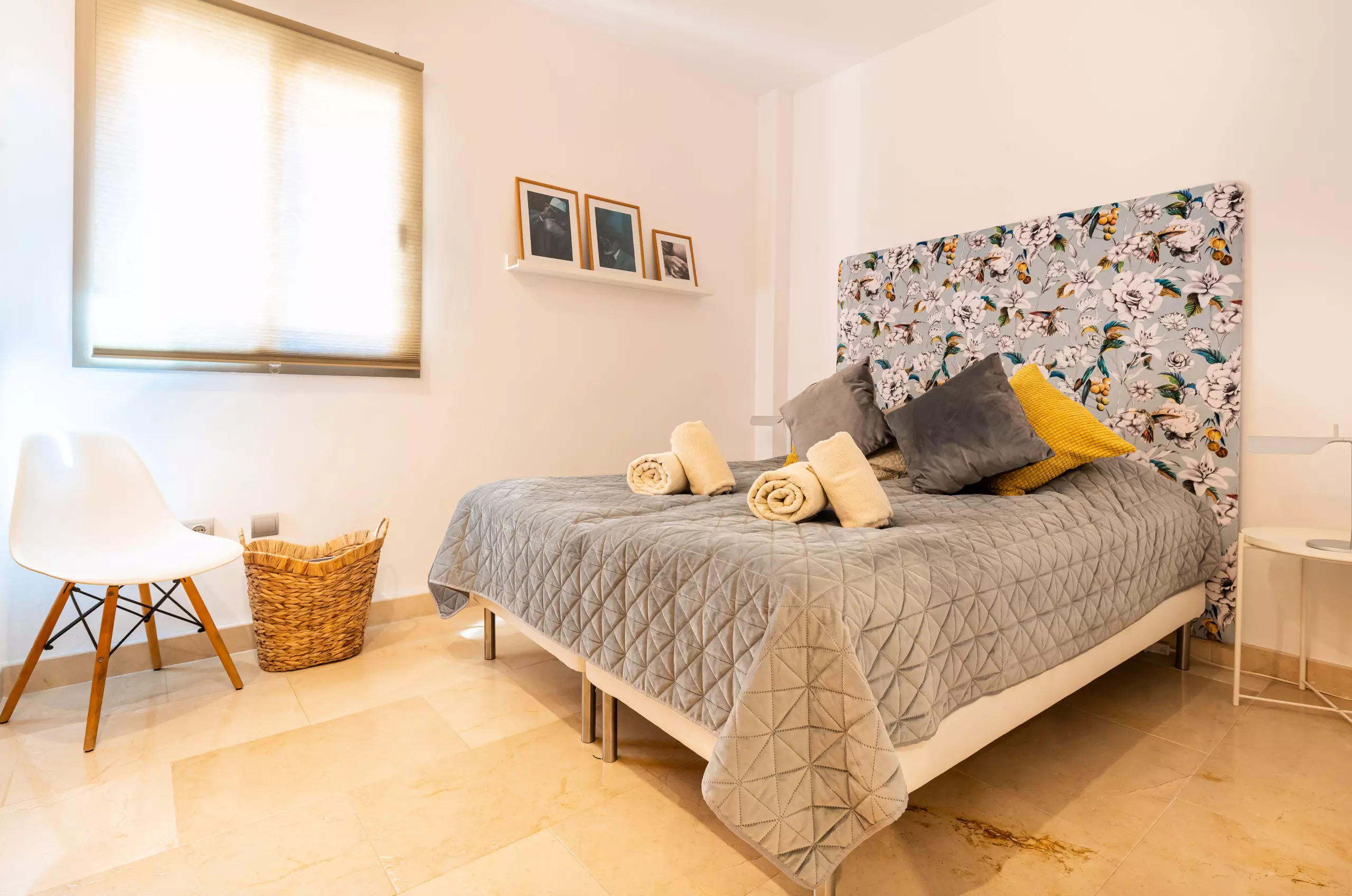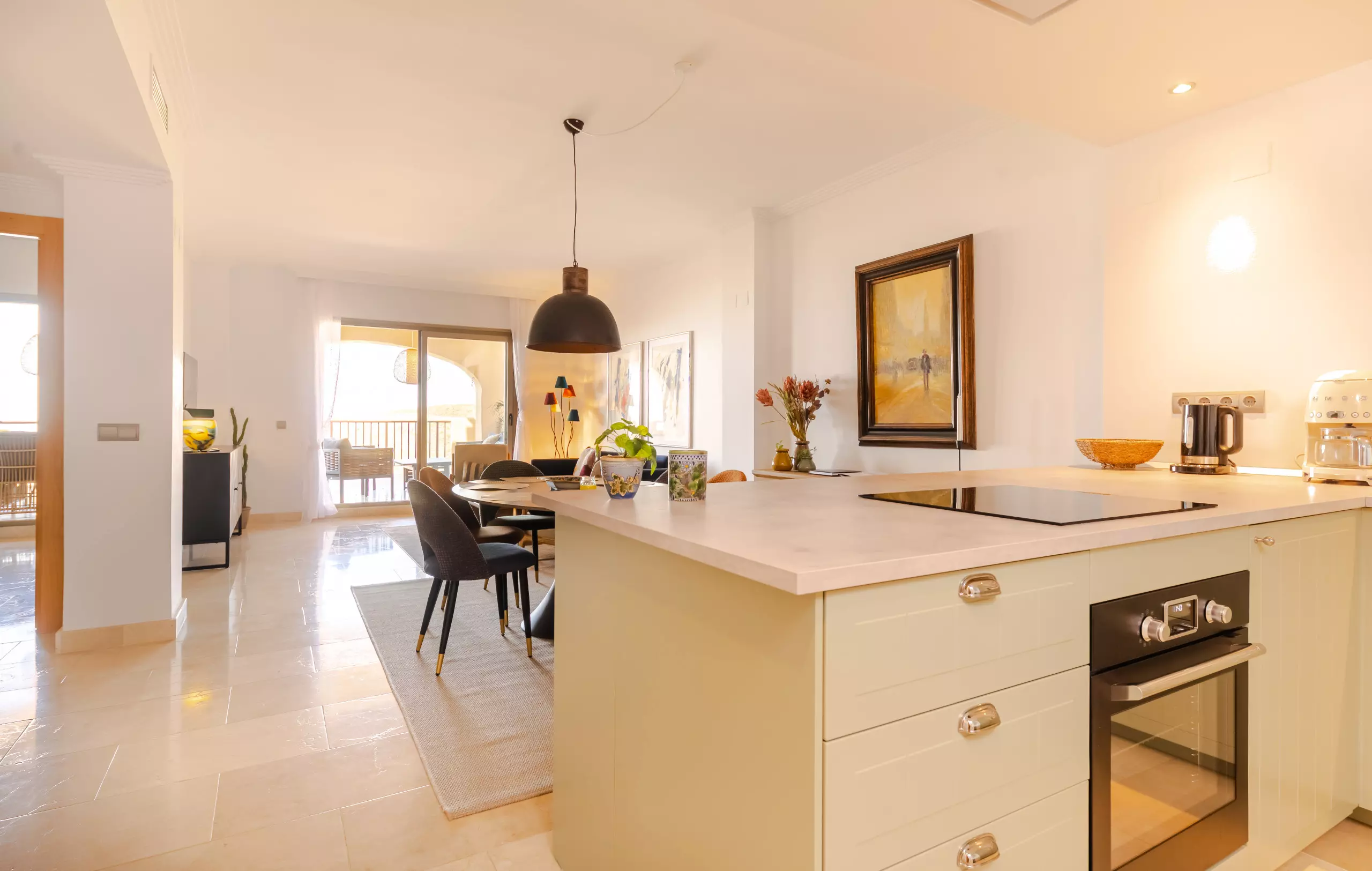 This newly renovated apartment features a clean Scandinavian style and an open-plan living and dining area, three bedrooms, two bathrooms, and a west-facing terrace with magnificent views.