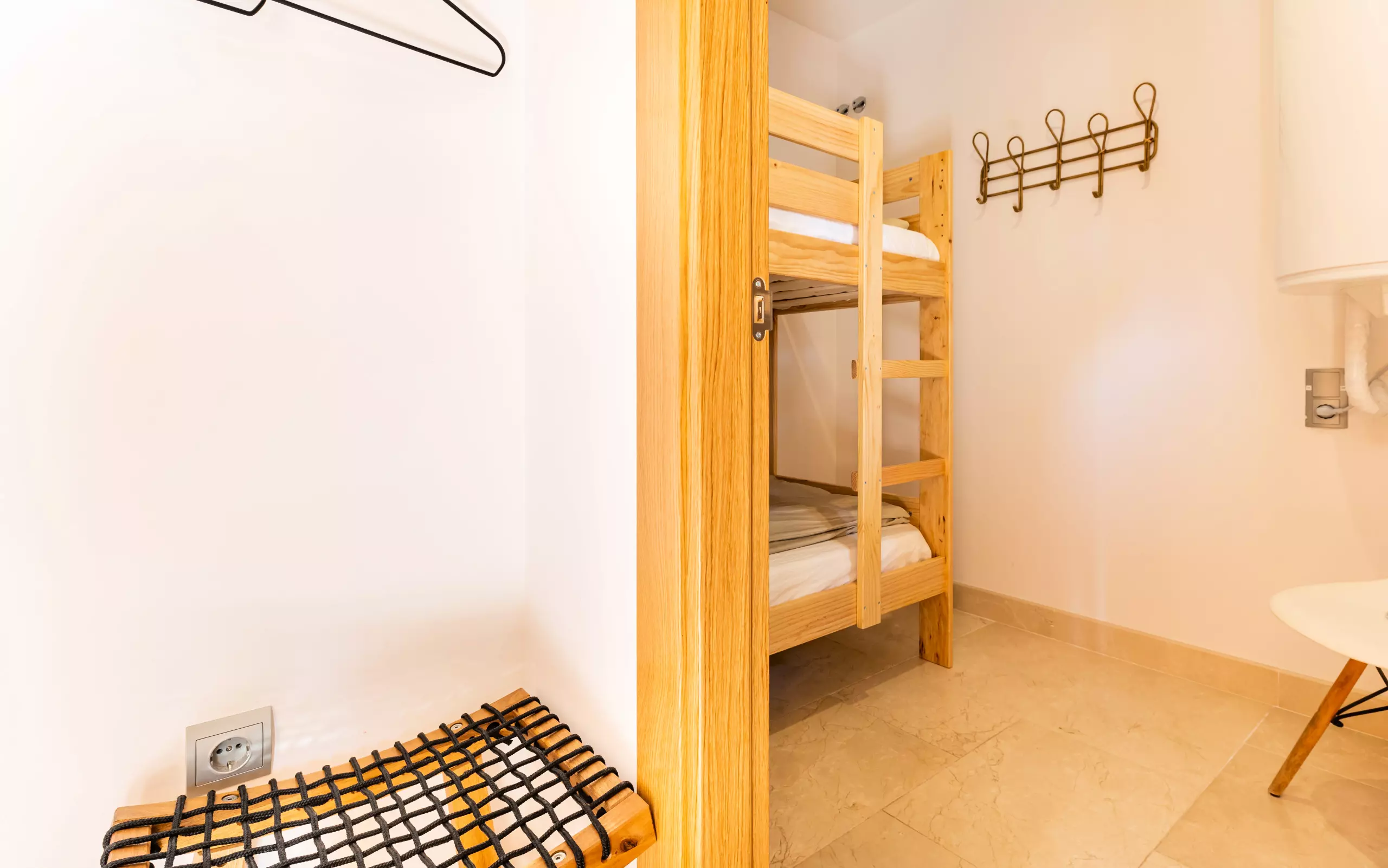 The second bedroom has a double bed of 1.60 * 2.00 m and the third has a bunk bed of 90 * 2.00 m for young children or teenagers. These 2 bedrooms share a bathroom.