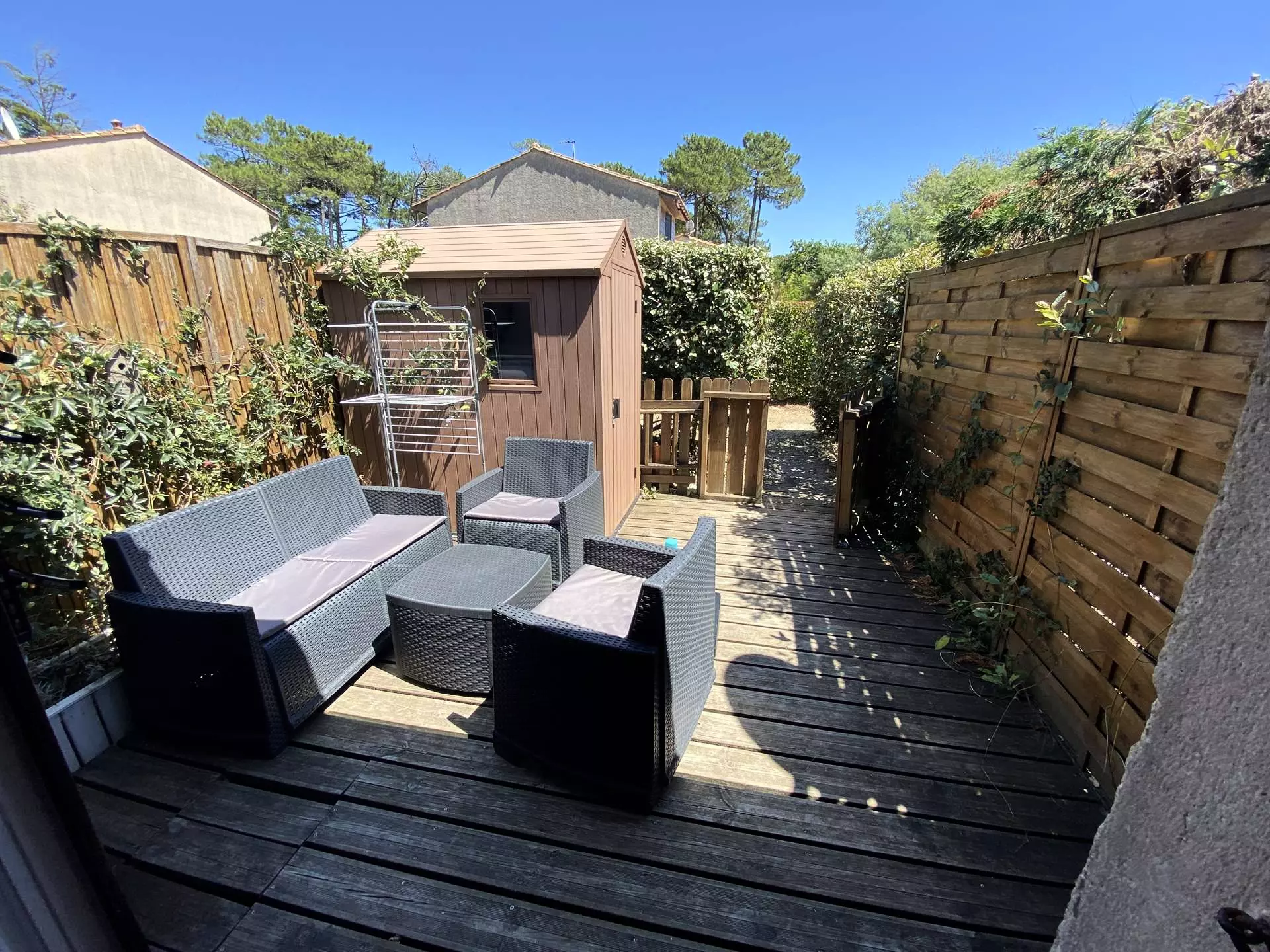Pretty cottage with a small fenced garden in the Hameau de l'Amélie, just a stone's throw from the beach. It consists of a living area with a sofa bed and TV, a kitchenette, a bedroom with 2 single bunk beds, a mezzanine with 1 double bed, and a bathroom with WC. Garden furniture. Parking space. Shops and restaurants nearby. Deposit to be paid on site. Holiday vouchers accepted.