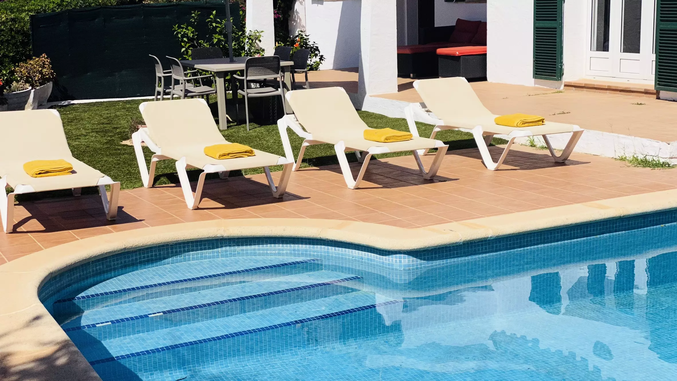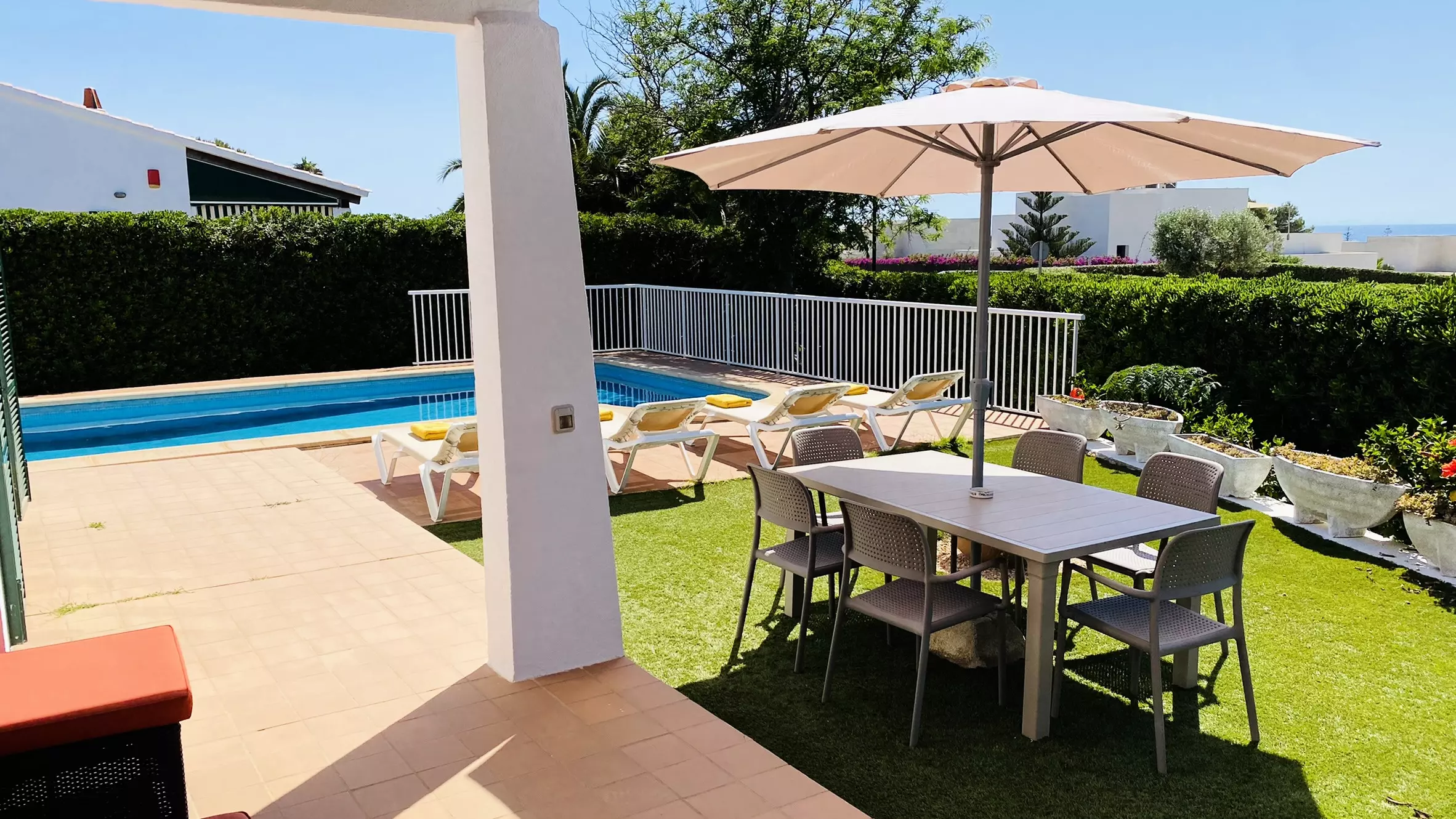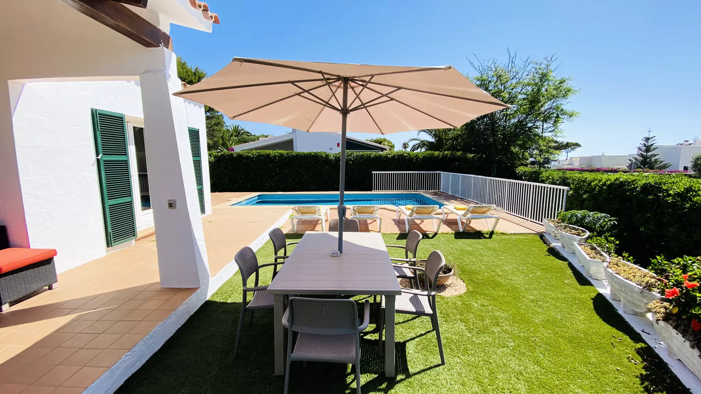 Comfortable, recently built 95 m² accommodation with views of the garden and swimming pool.