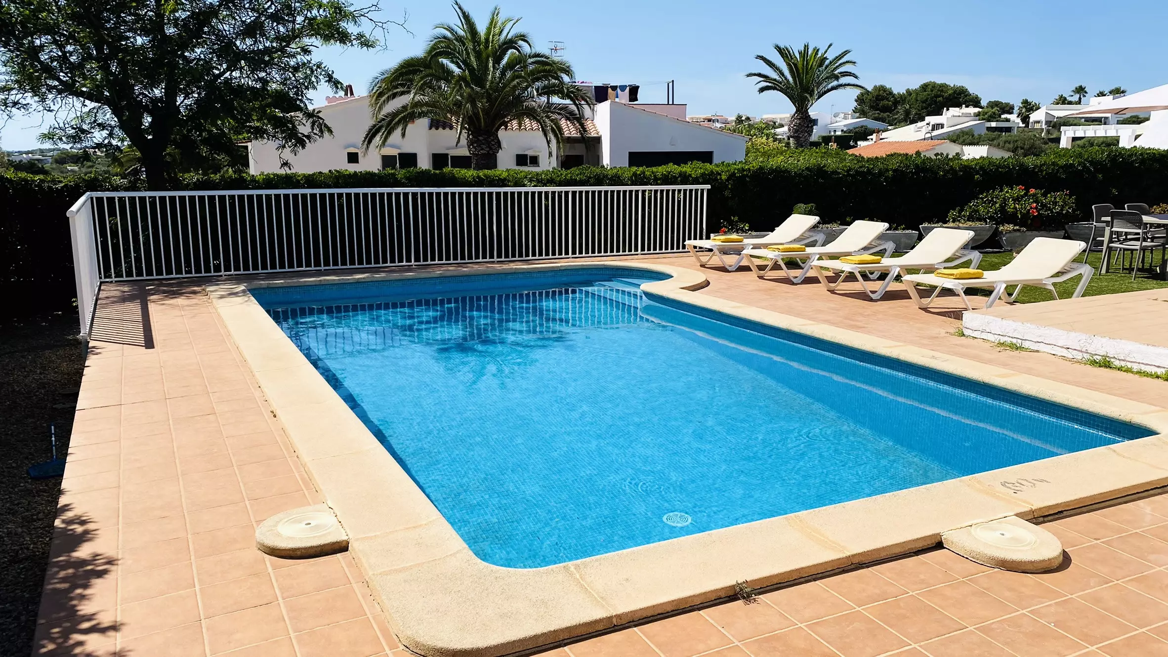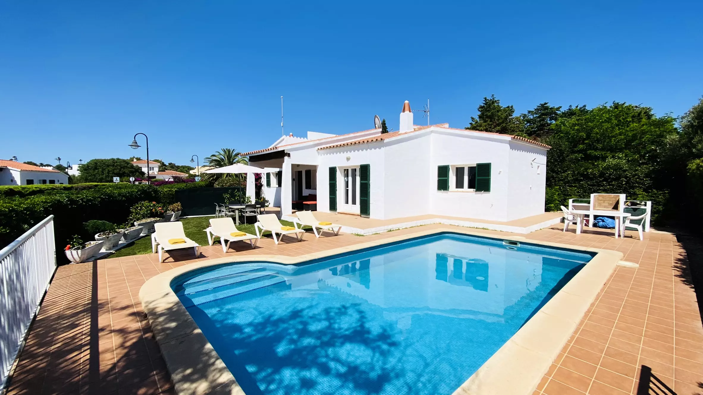 The property is located 400 m from the supermarket, 2 km from the sand beach "Binibeca", 5 km from the city "Sant Lluis", 12 km from the airport, 29 km from the golf course "Golf Son Parc" and it is located in a children-friendly area and near the sea.