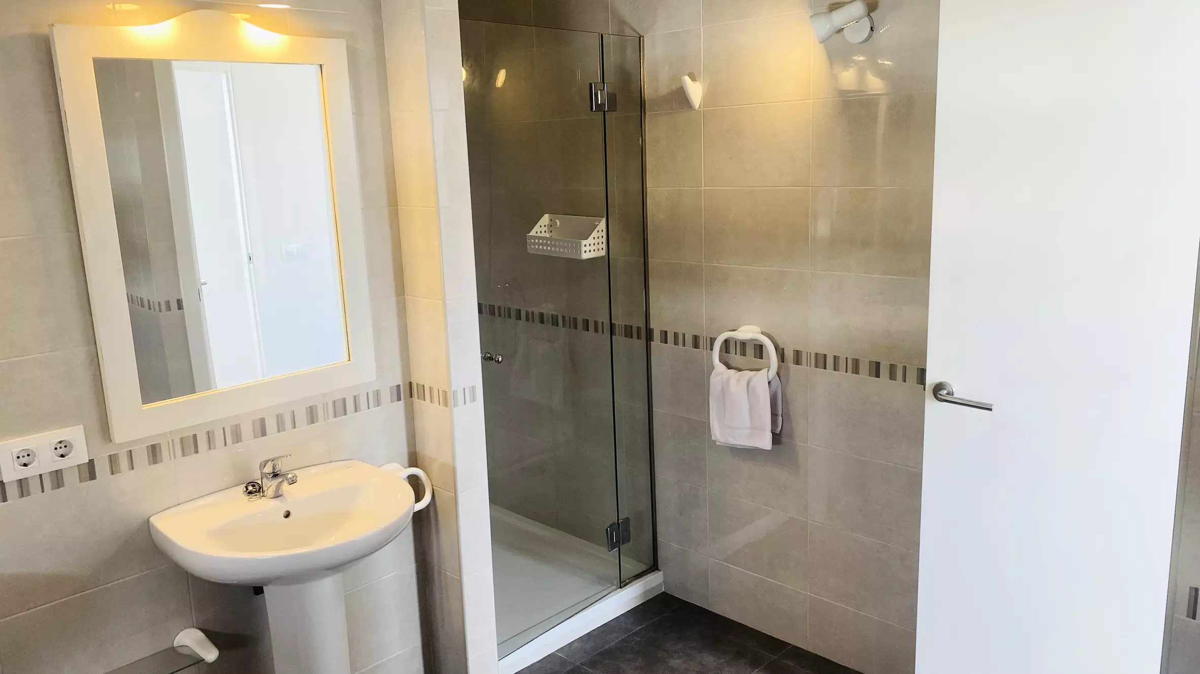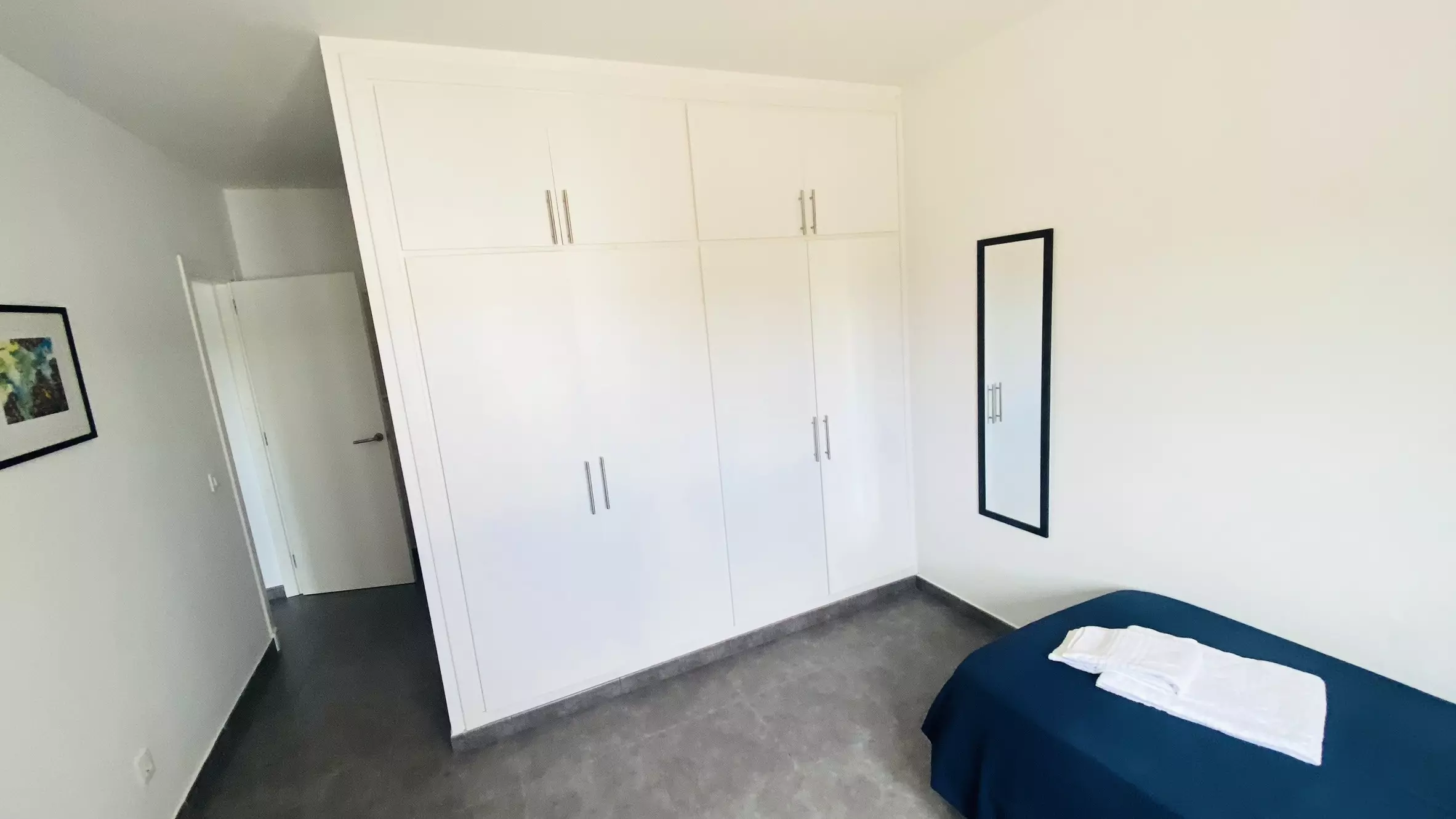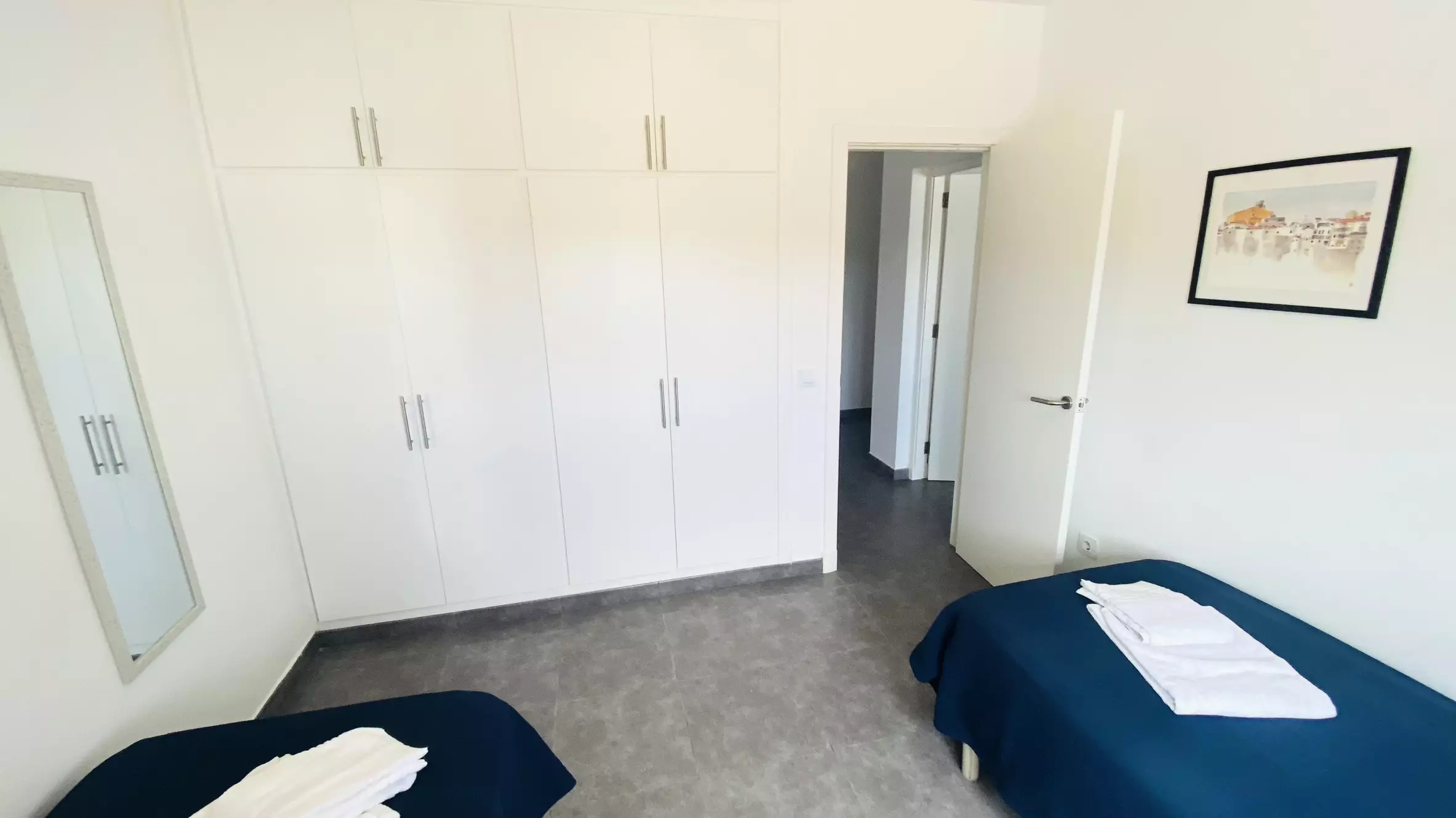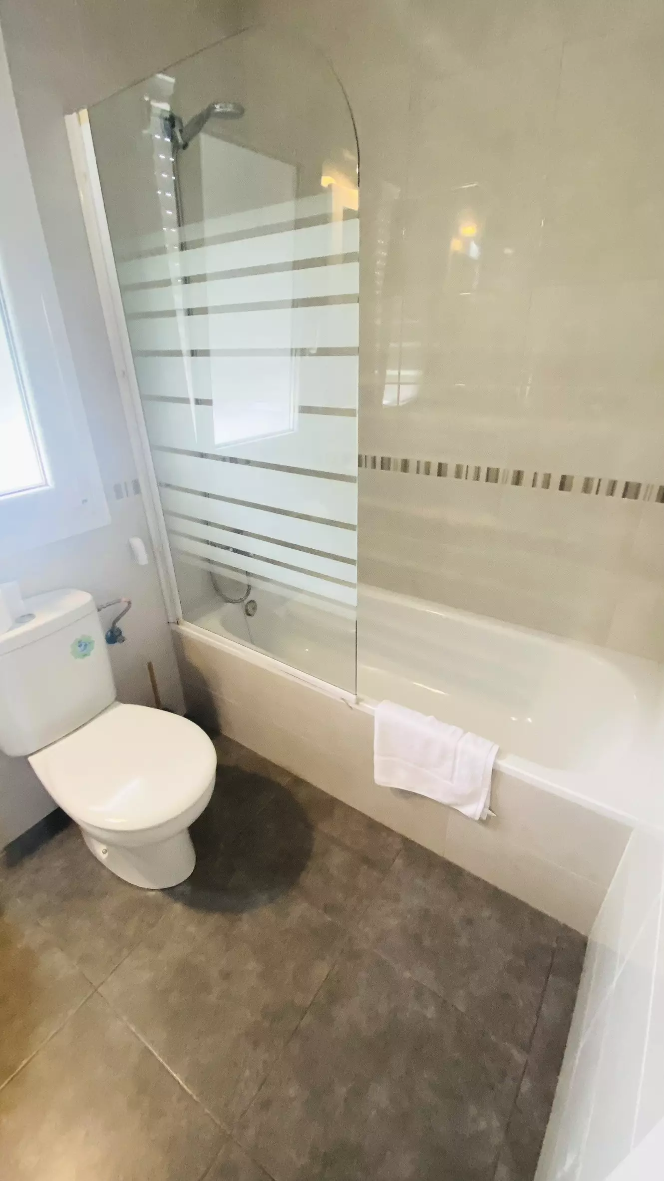 The villa features three fully equipped bedrooms: a master bedroom with a double bed and two additional bedrooms with single beds, ensuring restful rest for all guests. It includes three bathrooms, two with bathtubs and one with a shower, facilitating the daily routine of visitors.