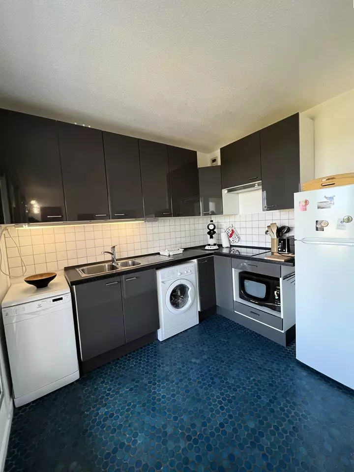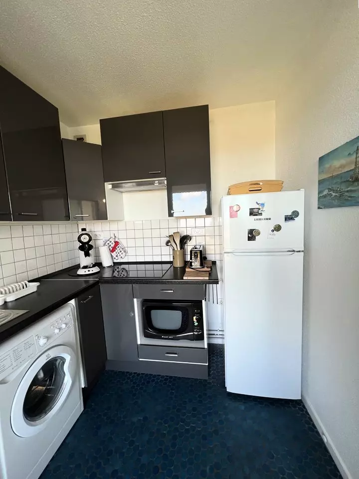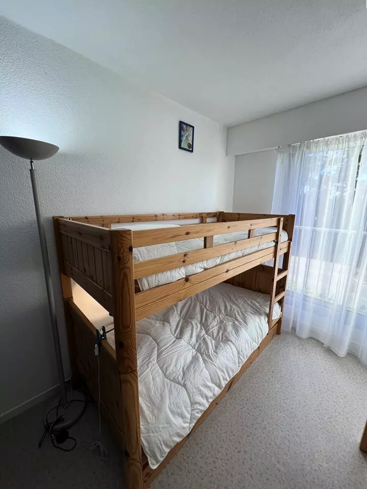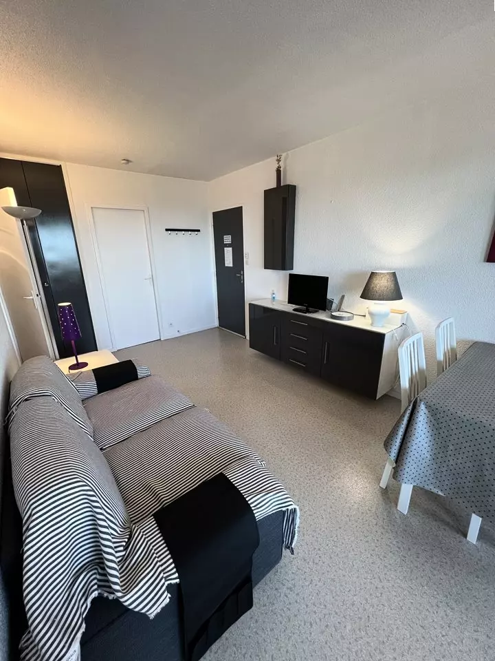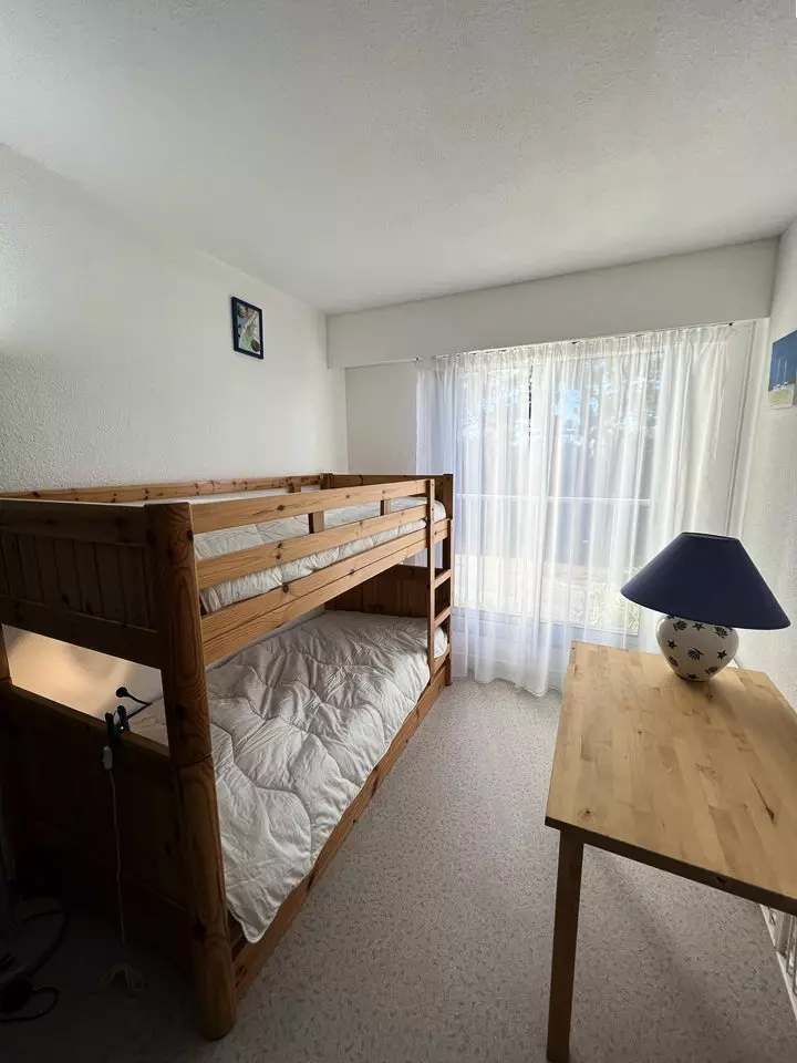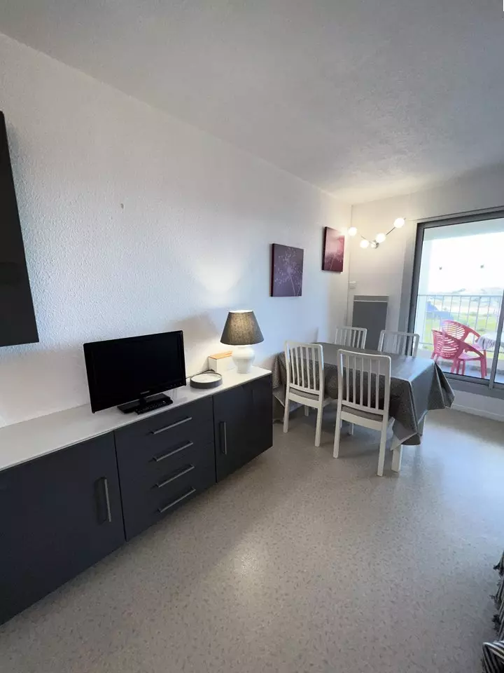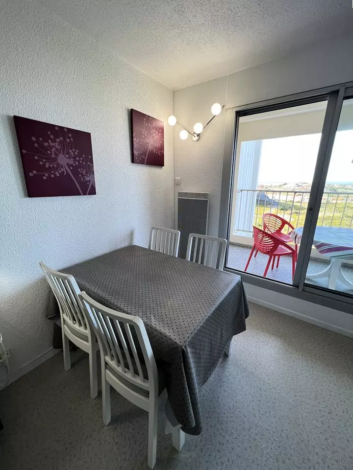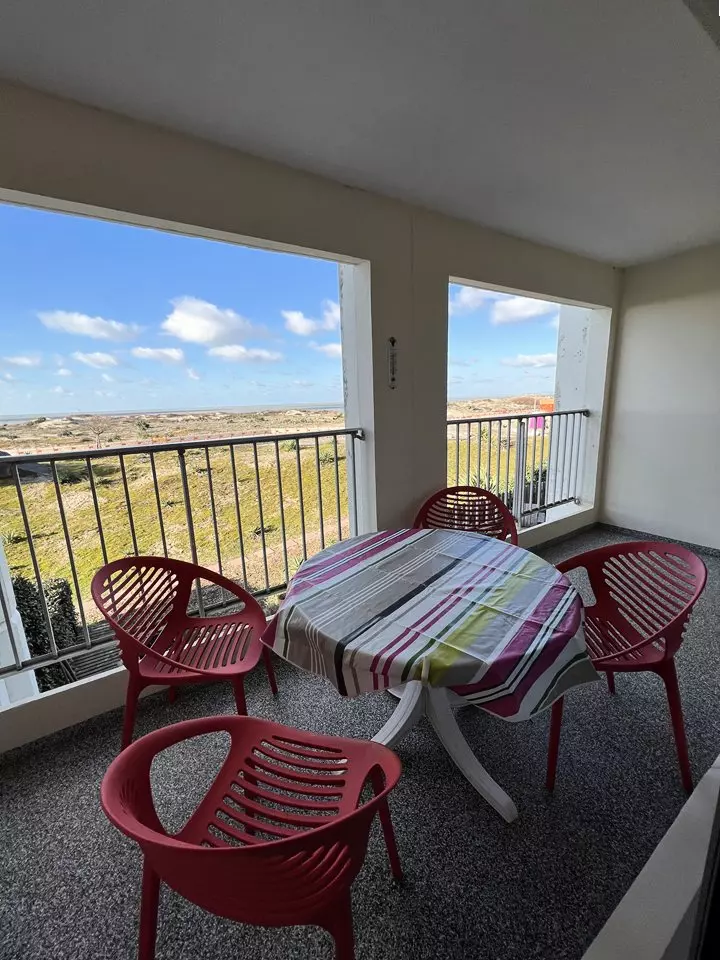 Ideally located on the floor of the Marine residence on the seafront, close to all amenities, this 2** apartment offers you a superb view of the ocean beaches and the Cordouan lighthouse. It consists of a fully equipped kitchen opening onto a living/dining room, a bedroom with a 140 cm double bed and storage, a second bedroom with two 90 cm single bunk beds and storage, a bathroom and a separate toilet. The balcony with ocean view is equipped with garden furniture. Parking space. Deposit to be paid on site. Holiday vouchers accepted.