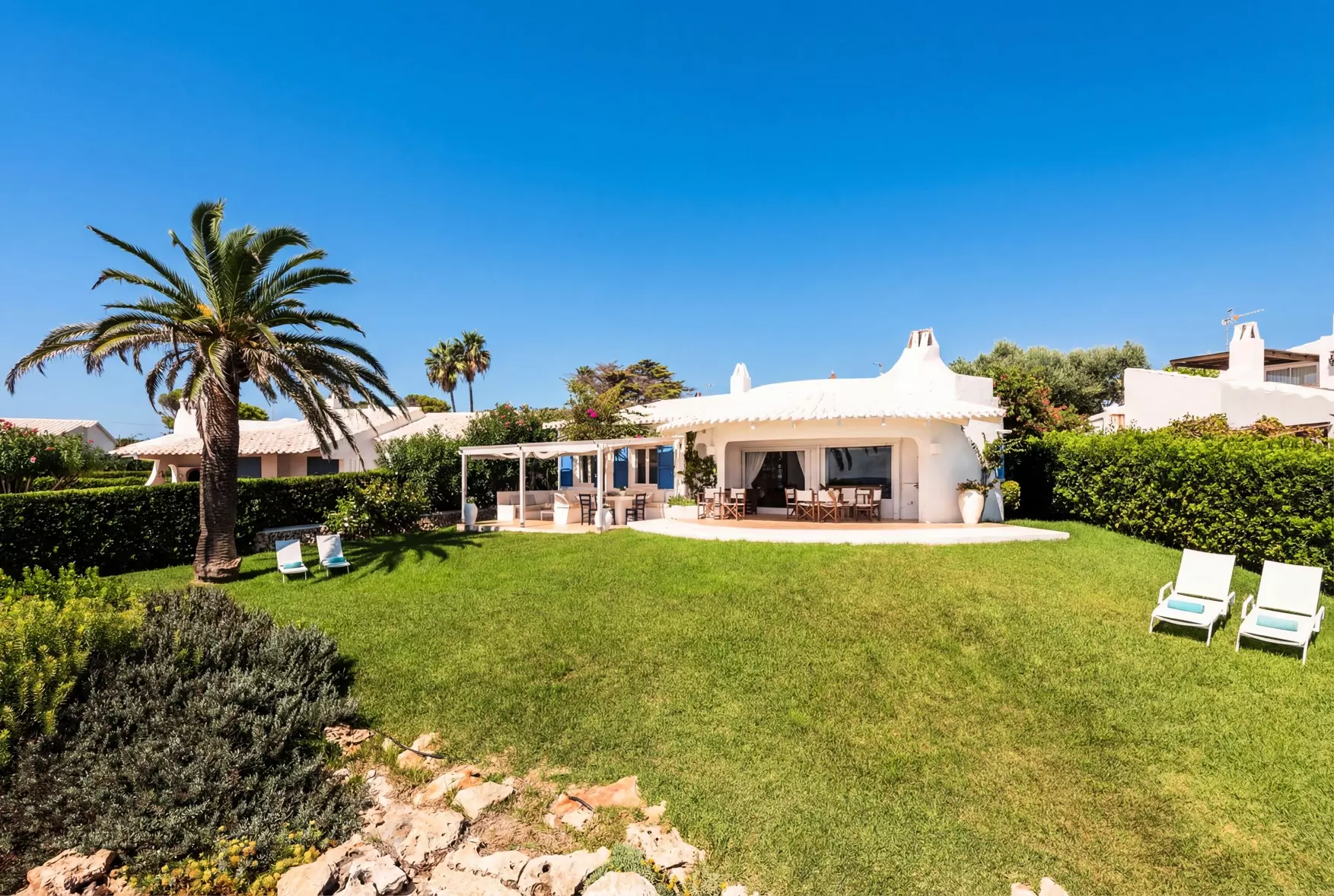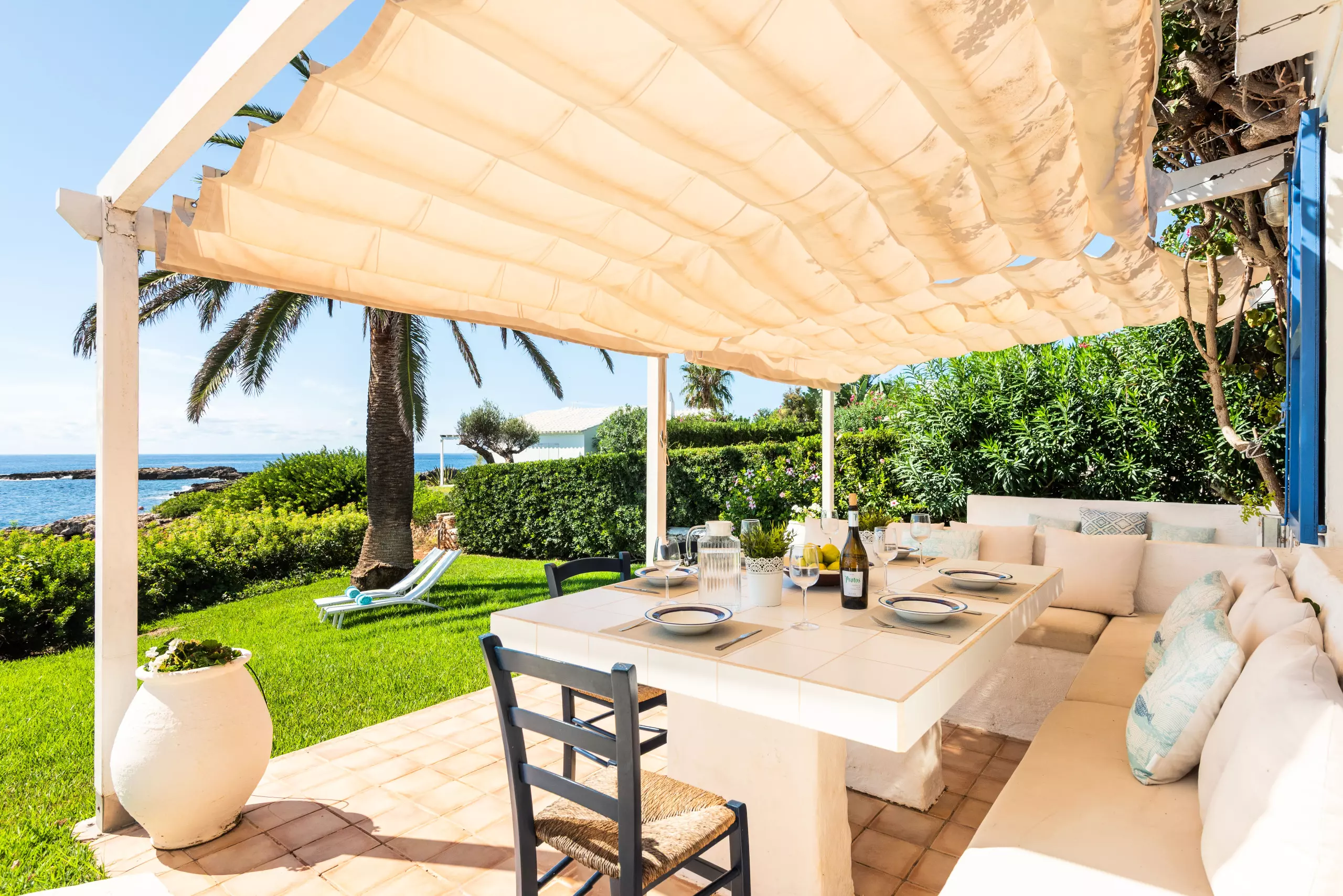 Welcoming and very bright 150 m² accommodation, located on the beachfront, with sea and garden views.