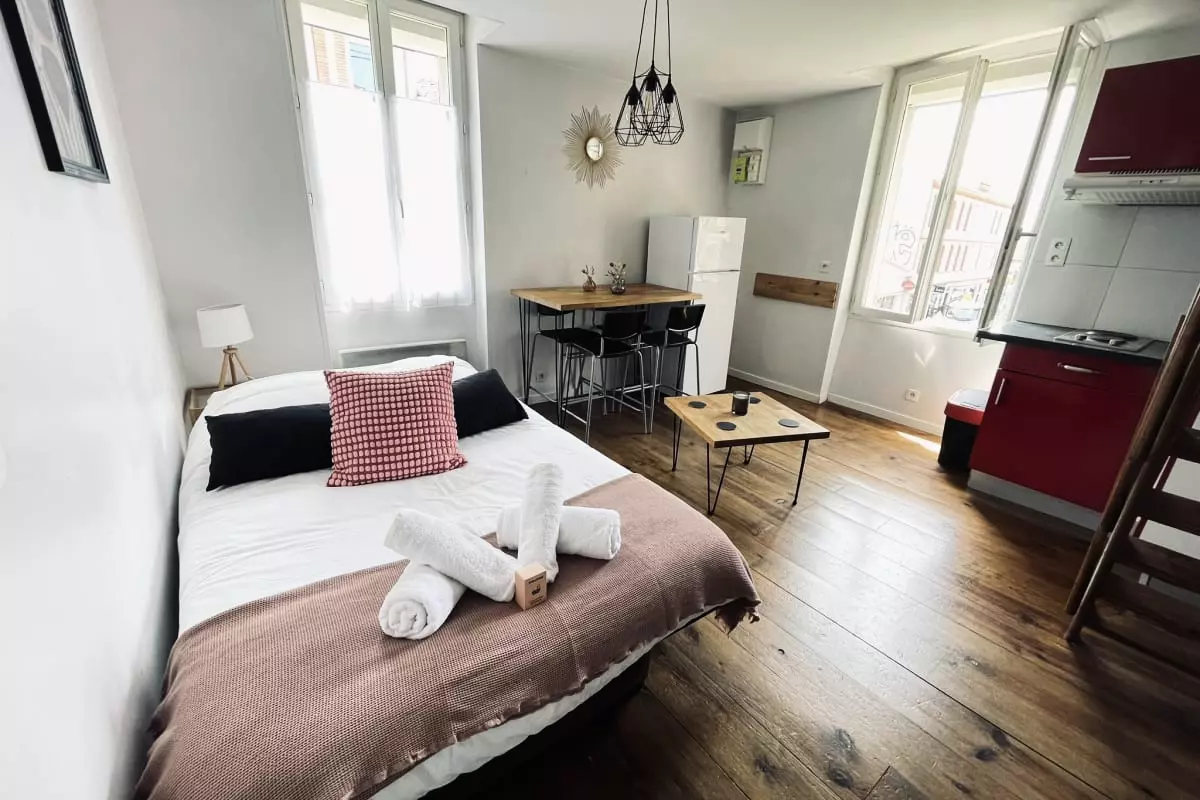 The neighborhood, close to the SNCF train station, is very pleasant and safe with many shops, bars and several restaurants (Bull Rush, Sushi Kare House, Jifu, etc.).