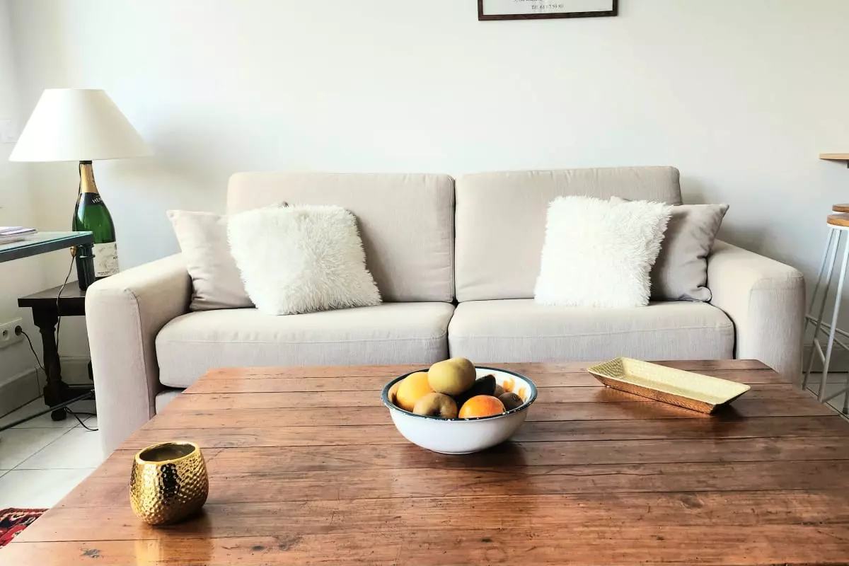 - a comfortable living room with a convertible sofa;