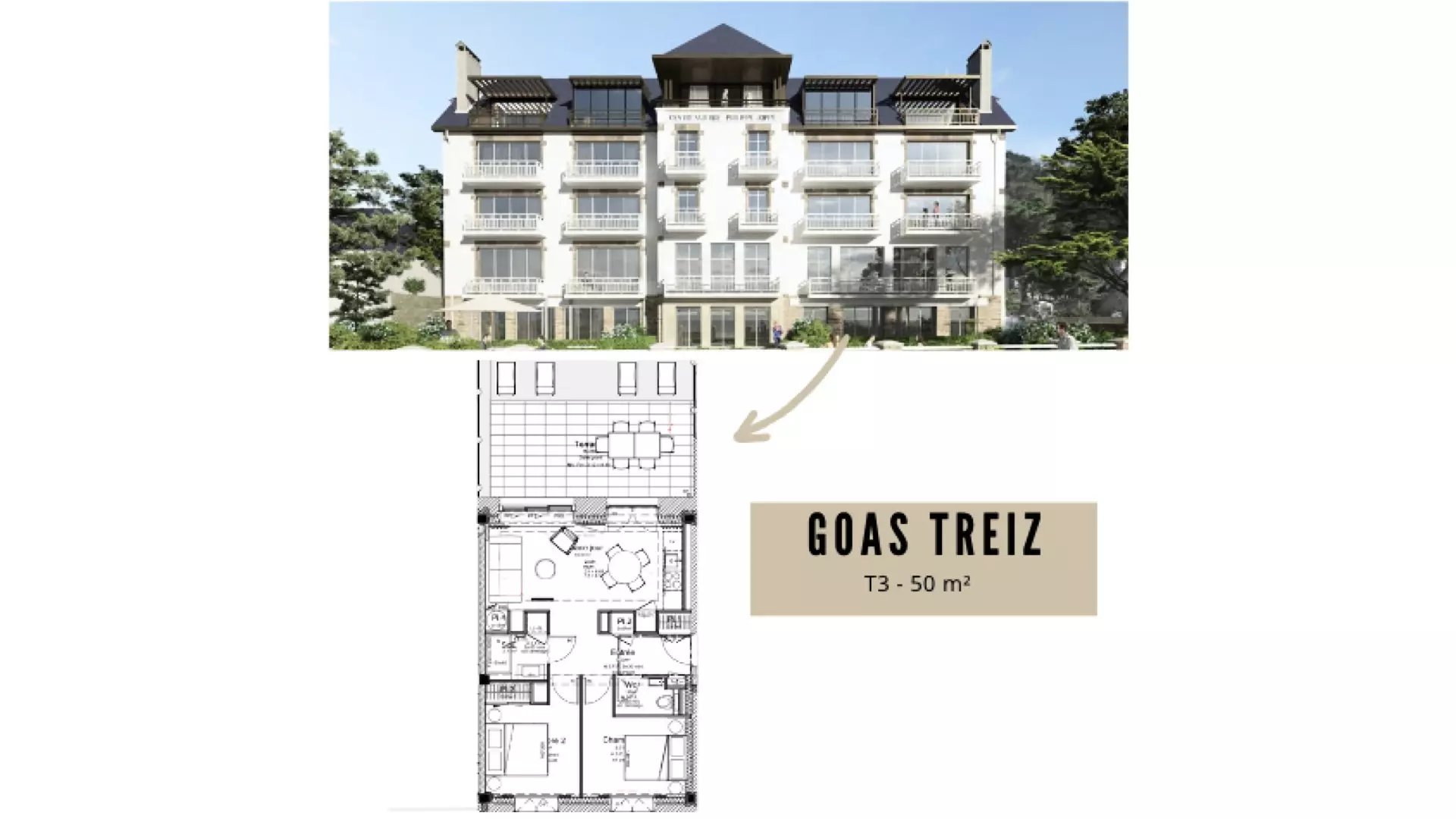 This charming vacation apartment is ideally located across the street from Tresmeur Beach. With its two bedrooms and a private 20 m² terrace, it offers a comfortable and functional living space for family and friends.