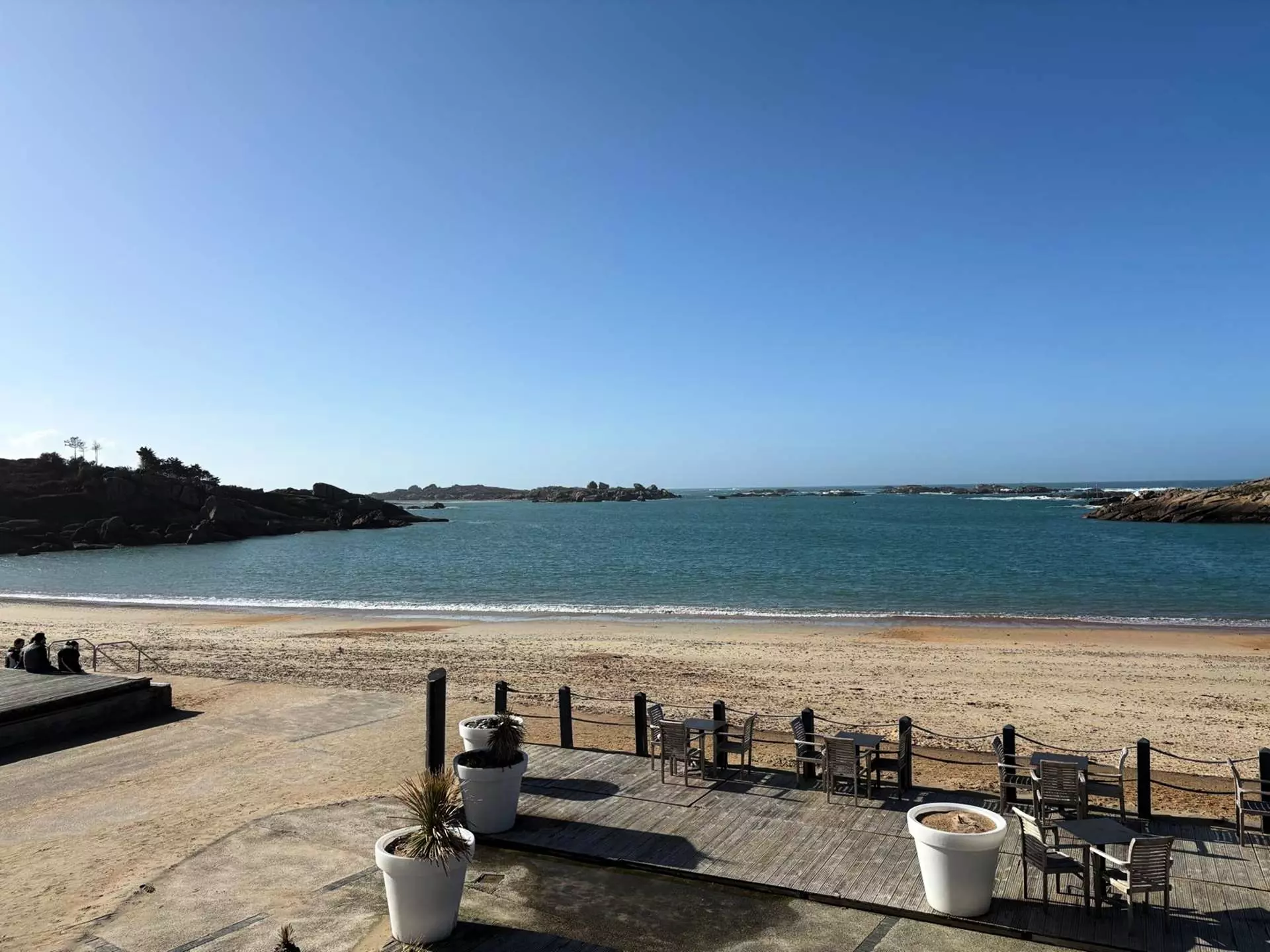 Pleasant and bright, fully equipped studio apartment near the beach and shops. Located in the center of Trégastel, it measures 25 m² and includes an entrance hall, a living room with lounge, a fully equipped kitchen with dining area, a bathroom with walk-in shower and sink, and a separate toilet. Non-smoking accommodation, sheets, towels, tea towels, and bath mats are included, and free parking is available nearby.
