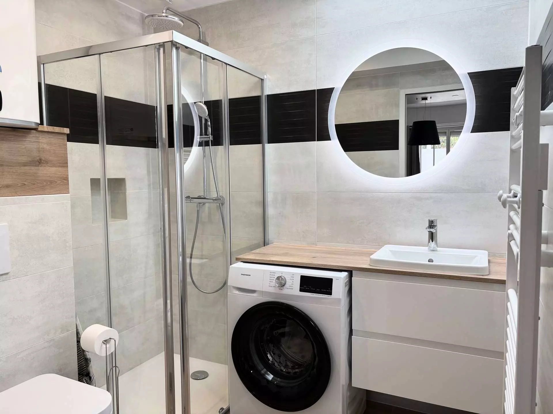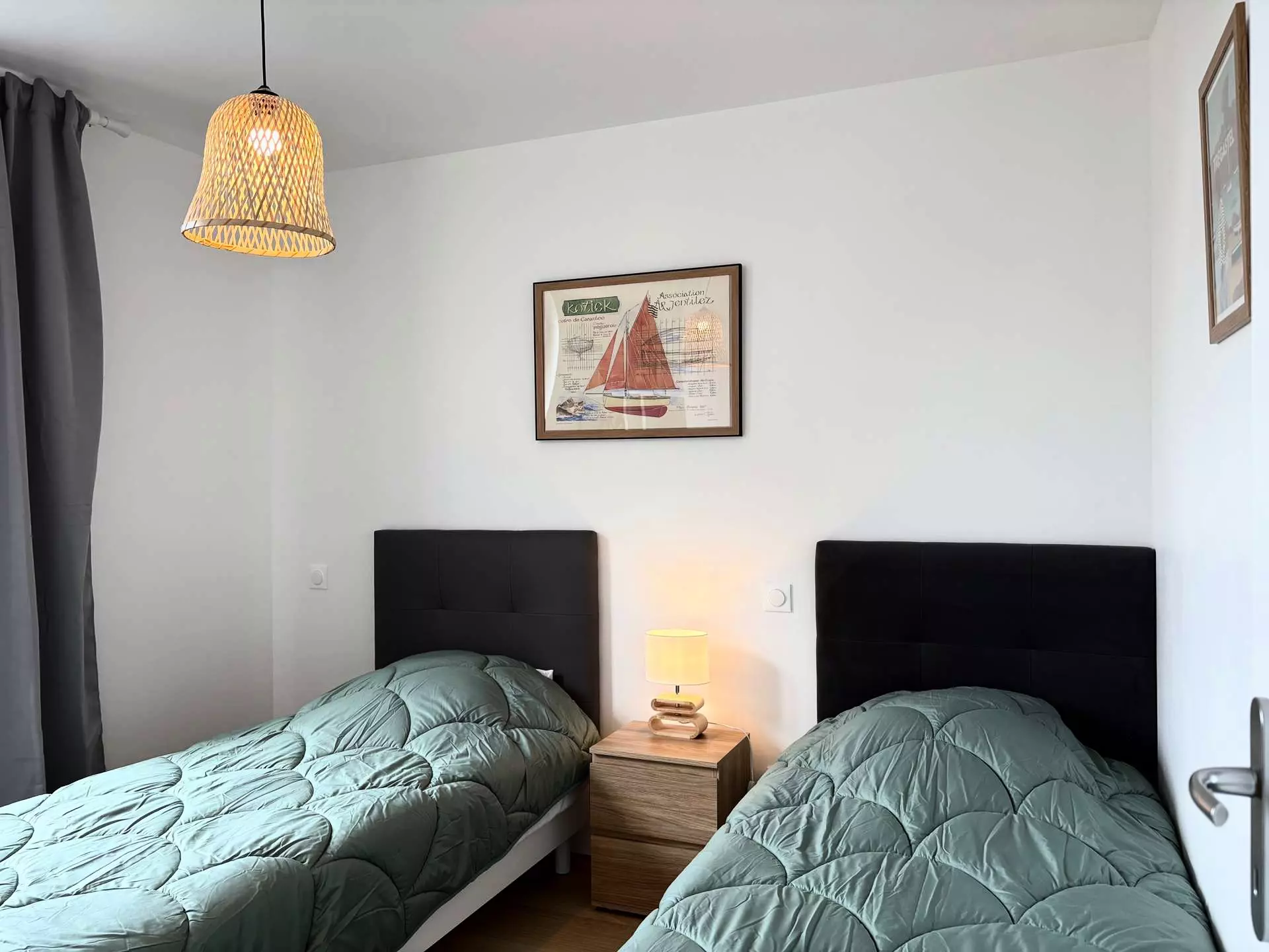 Induction hob, fridge-freezer, oven, dishwasher, washing machine, microwave, coffee maker, kettle, toaster. Table and chairs, widescreen TV, Wi-Fi internet, 1 double bed 140*200 cm, 2 single beds 90*200 cm. Storage, pillows and duvet, garden furniture, 2 deckchairs, barbecue and parasol.