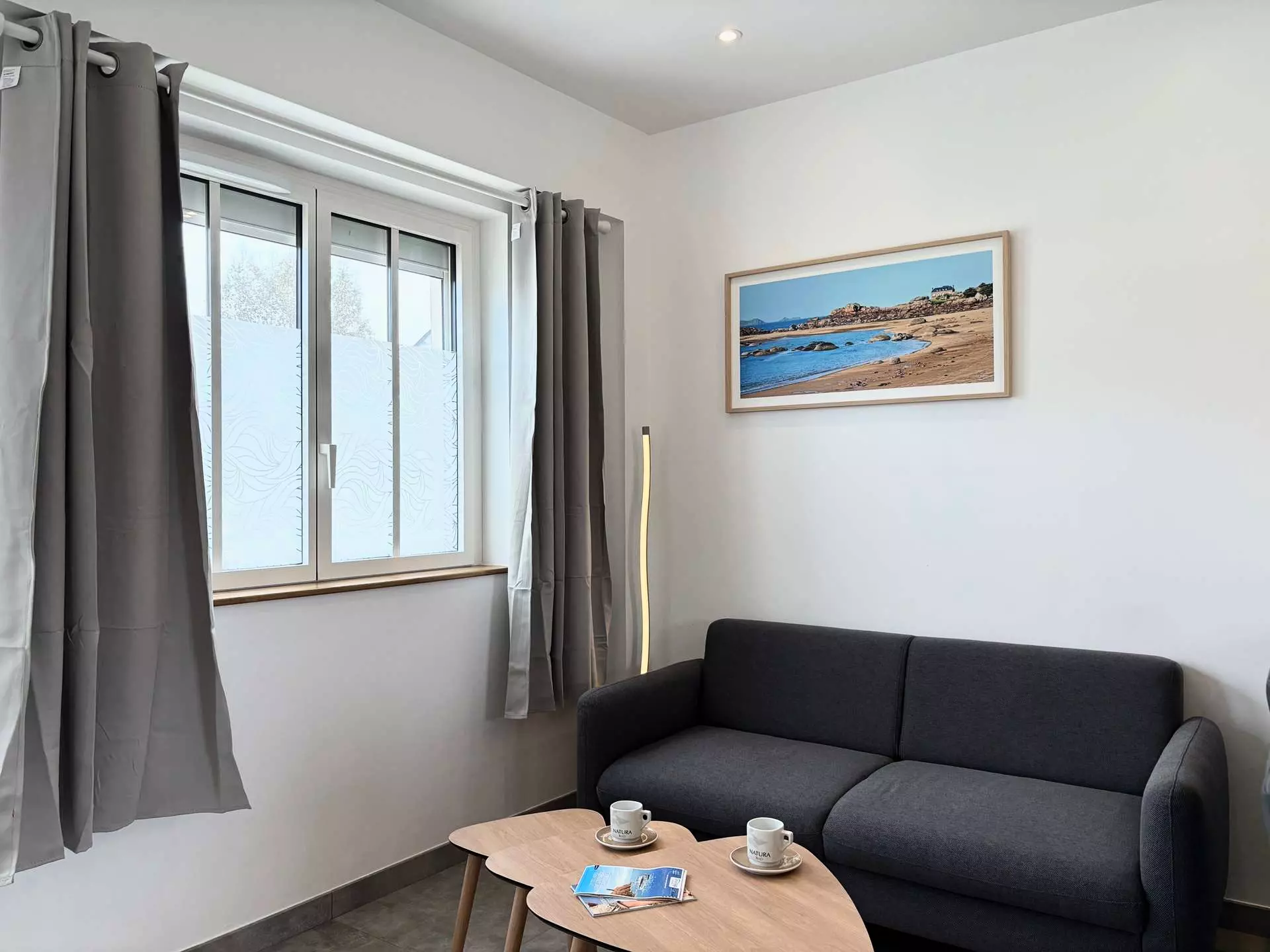 This fully renovated 50 m² duplex house boasts an ideal location for exploring the Pink Granite Coast. You'll be within walking distance of Trégastel's shops, restaurants, and beaches. Rated 3-star furnished tourist accommodation for 4 people, the house includes a living room with a kitchen, dining area, and lounge, and a bathroom with a shower, sink, and toilet. Upstairs, there are two welcoming bedrooms. You can enjoy an outdoor space with garden furniture and private parking. Small dogs are welcome. This property is non-smoking, with linens optional and final cleaning included.