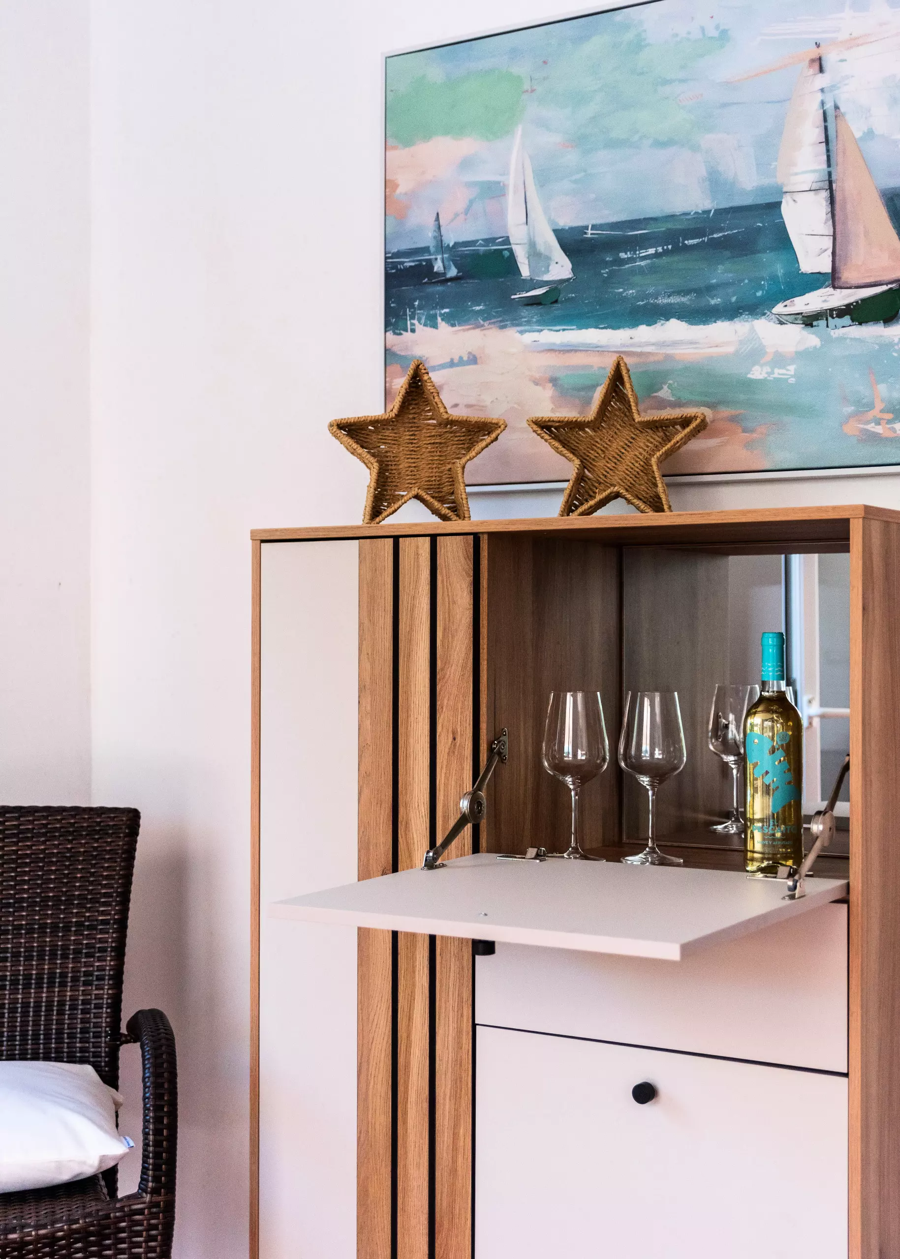 The independent kitchen, with vitroceramic hob, is equipped with refrigerator, microwave, oven, freezer, dishwasher, dishes/cutlery, kitchen utensils, coffee maker, toaster, kettle and juicer.