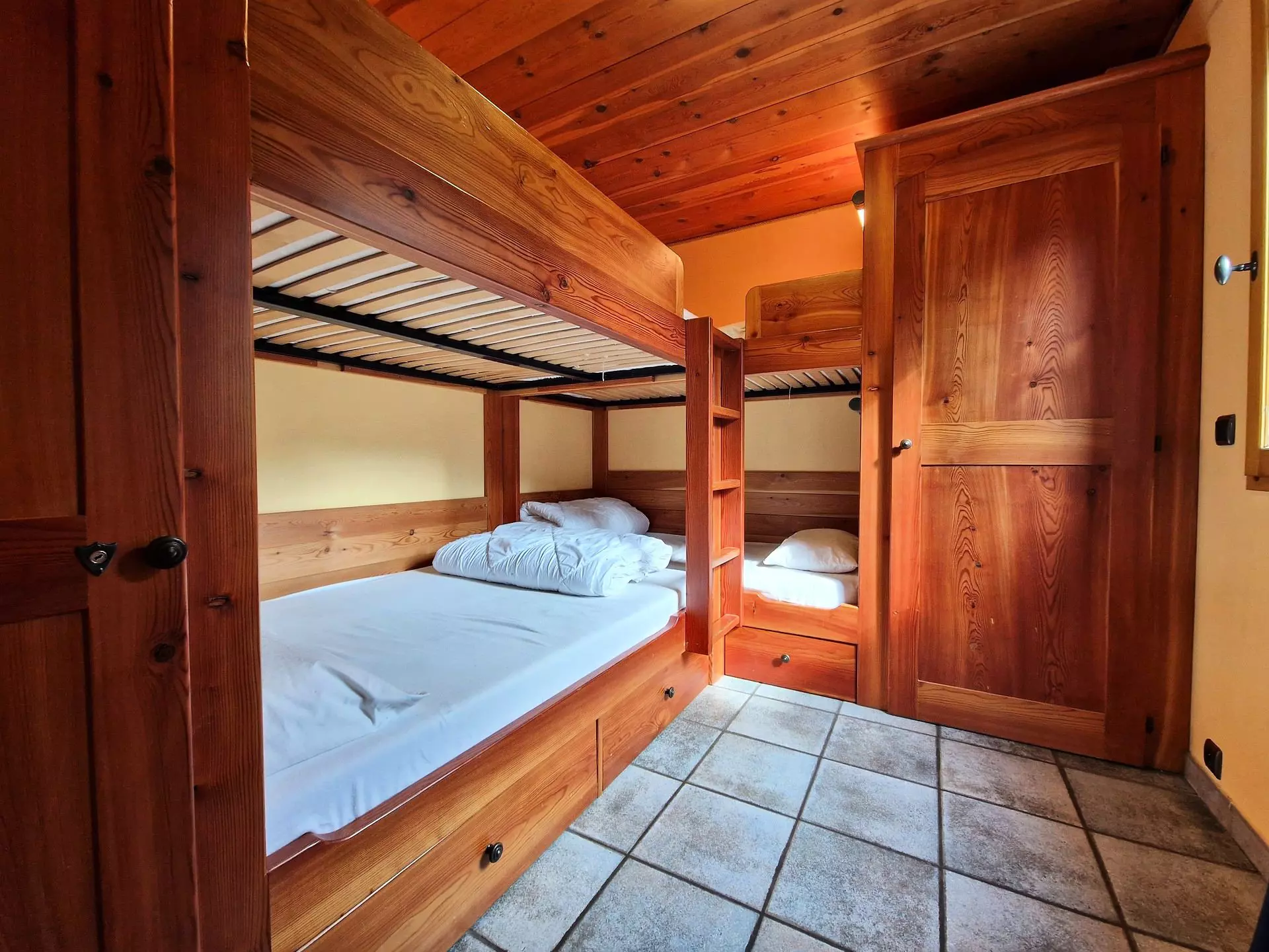 - 1 bedroom with 2 double bunk beds + 2 single bunk beds, i.e. 6 beds + closet