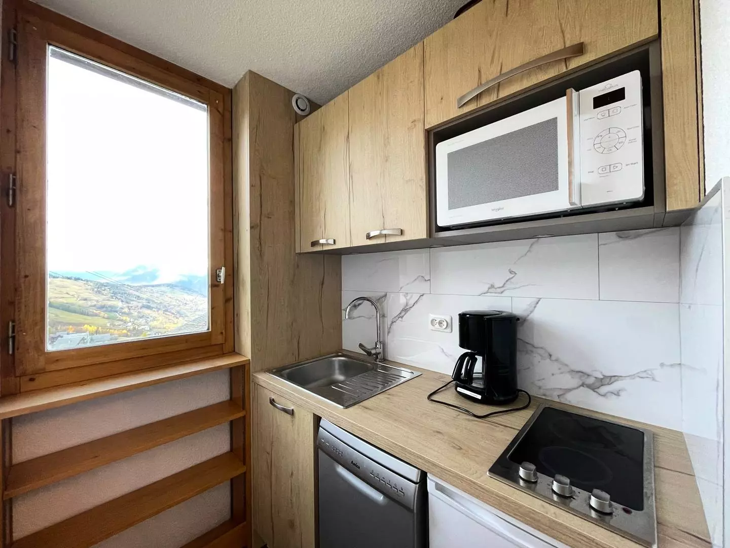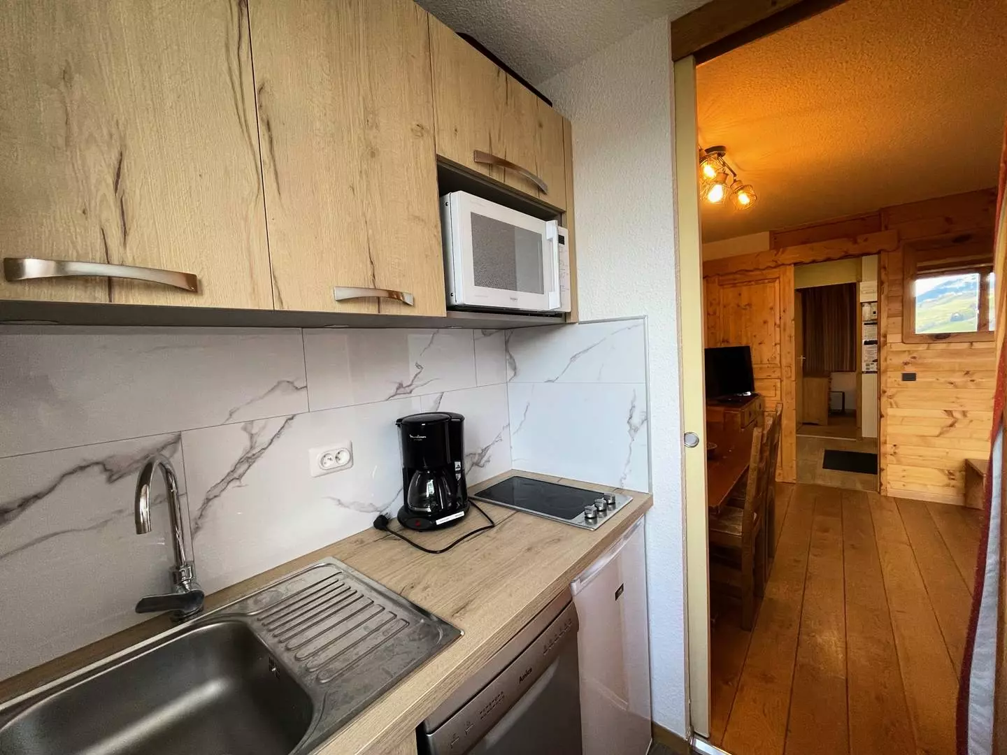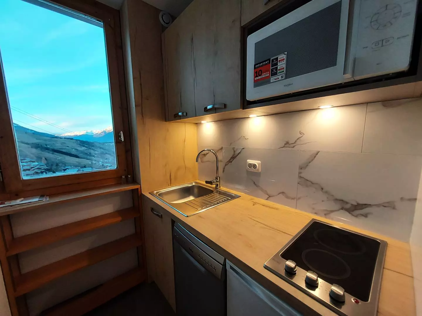 The "lin" residence is ideally located for families with children attending ski school. It offers direct access to the ski slopes. The kids' club (Piou Piou for ages 6 and up) is accessible via the Télébourg cable car. Shops are approximately 300 meters away. It is recommended to reserve an underground parking space (for a fee).