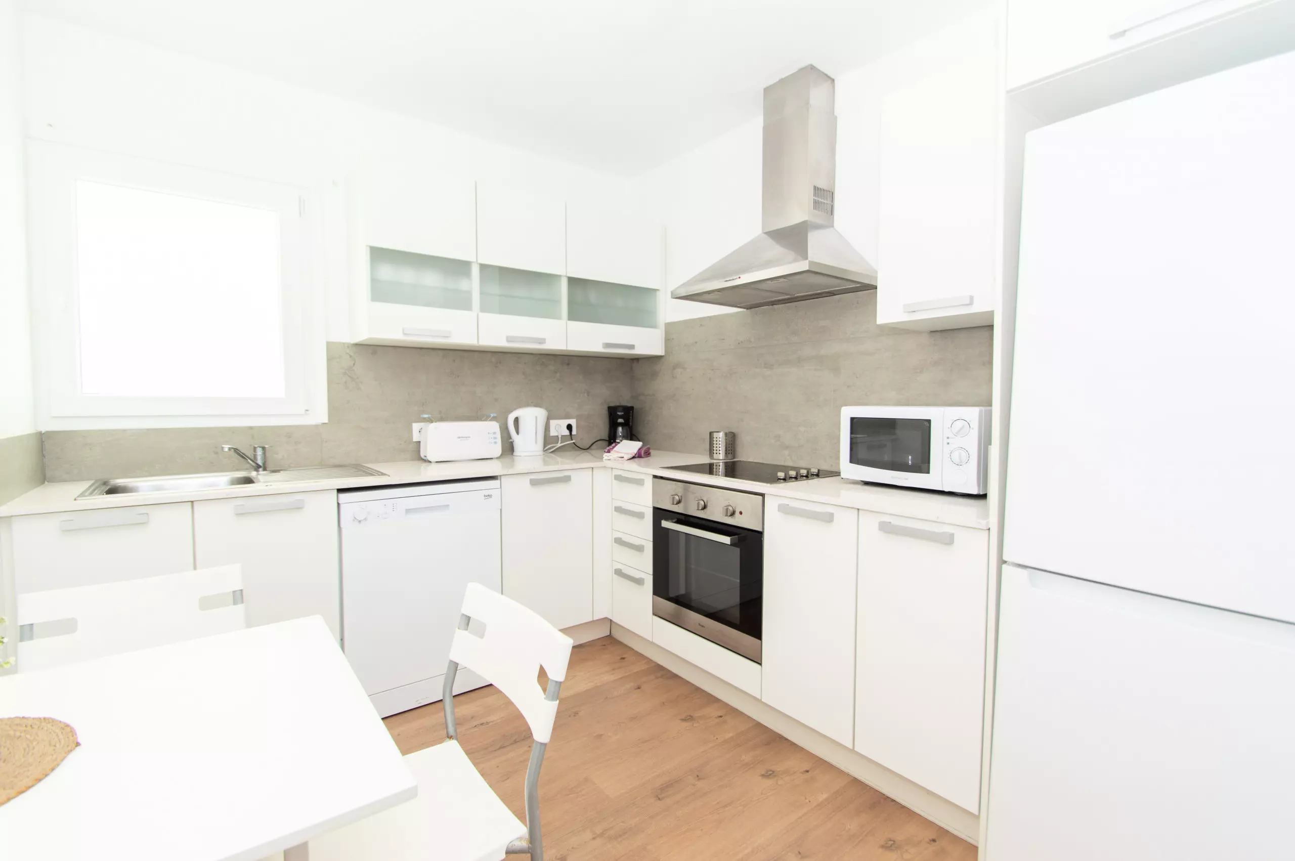 The kitchen is fully equipped with everything you need to satisfy all culinary needs. It has a table for diners, ceramic hob, oven, dishwasher, refrigerator, microwave, coffee maker, toaster, kettle and all kitchen utensils.