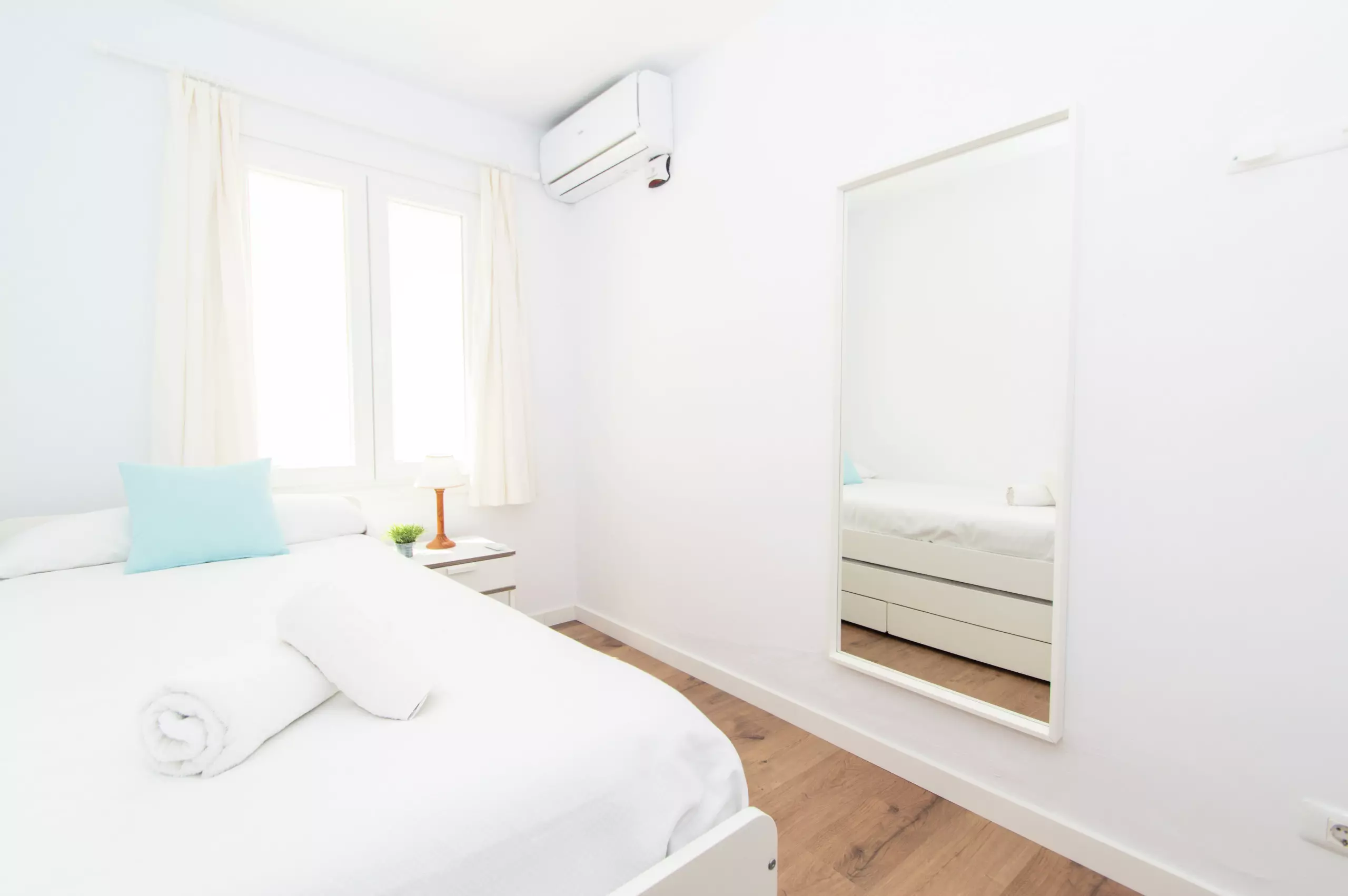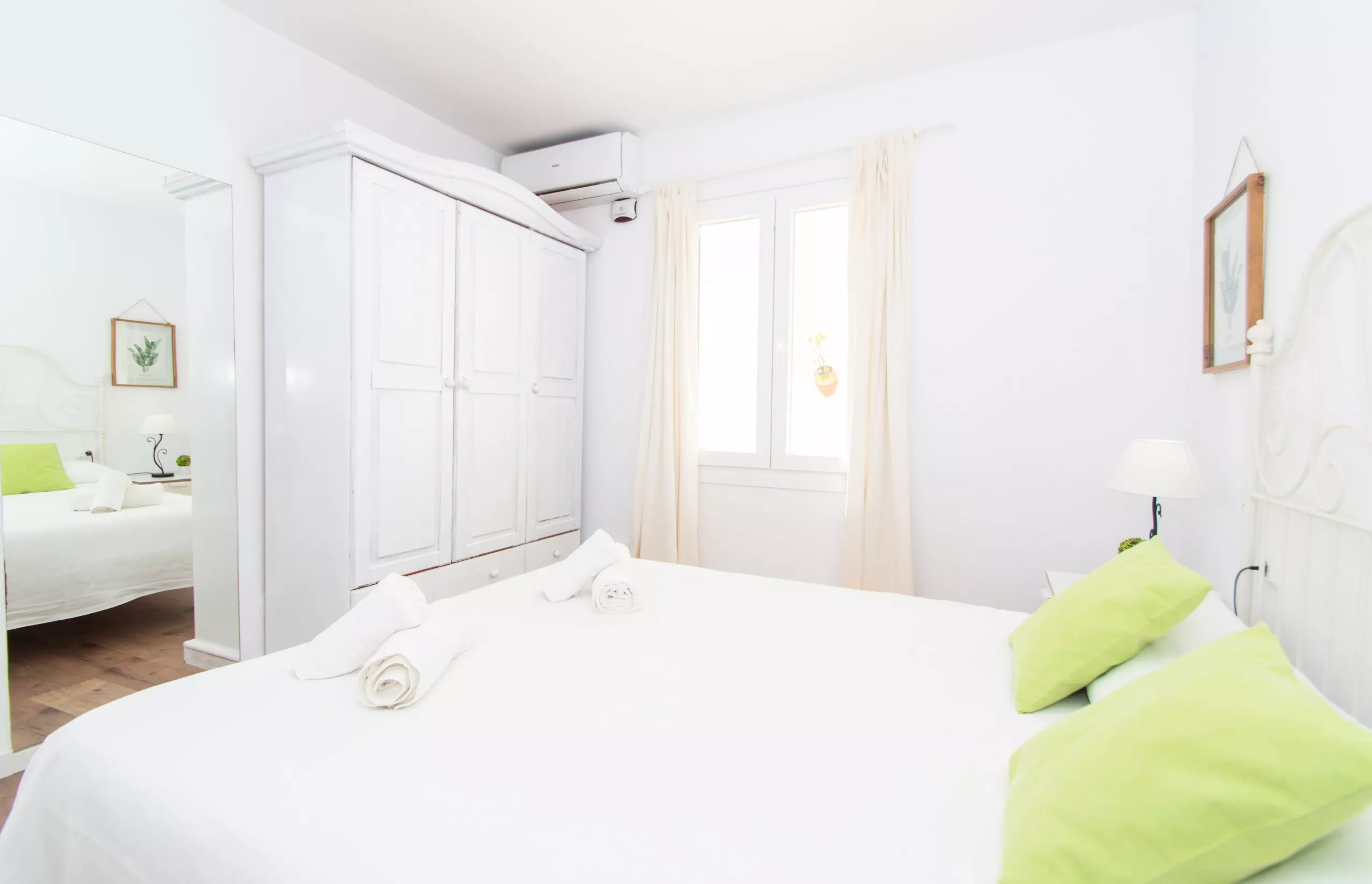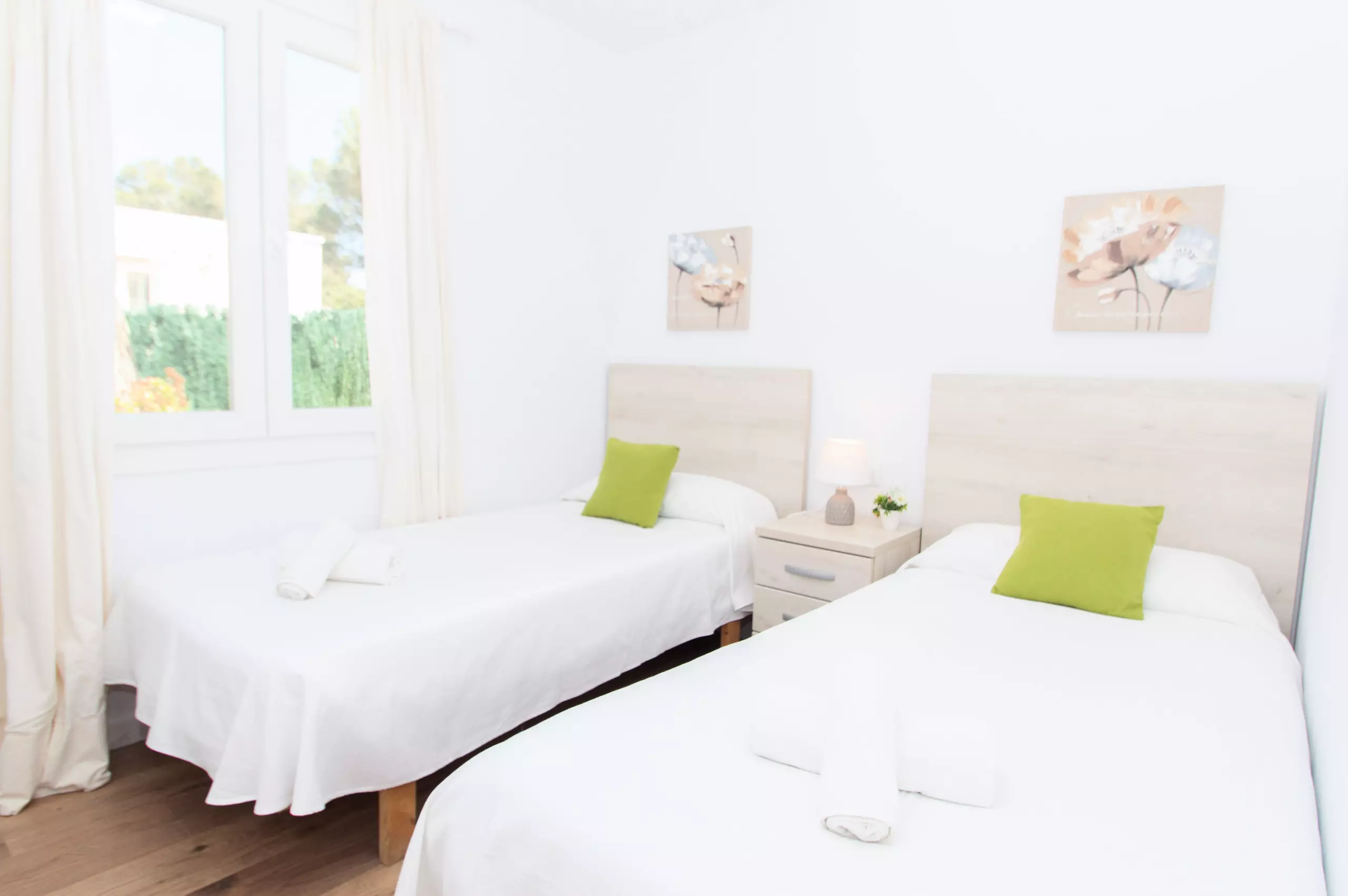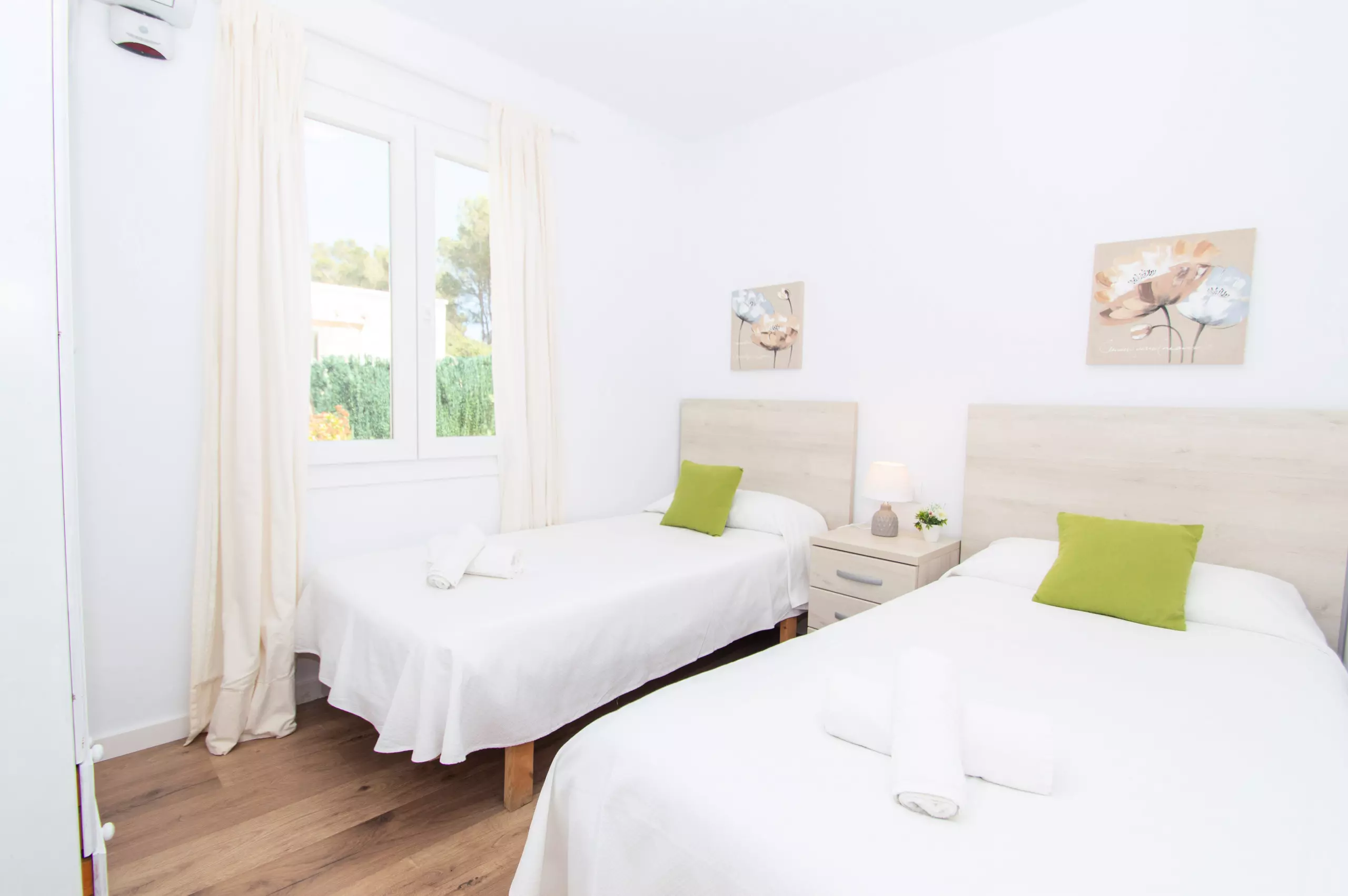 The rooms are made up of four bedrooms, one of them with a double bed, a room with two single beds and two single rooms. All of the bedrooms have air conditioning.