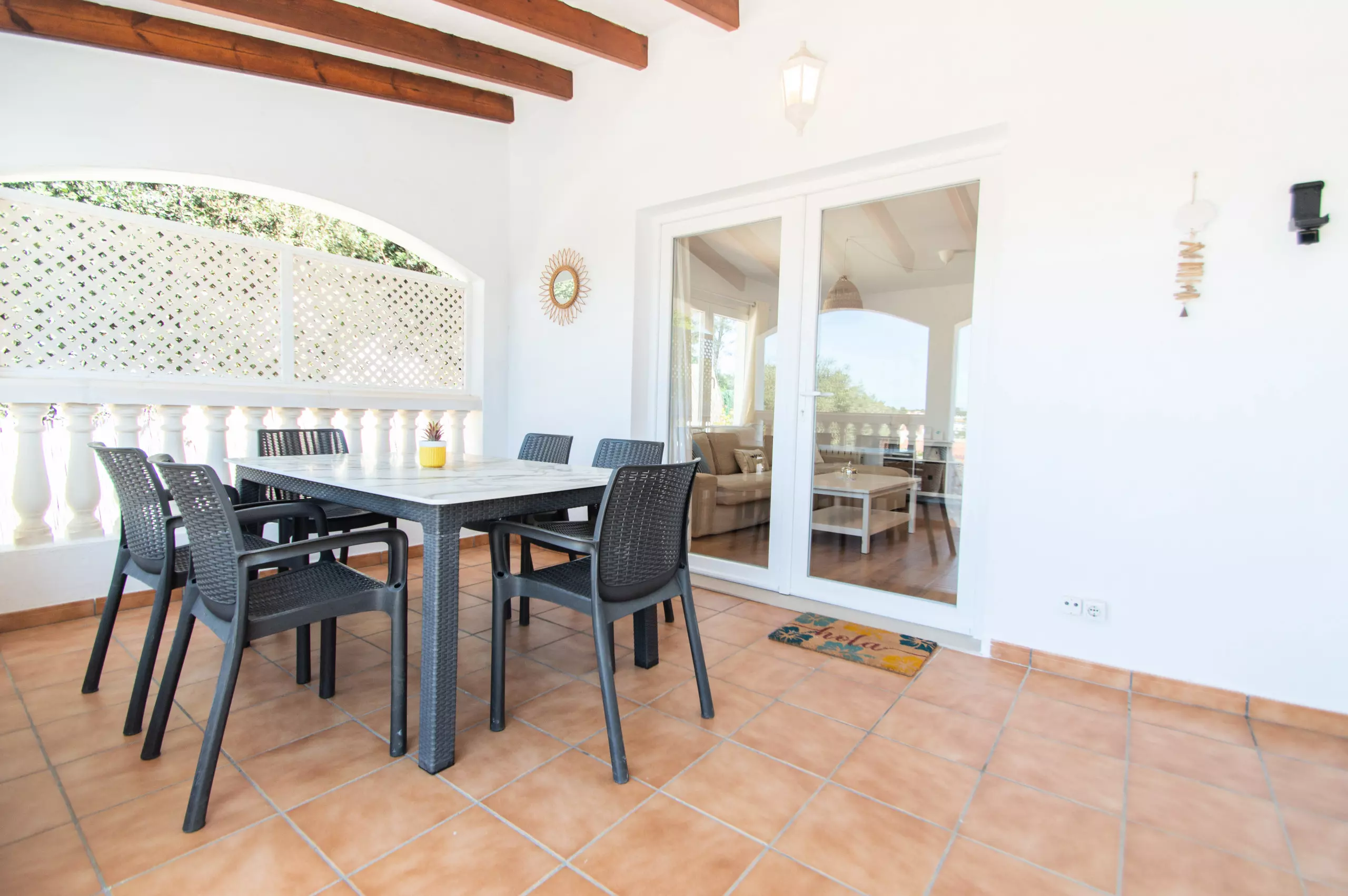 This Mediterranean and Menorcan style Villa rental in Menorca has capacity for six people, has a private pool, air conditioning and has four bedrooms, separate kitchen, living room, bathroom, toilet, terrace, barbecue, WiFi and two private parking spaces.