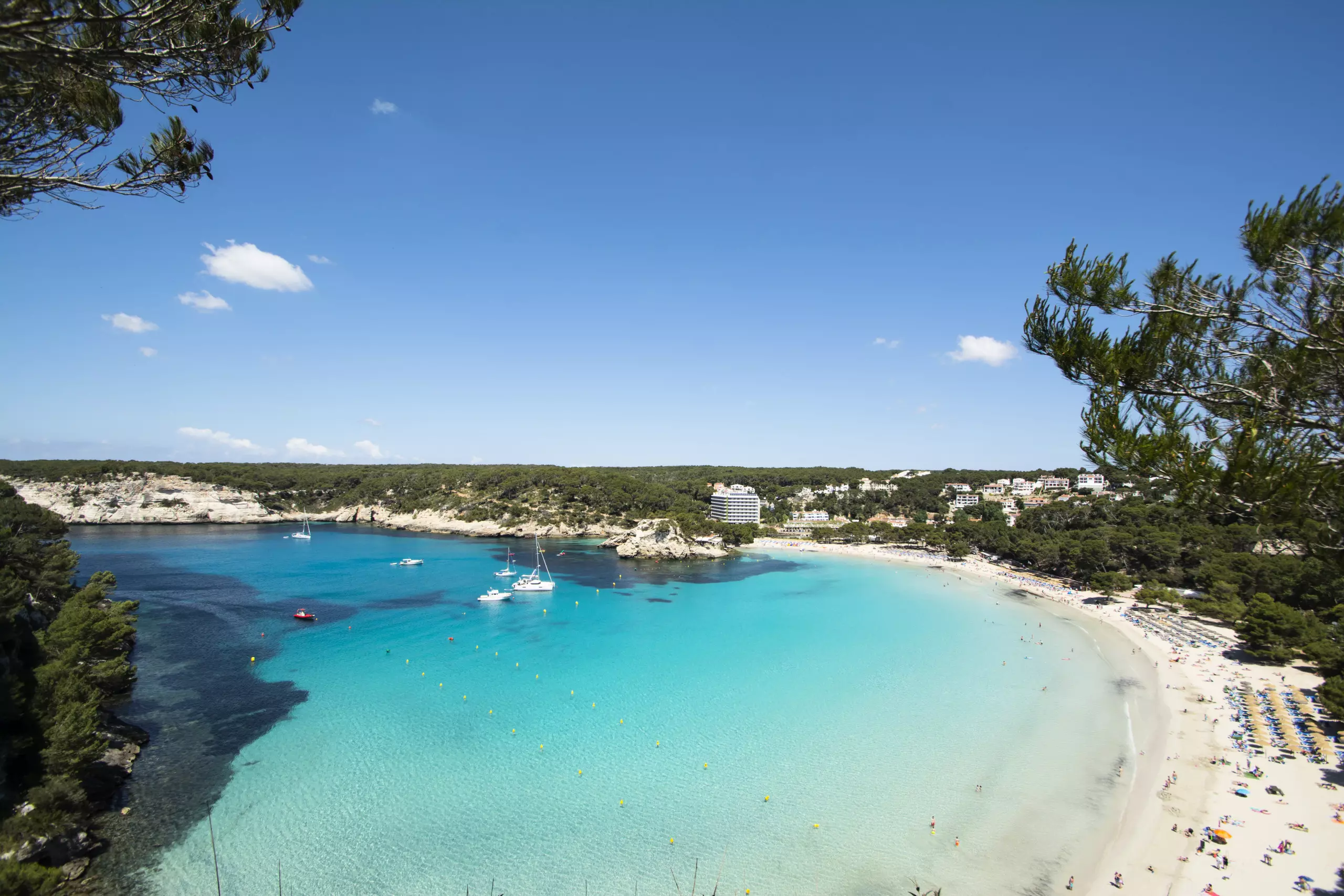 The Cala Galdana resort is one of the best known and most prestigious in Menorca thanks to its impressive beach located in the middle of high cliffs that border it and protect it from the wind, its fine white sand, its crystal clear waters and its shell shape make it a true paradise.