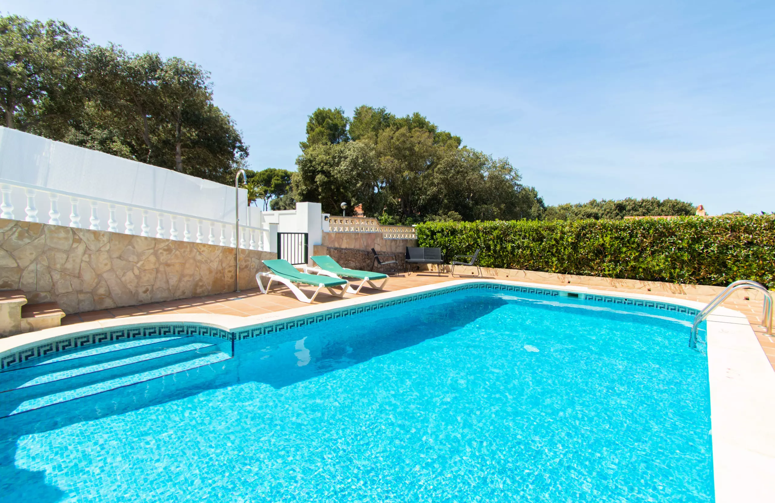 The Villa to rent stands out for its sunny outdoor area with a large private pool, terrace, and barbecue ideal to enjoy a magnificent vacation with family, as a couple or with friends. It is located in an enviable, quiet environment of great natural value just a 5 minute walk from Cala Galdana Beach, a 15 minute walk from Cala Mitjana and very close to Camí de Cavalls.