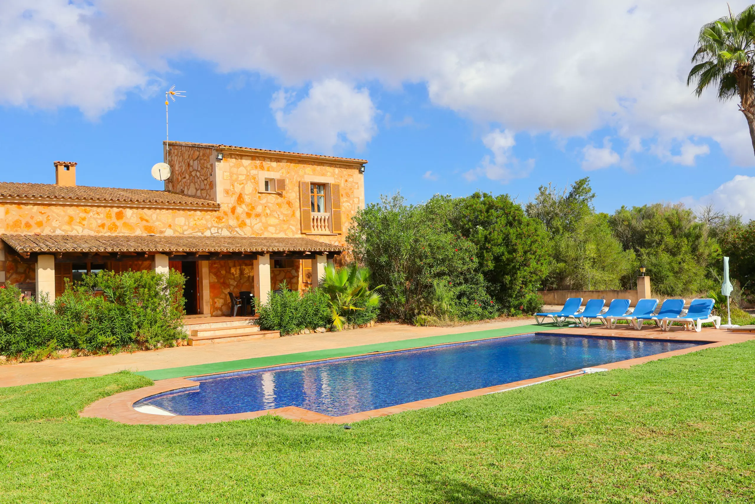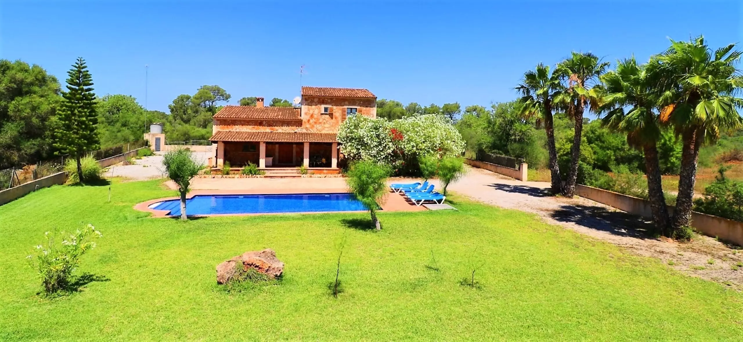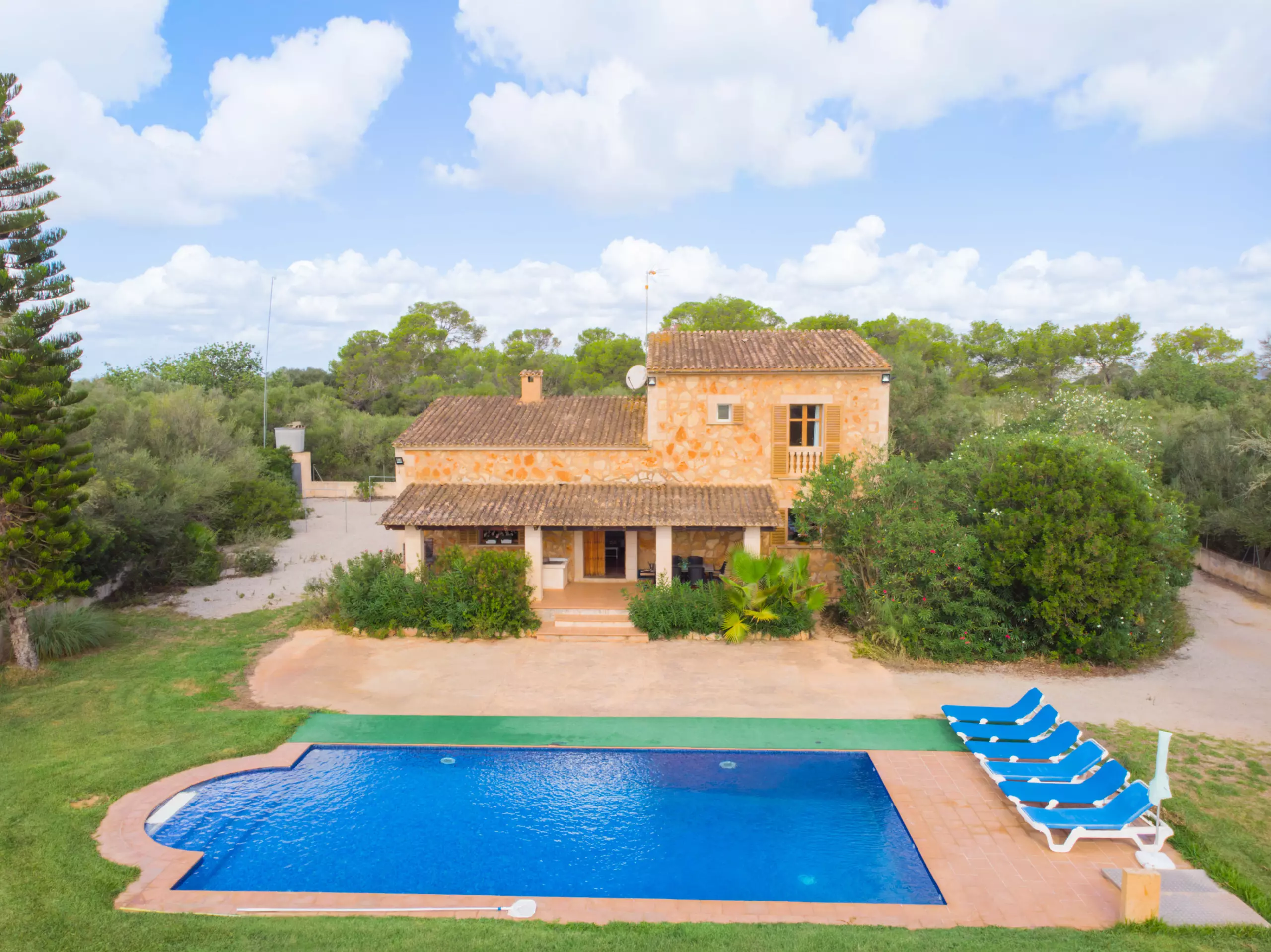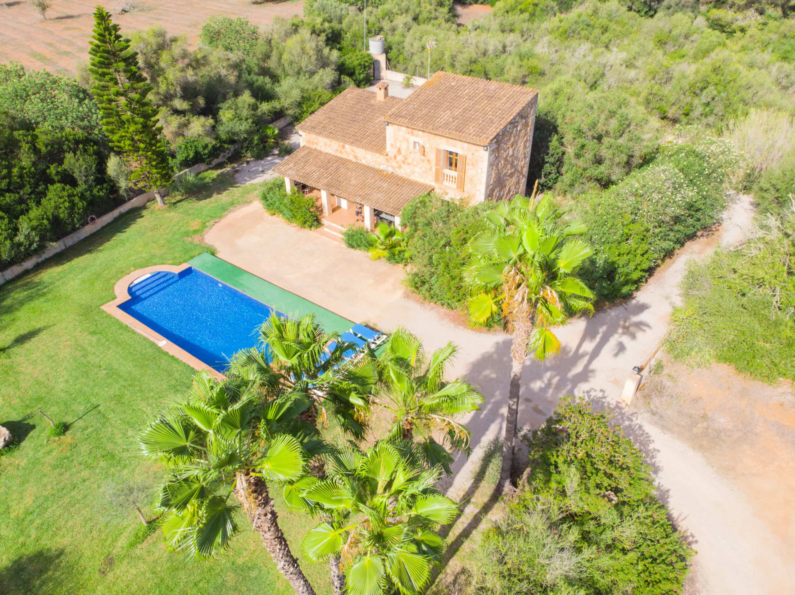 The house is located in the south of Mallorca, between the towns of Campos and Santanyí, medium-sized villages where you will find all the services you may need: restaurants, supermarkets, pharmacies, banks, gas stations, etc. Es Trenc, Ses Covetes, Sa Ràpita and Sa Colònia de Sant Jordi, well-known beaches in Mallorca, are only 16 minutes away by car.