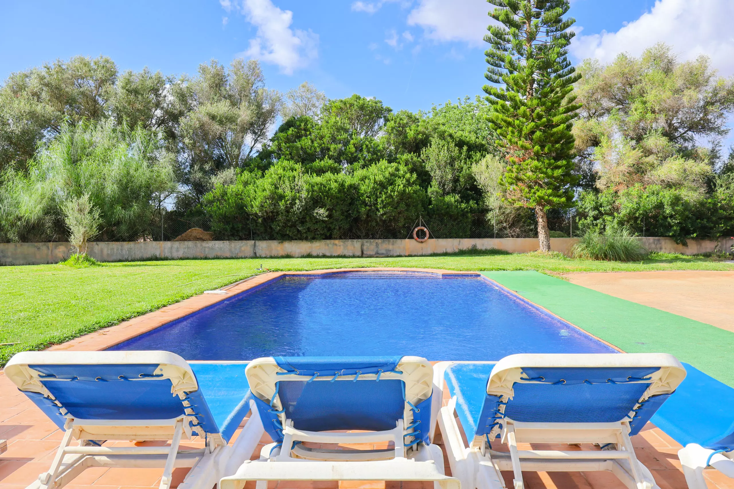 In the outdoor area: you will find the large 10x5 m swimming pool, with its sun loungers and relaxation area, porches, chairs.... In one of the porches there is another table where you can enjoy your meals outdoors. From here you can control the entire pool and terrace area. An outdoor grill for barbecues with family or friends.