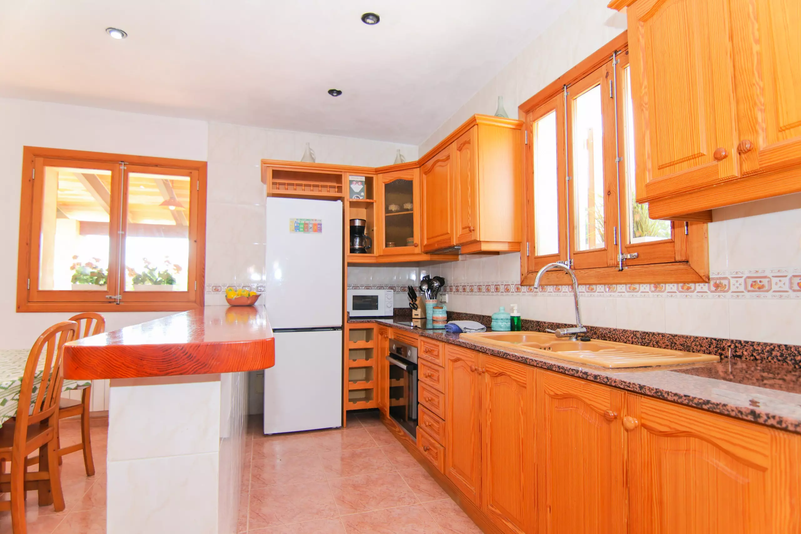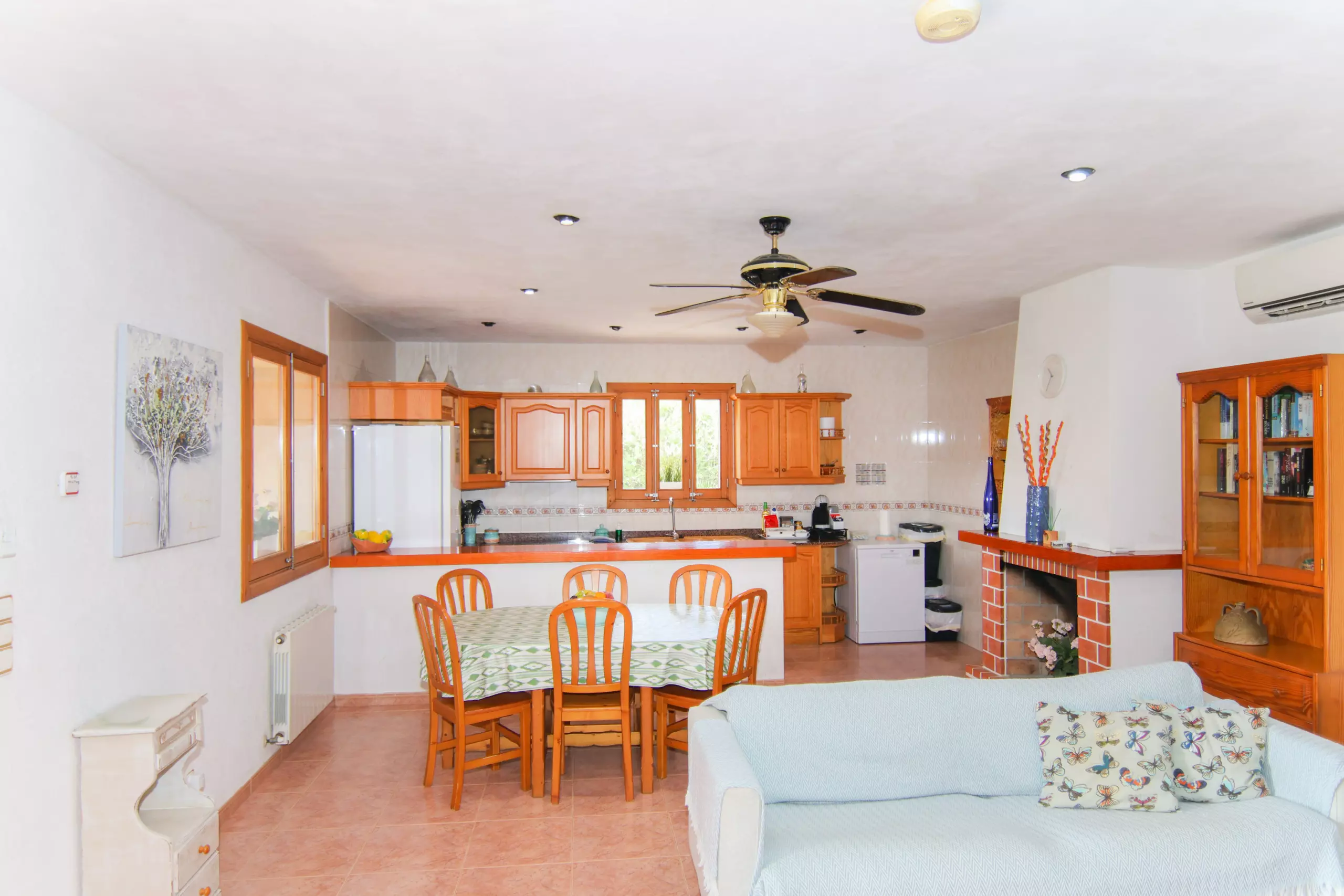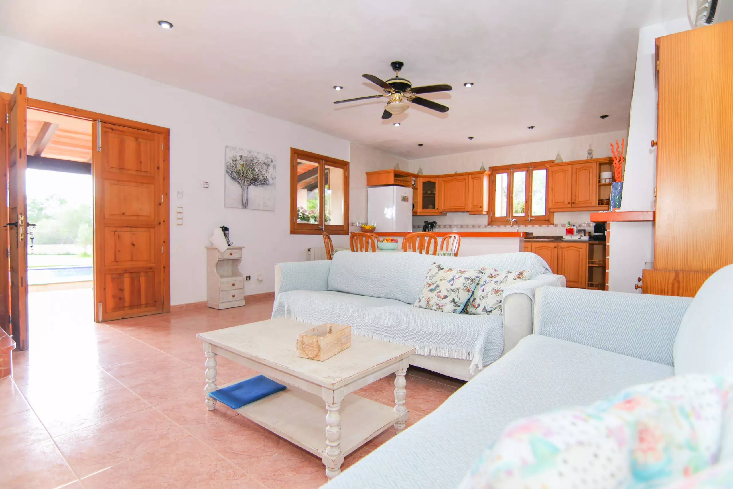 The Finca is furnished with light wooden furniture and has 200 m² of living space and can accommodate 6 people.