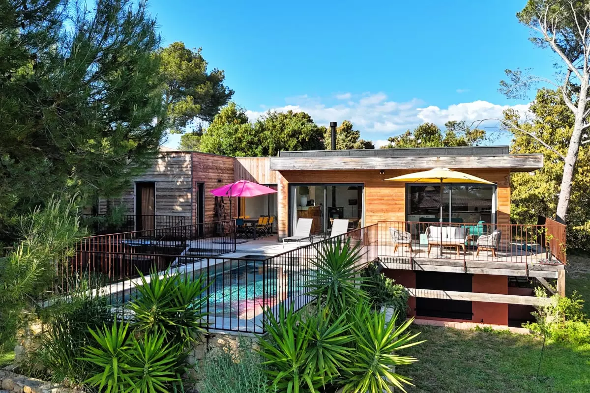 This contemporary 200 m2 villa is new and built in wood, it offers a dominant view of the old listed village of VELAUX and the surrounding hills.