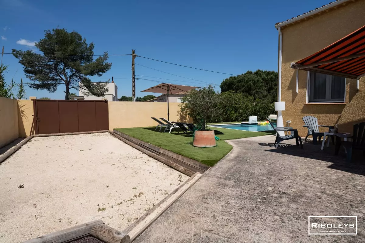 The terrace, equipped with a pergola, invites you to enjoy your meals in the shade. A gas barbecue is available for your summer grilling. Finally, a designated area near the pool will allow you to play pétanque and share pleasant moments with family or friends.