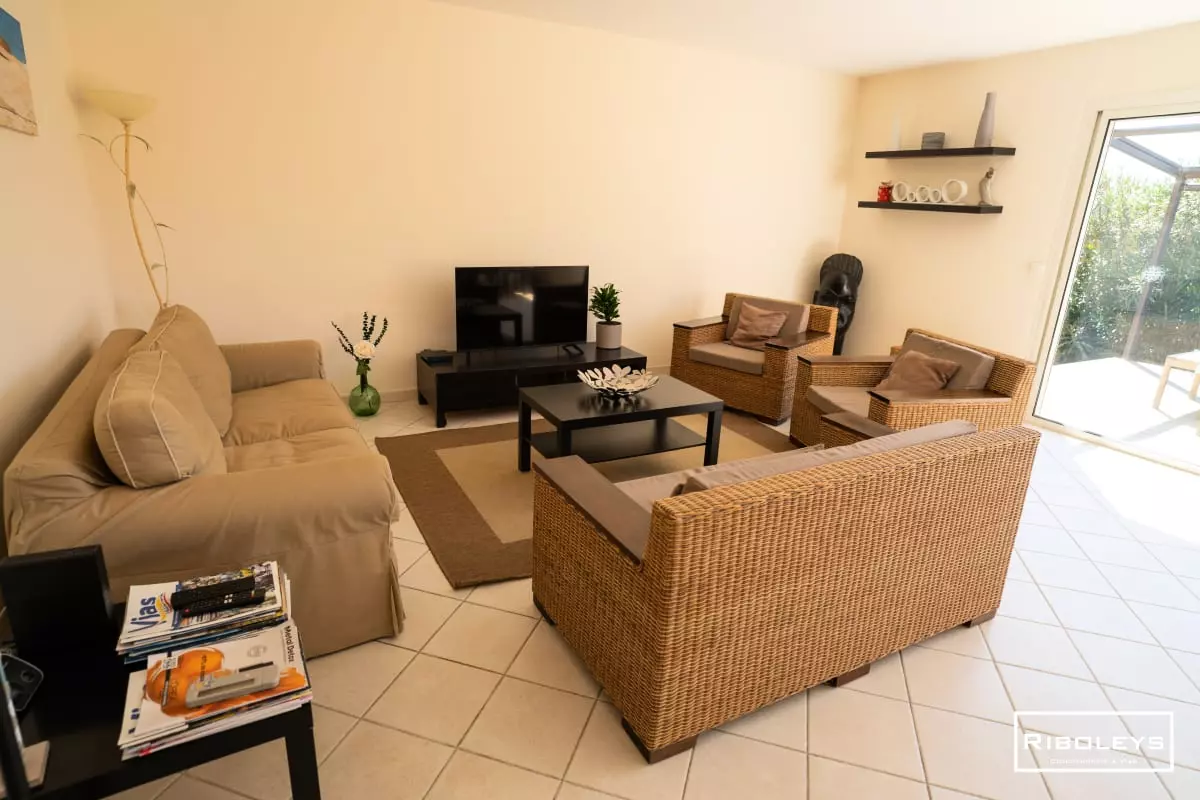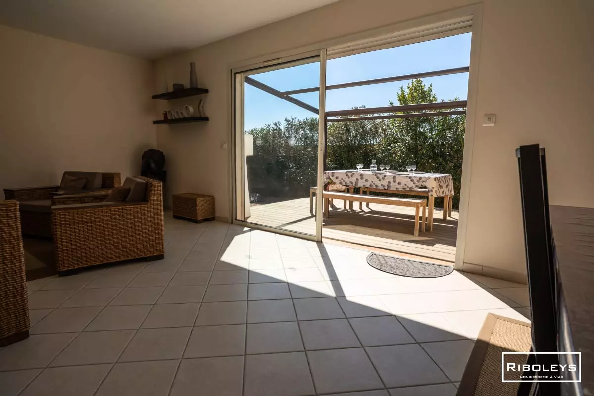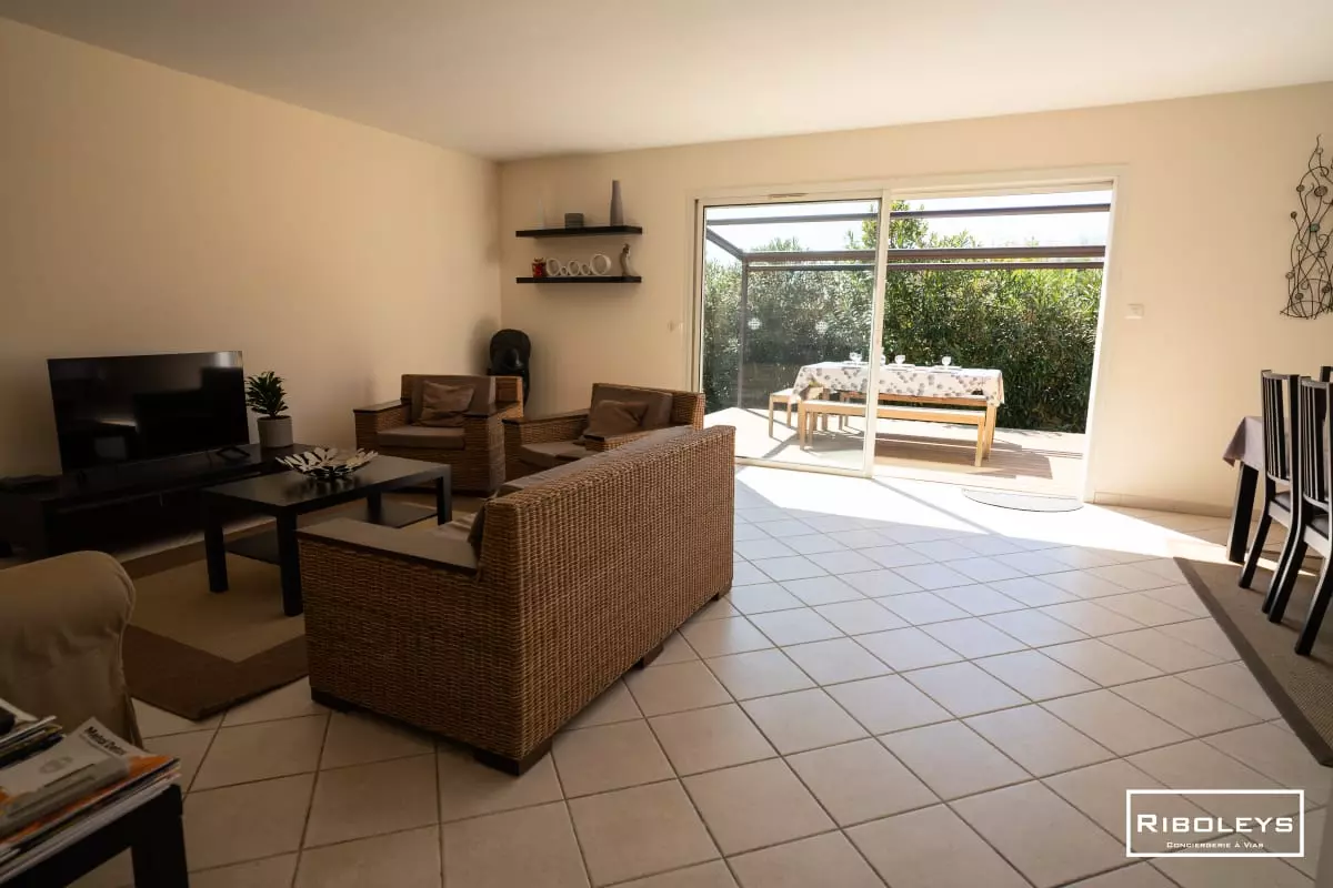 The villa features a spacious, bright living space, opening onto a pleasant terrace and a fully fenced 350m2 garden, featuring an in-ground pool (4m x 7m and 1.50m deep), ideal for relaxing outdoors. In the low season, the pool can be heated for an additional fee to prolong the swimming pleasure.