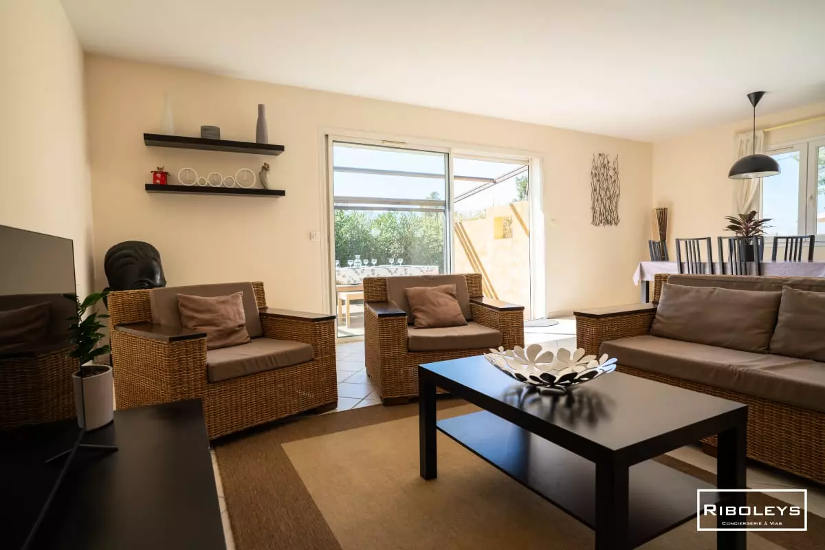 VV07 - Superb air-conditioned single-story 4-room villa with its large garden and private swimming pool located in a quiet street in Vias, a typically Mediterranean village located 2.5 km from the beaches.