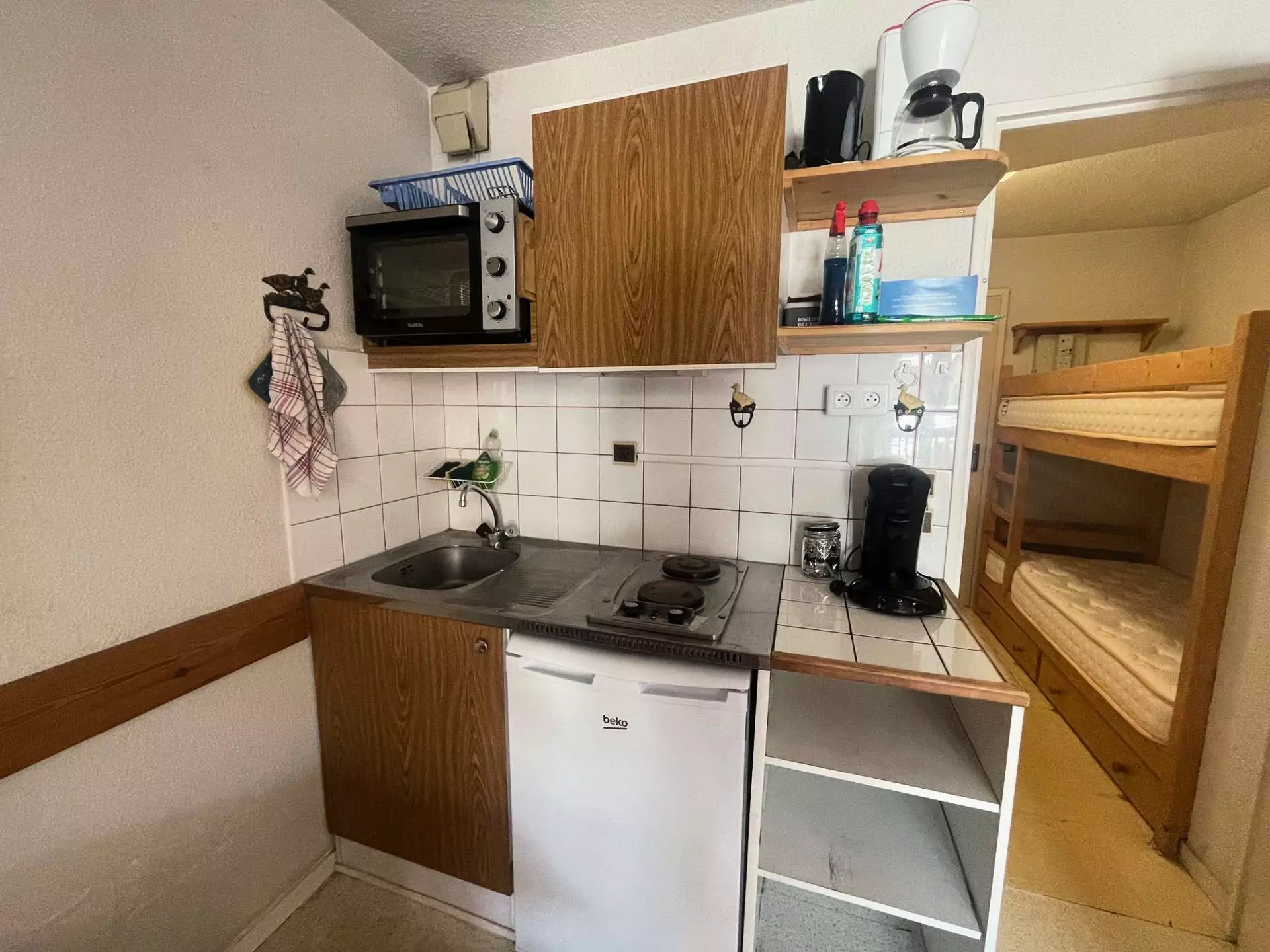 In the Venosc district, close to amenities and shops (various shopping, restaurants, outings, etc.), just a few minutes' walk from the slopes, this 20m² studio is undeniably bright and features a sleeping alcove with bunk beds, a separate shower room and toilet, a fully equipped kitchen area, and a living room. There is a south-facing balcony of approximately 5m². Ski locker.