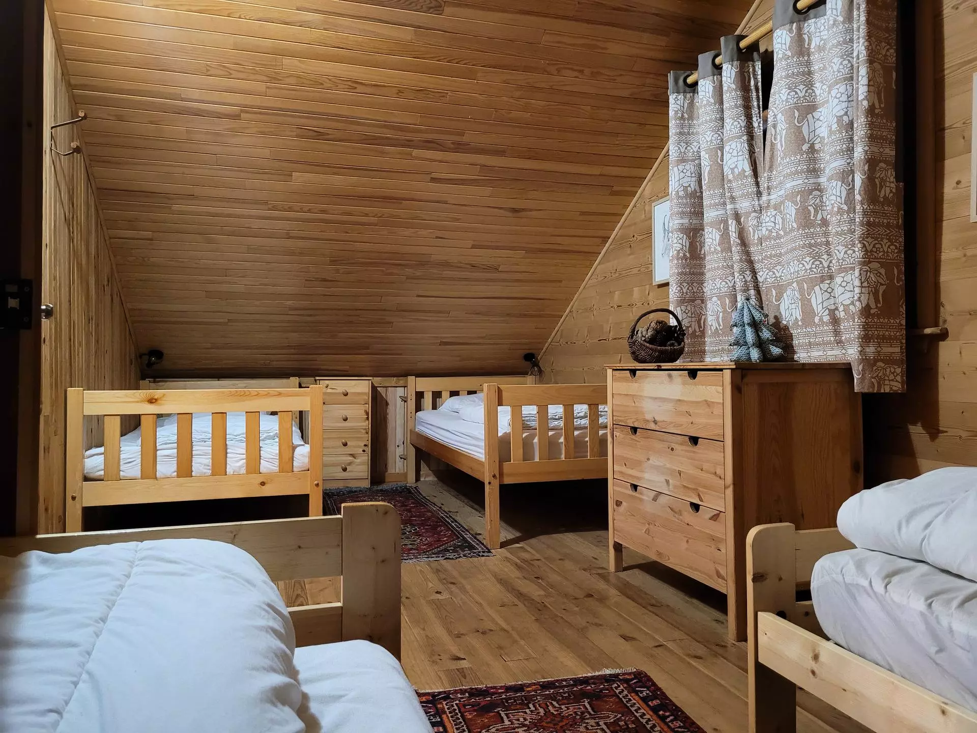 * Bedroom 4 (dormitory): 4 single beds, duvets, chest of drawers;