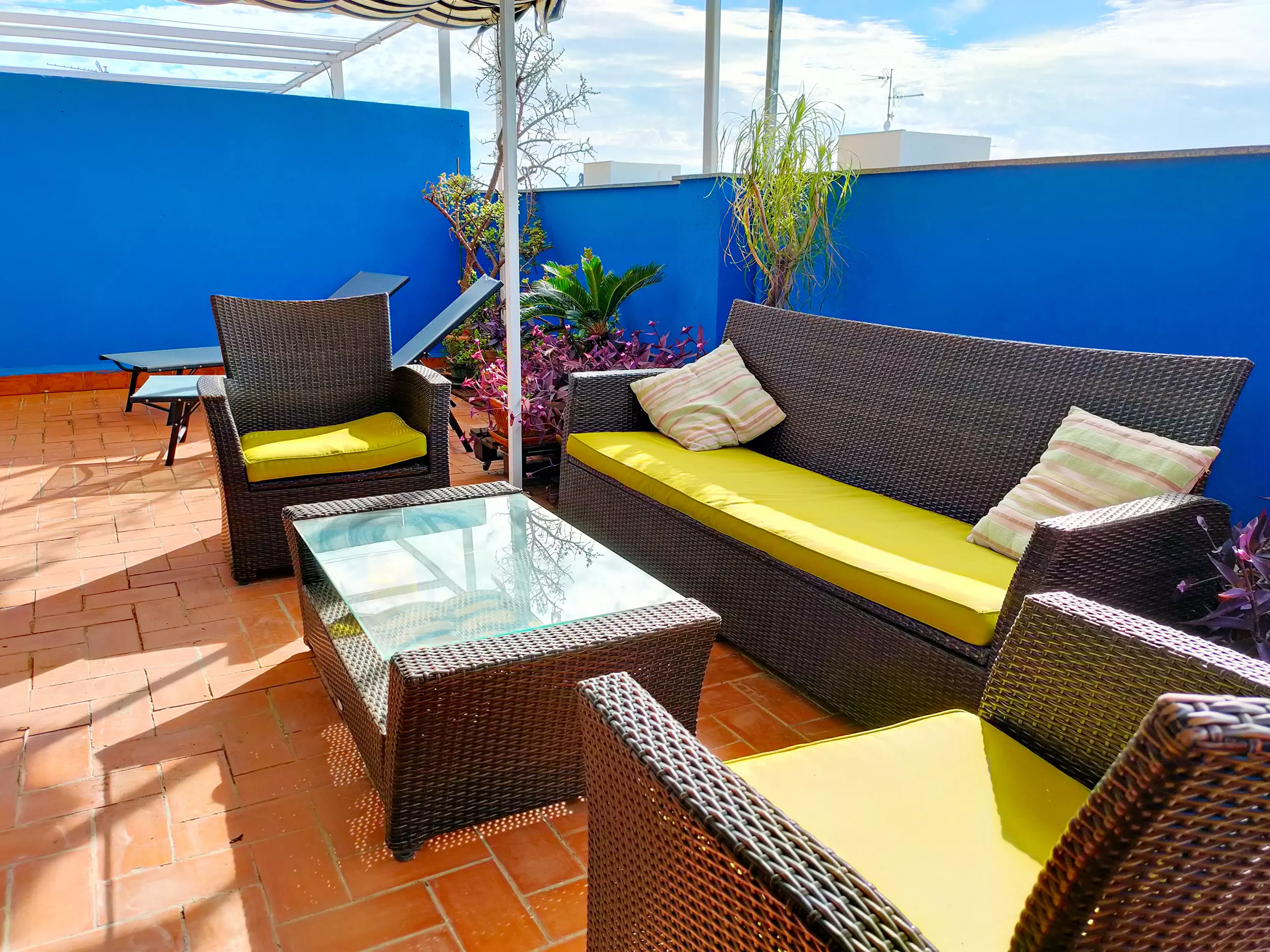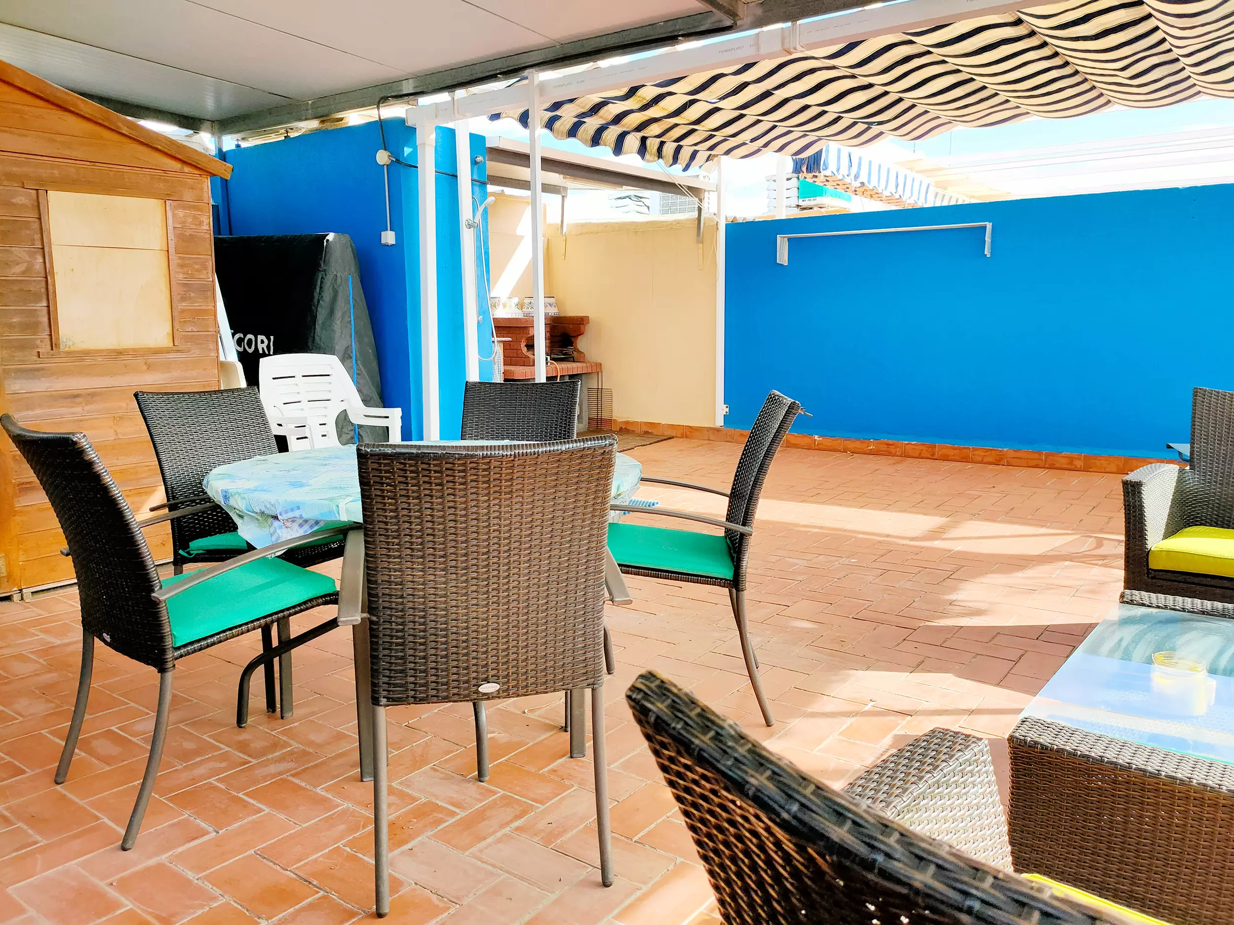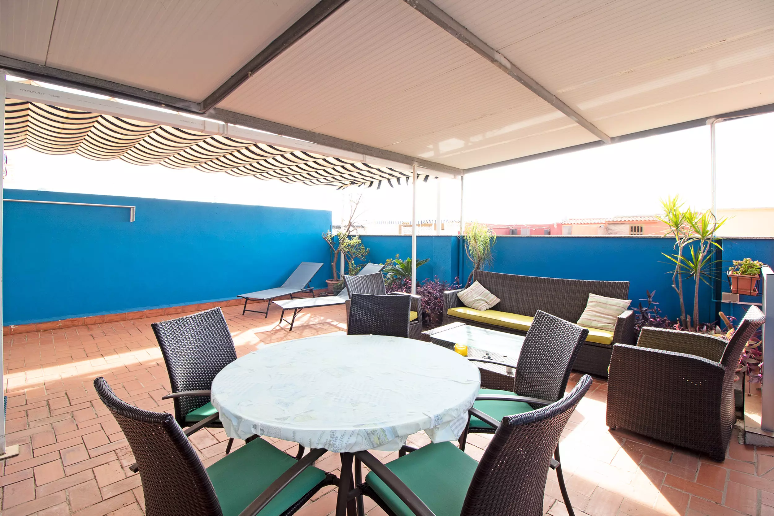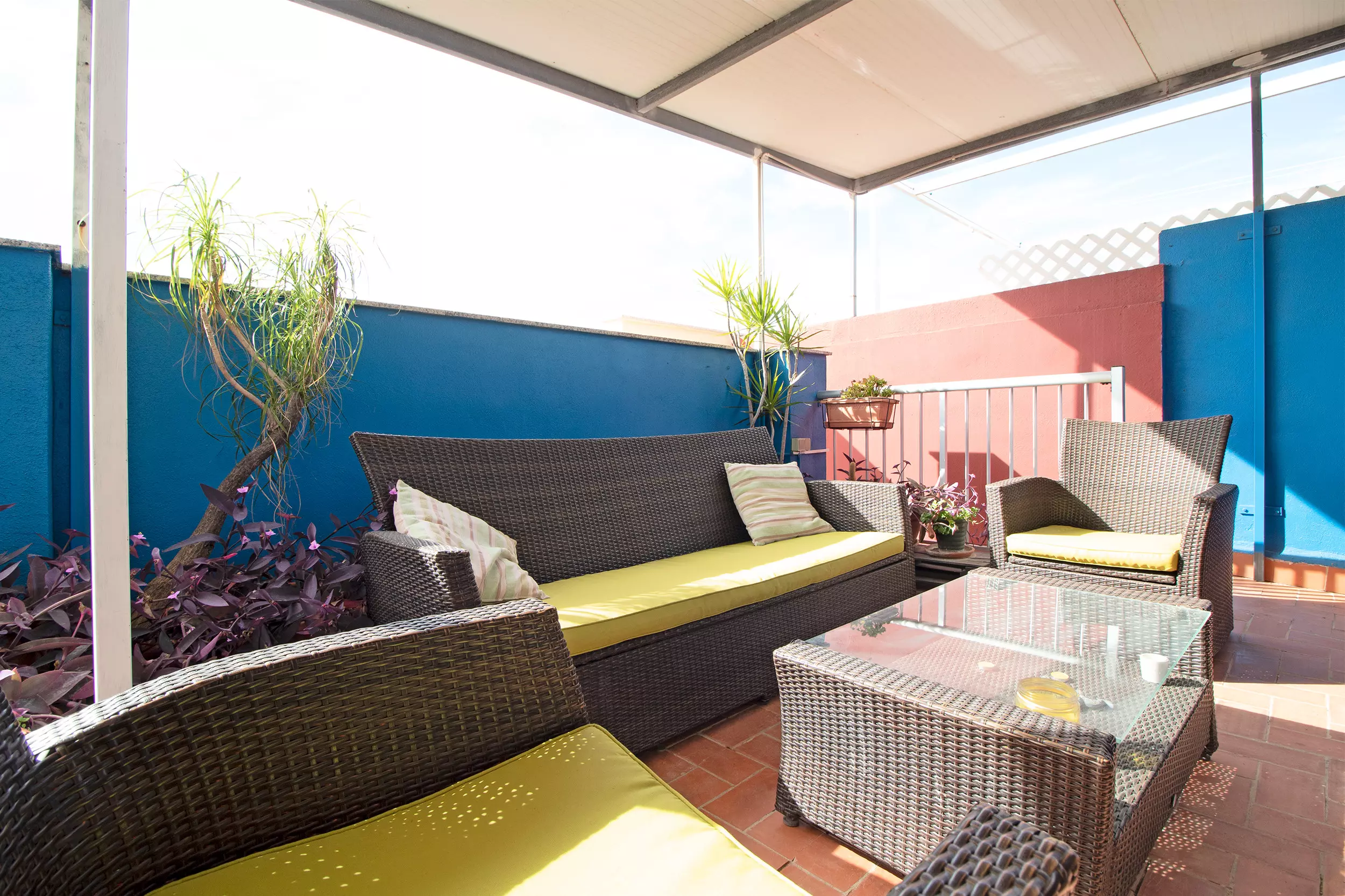 It has a lift, garden furniture, 55 m² terrace, washing machine, barbecue, iron, internet access (wifi), hairdryer, balcony, heat pump heating, air conditioning in the living room, 3 fans, 1 TV, radio.