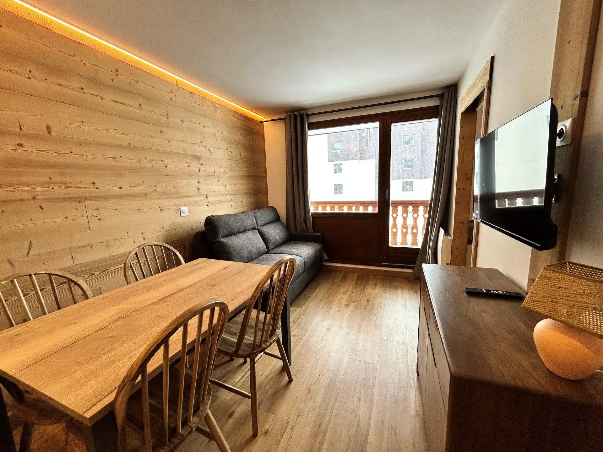 22m² studio cabin, equipped for 4 people and located on the 1st floor with elevator, in the "Hameau du Borsat I&II" residence, in Tignes Le Val Claret, at the foot of the slopes.